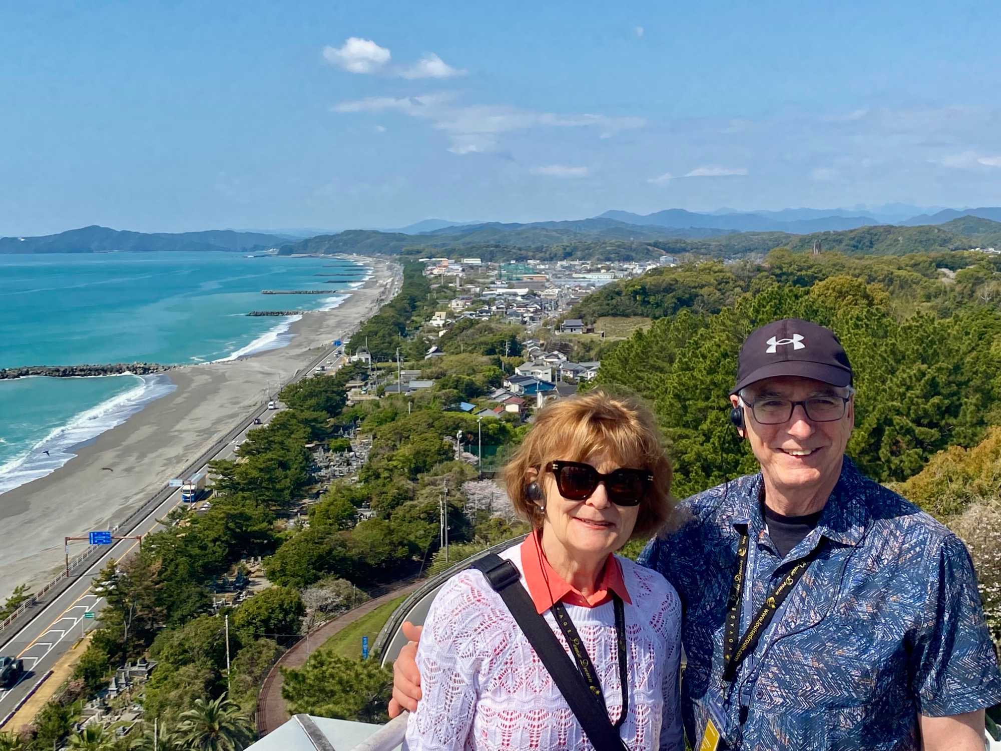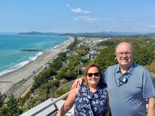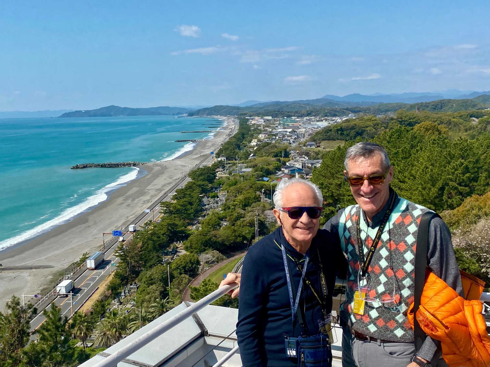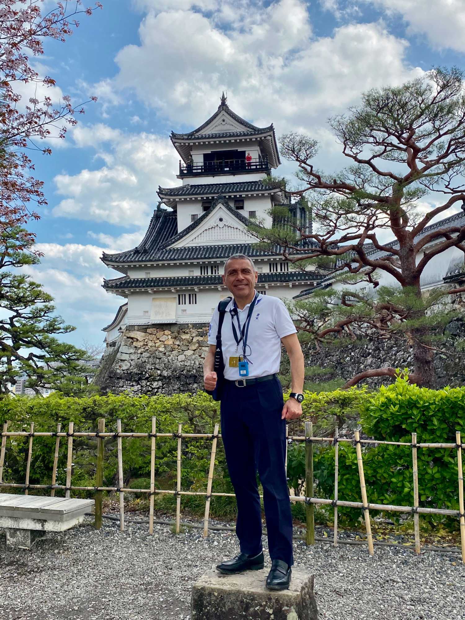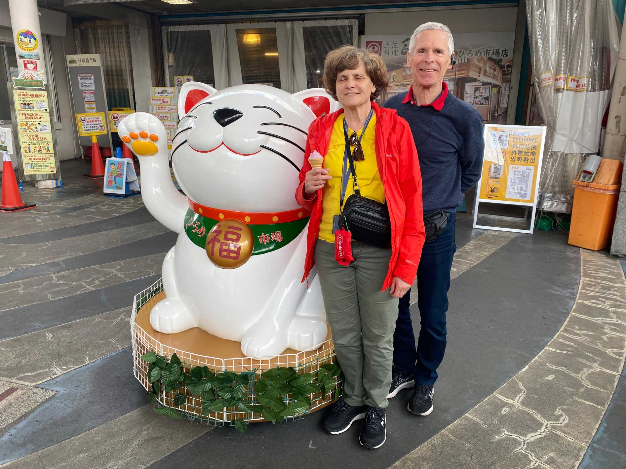 Dominant la ville, le magnifique Château de Kōchi se dévoile comme un trésor préservé de l’époque féodale, entouré d’un cadre naturel d’une grande beauté, avec tous ces cerisiers en fleurs. Cette citadelle est l’un des rares châteaux japonais à avoir conservé son donjon d’origine, offrant un aperçu authentique de l’époque féodale. Construit au début du XVIIe siècle, il se distingue par son architecture en bois élégante et ses remparts bien préservés. À l’intérieur, escaliers raides et salles traditionnelles avec maquettes explicatives nous plongent dans la vie des seigneurs d’autrefois. Depuis son sommet, la vue panoramique sur la ville de Kōchi complète cette immersion historique. Les photos en témoignent! Et que dire de Juliette, qui par sa grande forme physique nous impressionne tous! Elle devient rapidement source d’inspiration et de motivation!