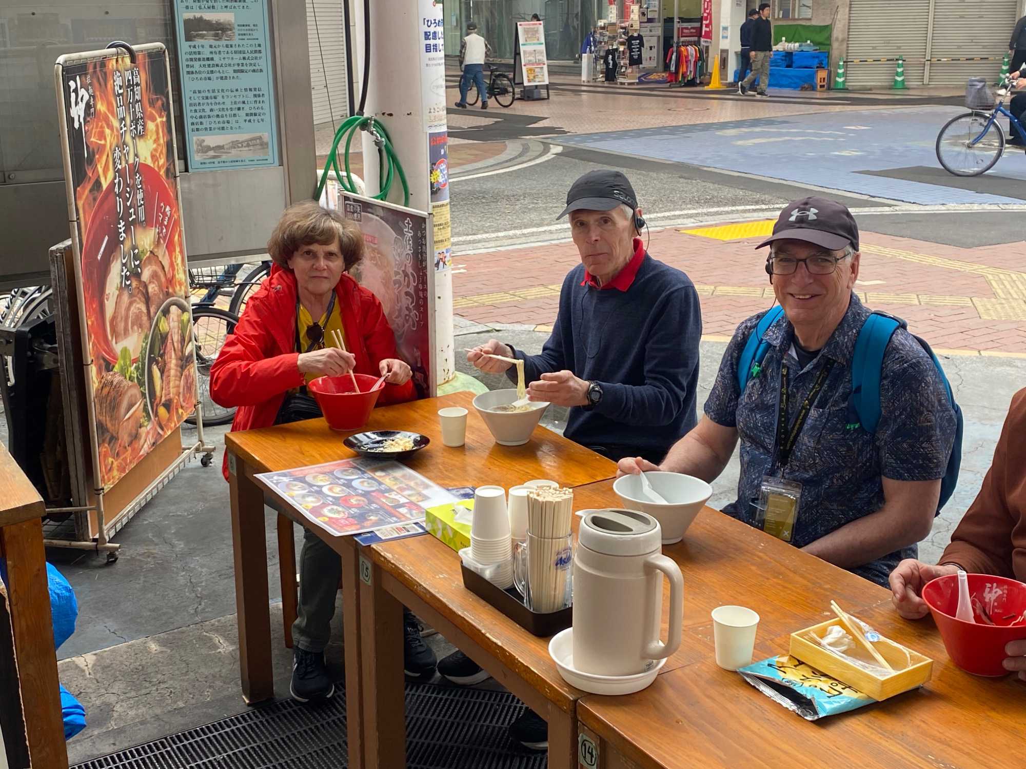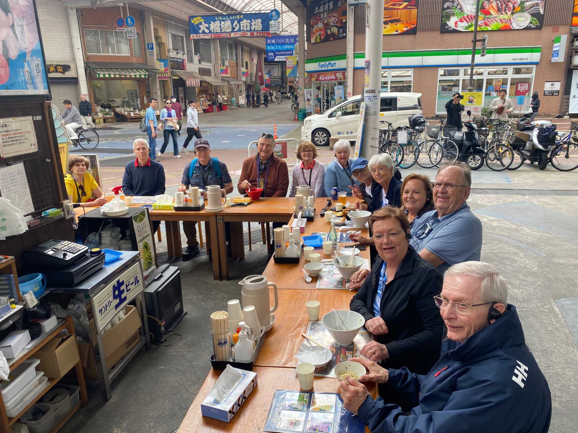 Nous poursuivons notre excursion au pied du château de Kochi, avec une ballade pédestre dans le marché Harome. Pour le dîner, nous remettons à chaque voyageur une somme en yens afin de leur permettre de partir à la découverte culinaire en toute liberté, au contact des petits restaurants locaux. Certains choisissent de savourer des sushis, tandis que d’autres se laissent tenter par un autre grand classique japonais : les ramen. Un vrai délice !