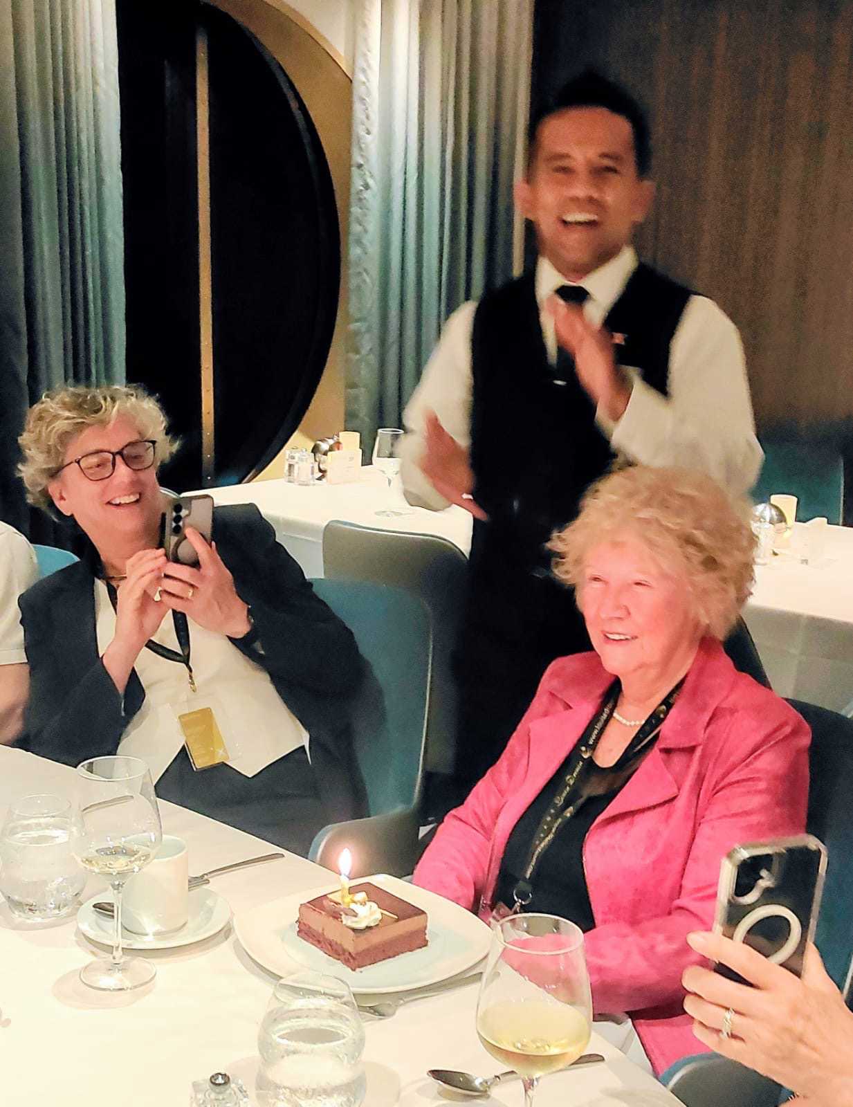 ***On ne peut passer sous silence l’anniversaire de Lisette, chants et souhaits à profusion pour qu’elle puisse continuer de resplendir son brin de jeunesse! Même qu’à la salle à manger; elle a droit à la surprise et aux honneurs!