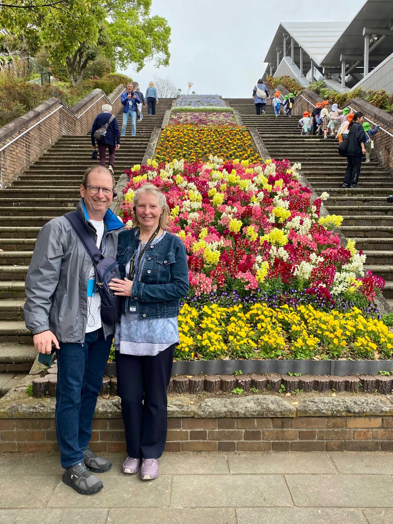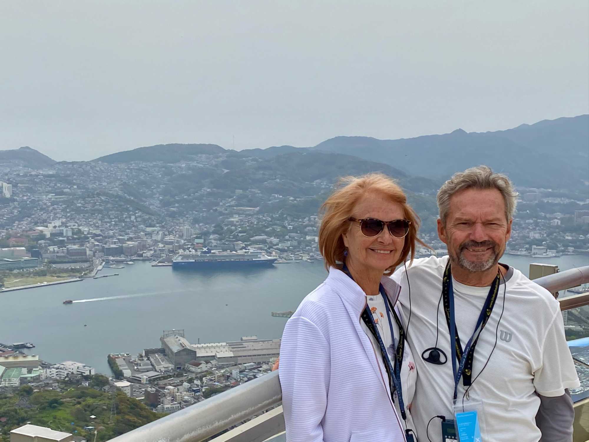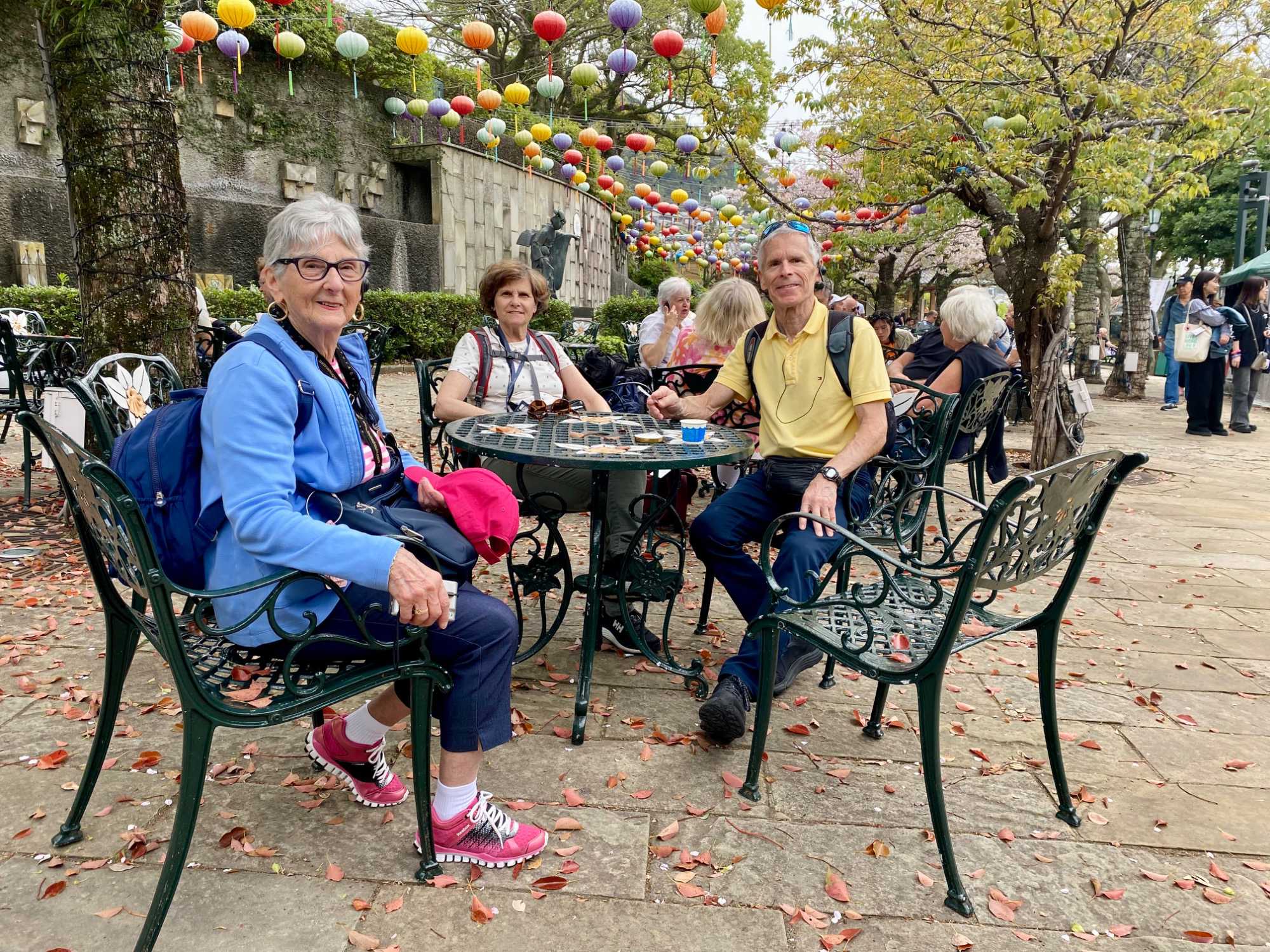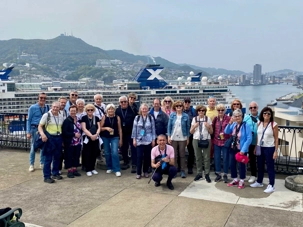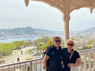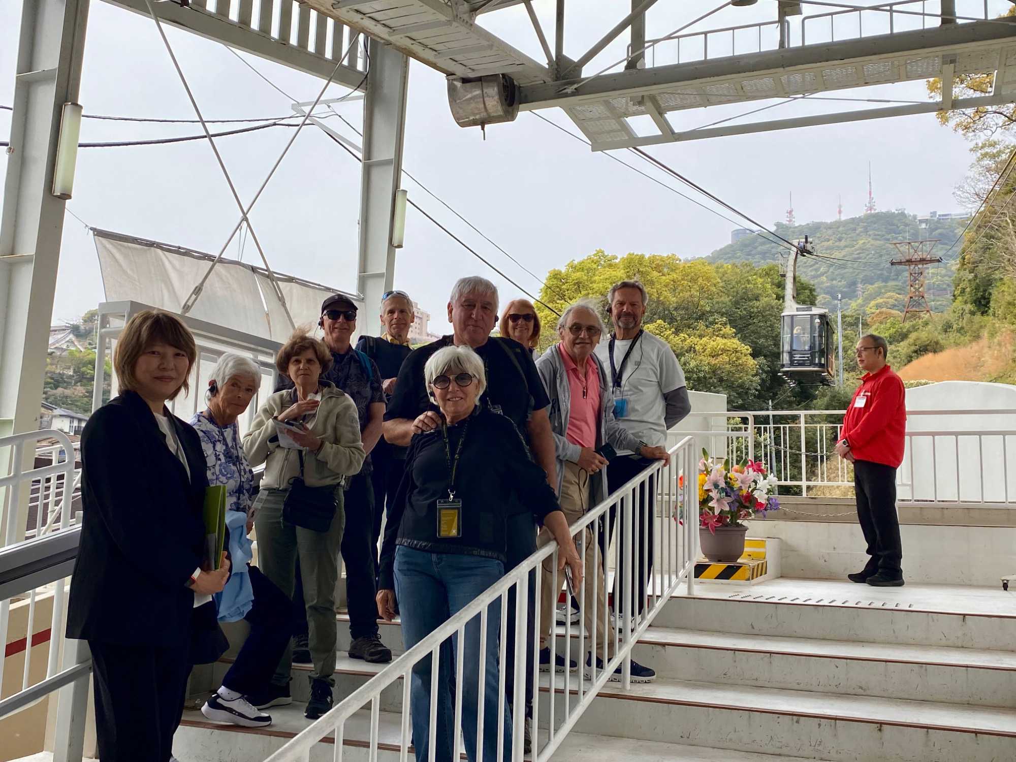 Par la suite, on se retrouve pour visiter le jardin Glover; un magnifique jardin perché sur les hauteurs de Nagasaki, offrant une vue panoramique sur le port. Comme un véritable musée à ciel ouvert; on y découvre d’élégantes maisons de style occidental-colonial, témoins de l’ouverture du Japon au commerce international au XIXe siècle. Les allées fleuries, les pelouses soignées et les plantes exotiques créent une atmosphère paisible et raffinée. Même que nous profitons de temps libre pour prendre un drink dans ce somptueux jardin, à relaxer, contempler et fraterniser.