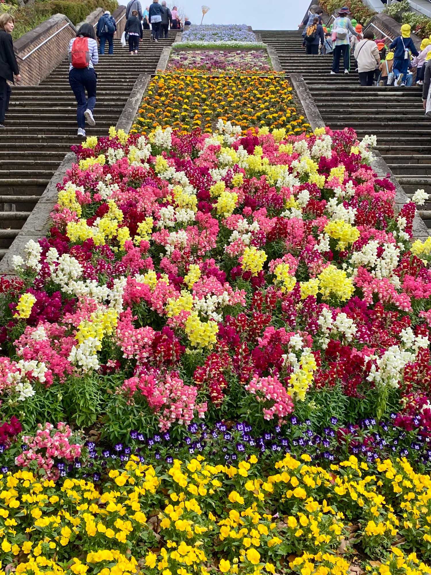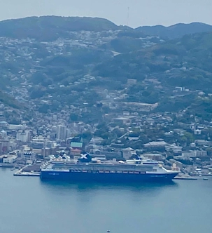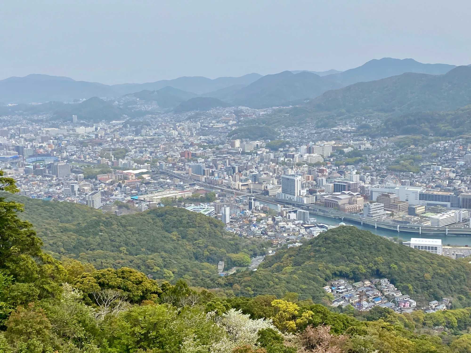 En fin de matinée, tout de même important de visualiser l’ensemble de tout ce qui s’est produit ici, et ainsi avoir une vue globale sur toute la ville et ses vallées, nous expérimentons l’ascension du Mont Inasa en téléphérique, qui arrivé au point culminant, nous offre une vue panoramique à 360 degré, mêlant mer, montagnes et urbanisme. Impressionnant!!