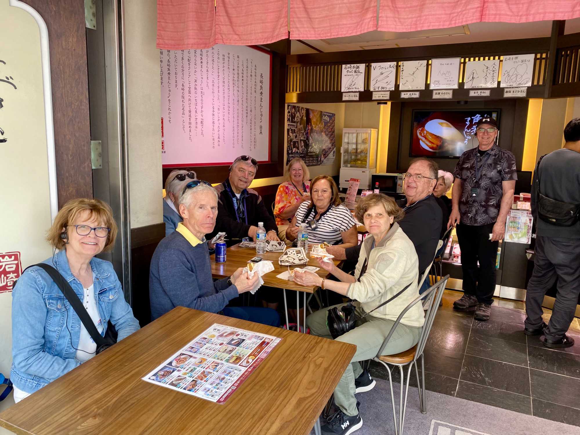 Puis , nous revenons dans le quartier du port, afin de partager le dîner, espace temps de découverte culinaire; à chacun de veiller à son choix personnel afin de goûter aux spécialités du coin. Un montant en yen est distribué à chaque voyageur; quelle belle façon pour qu’individuellement chacun puisse entrer en contact avec les locaux et expérimenter en fonction de leur désir.