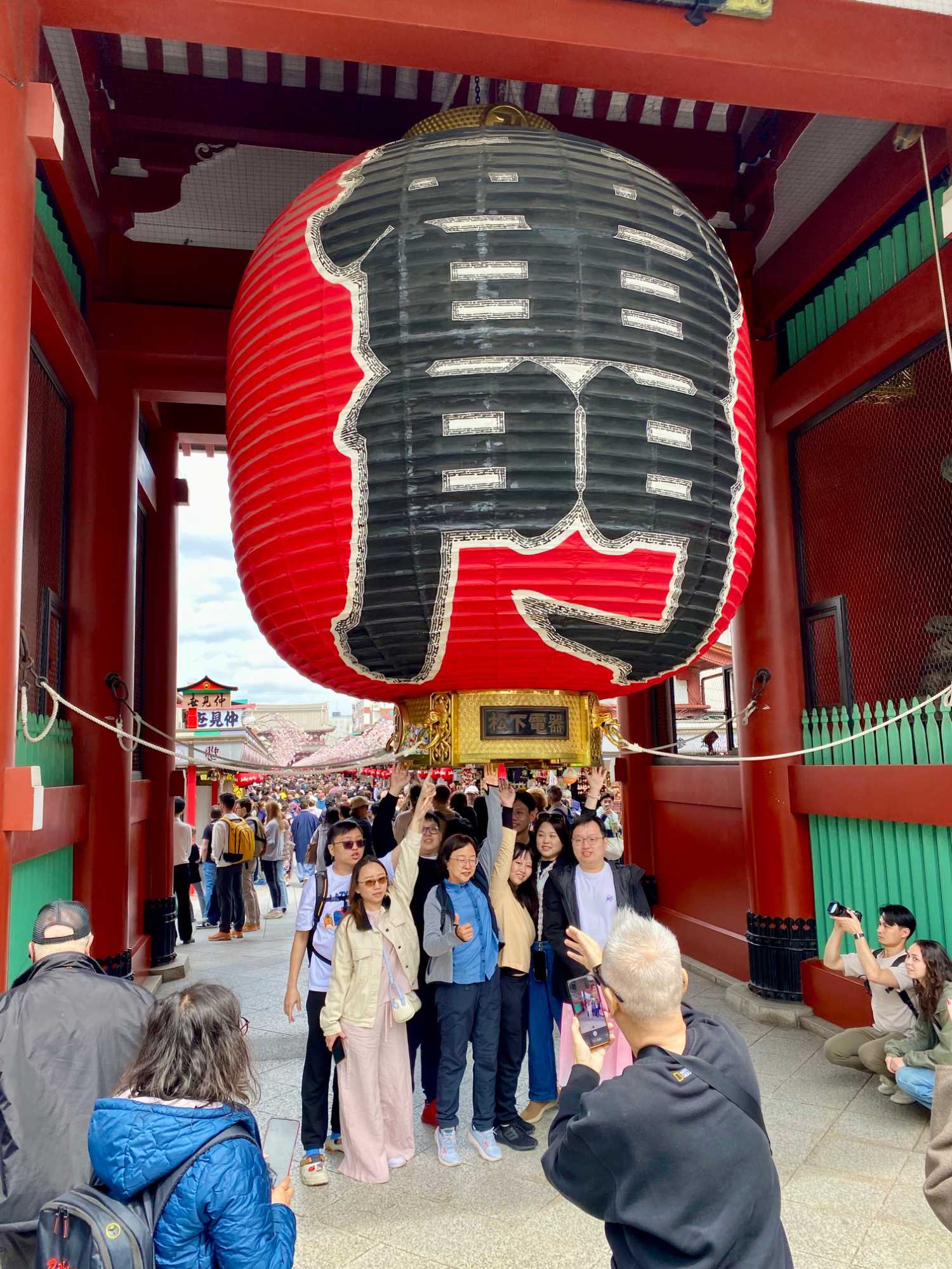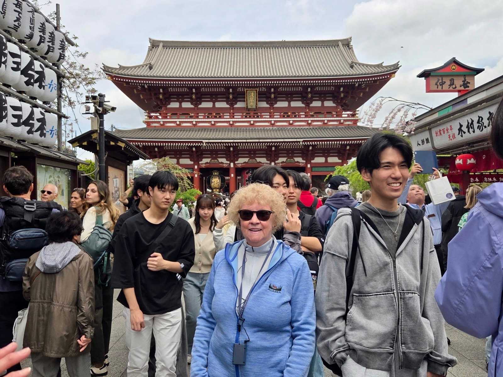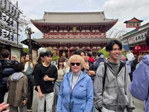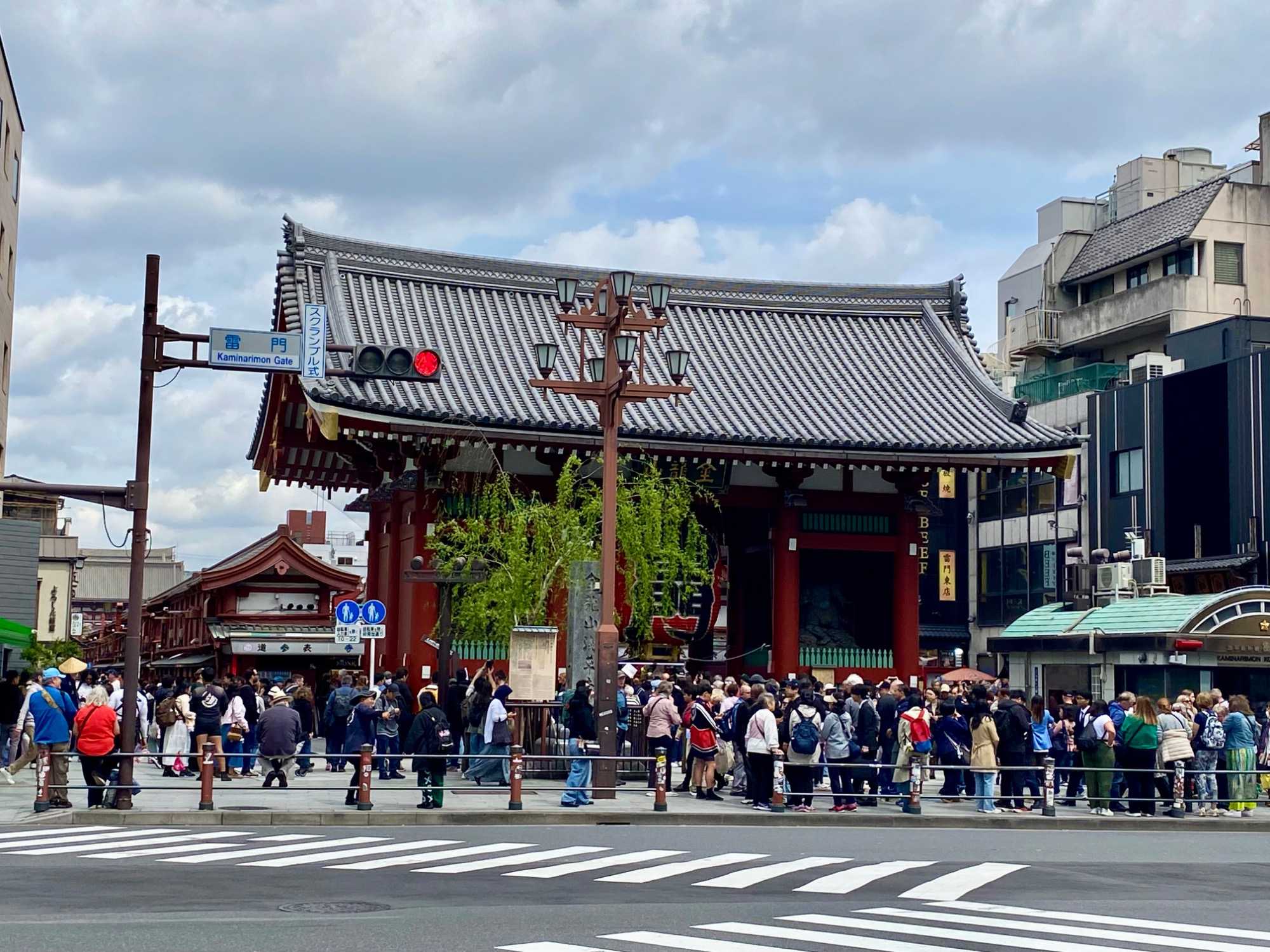 Nous commençons par la célèbre rue commerçante Nakamise Street, qui mène directement au temple. Bordée de dizaines de petites boutiques, cette rue animée est idéale pour goûter des spécialités japonaises comme les biscuits au riz (senbei) ou les pâtisseries sucrées. On y trouve aussi de nombreux souvenirs typiques, comme des éventails, des kimonos légers ou des porte-bonheur. L’ambiance y est vivante et colorée, avec une foule de visiteurs et une décoration traditionnelle qui plonge immédiatement dans la culture japonaise.