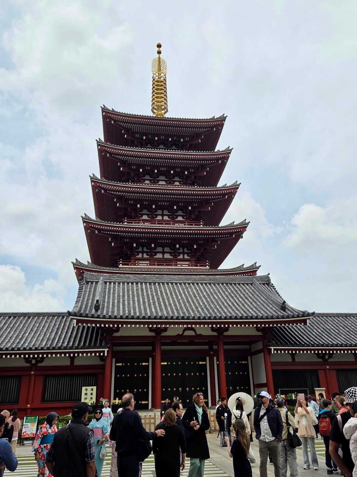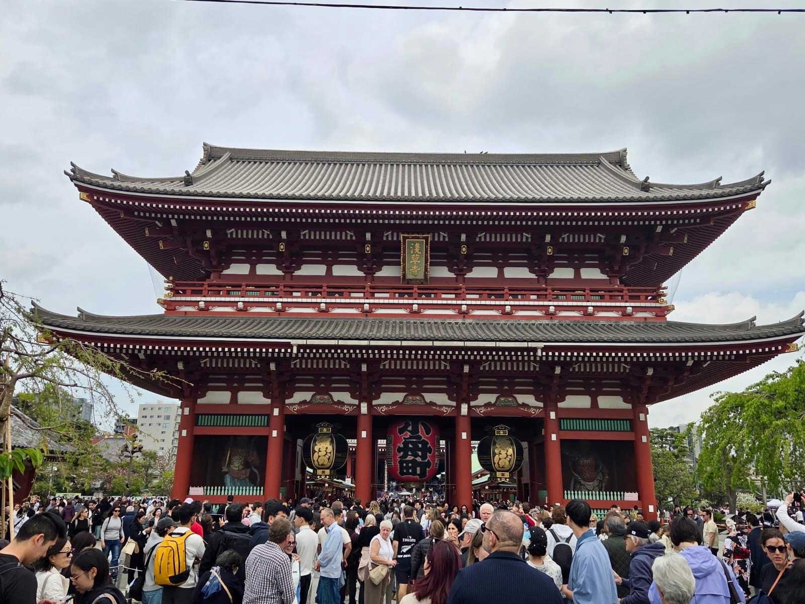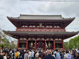 Au bout de cette rue se dresse le majestueux Senso-ji, le plus ancien temple de Tokyo, construit en 628. L’entrée est marquée par la célèbre porte Kaminarimon, avec son immense lanterne rouge impressionnante. En avançant vers le bâtiment principal, on peut observer les fidèles qui viennent prier, tirer des omikuji (prédictions) ou purifier leurs mains à la fontaine sacrée. Le temple, avec son architecture traditionnelle et ses couleurs vives, dégage une atmosphère à la fois paisible et spirituelle.