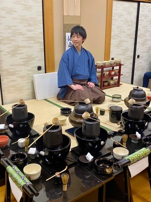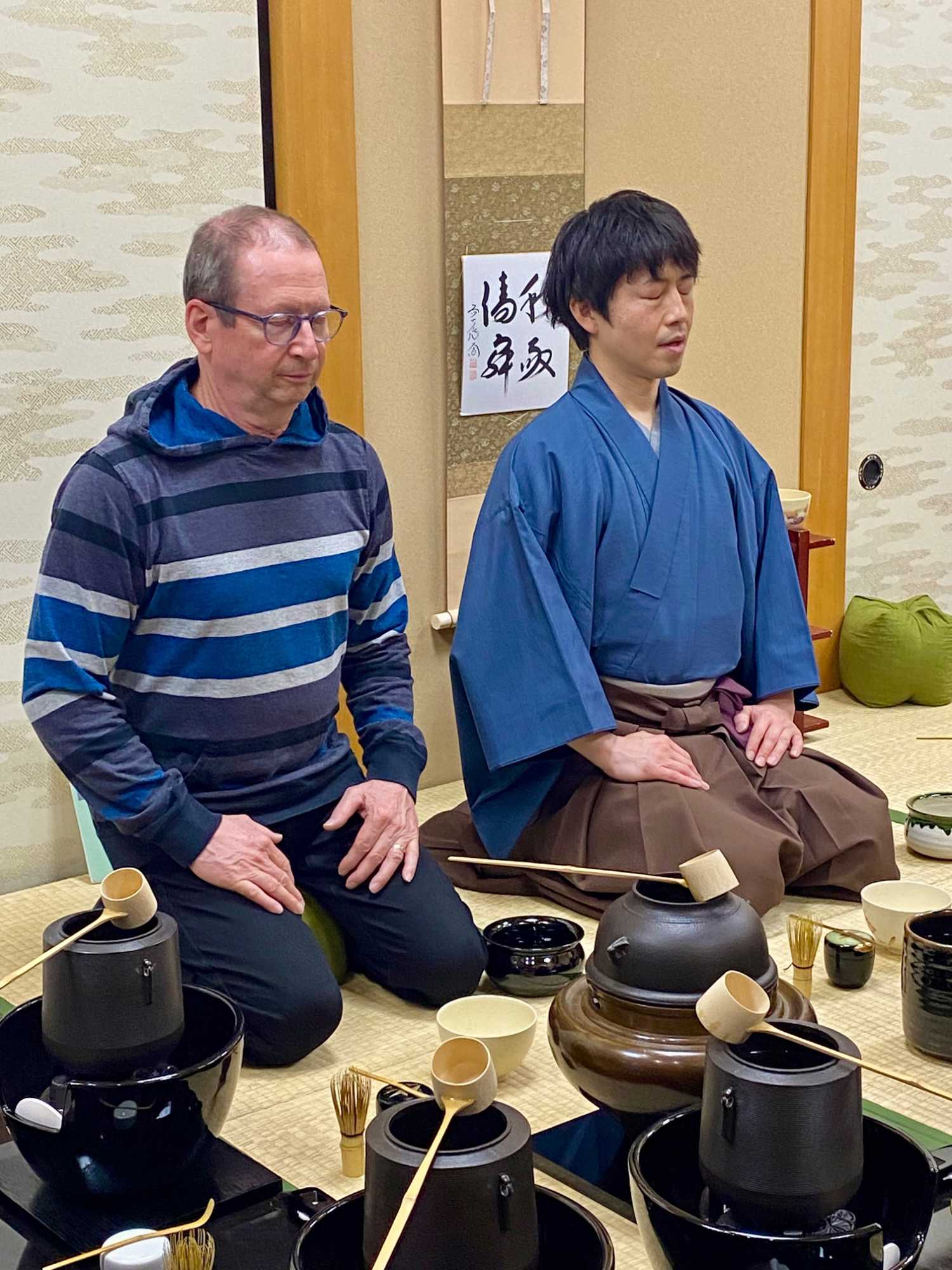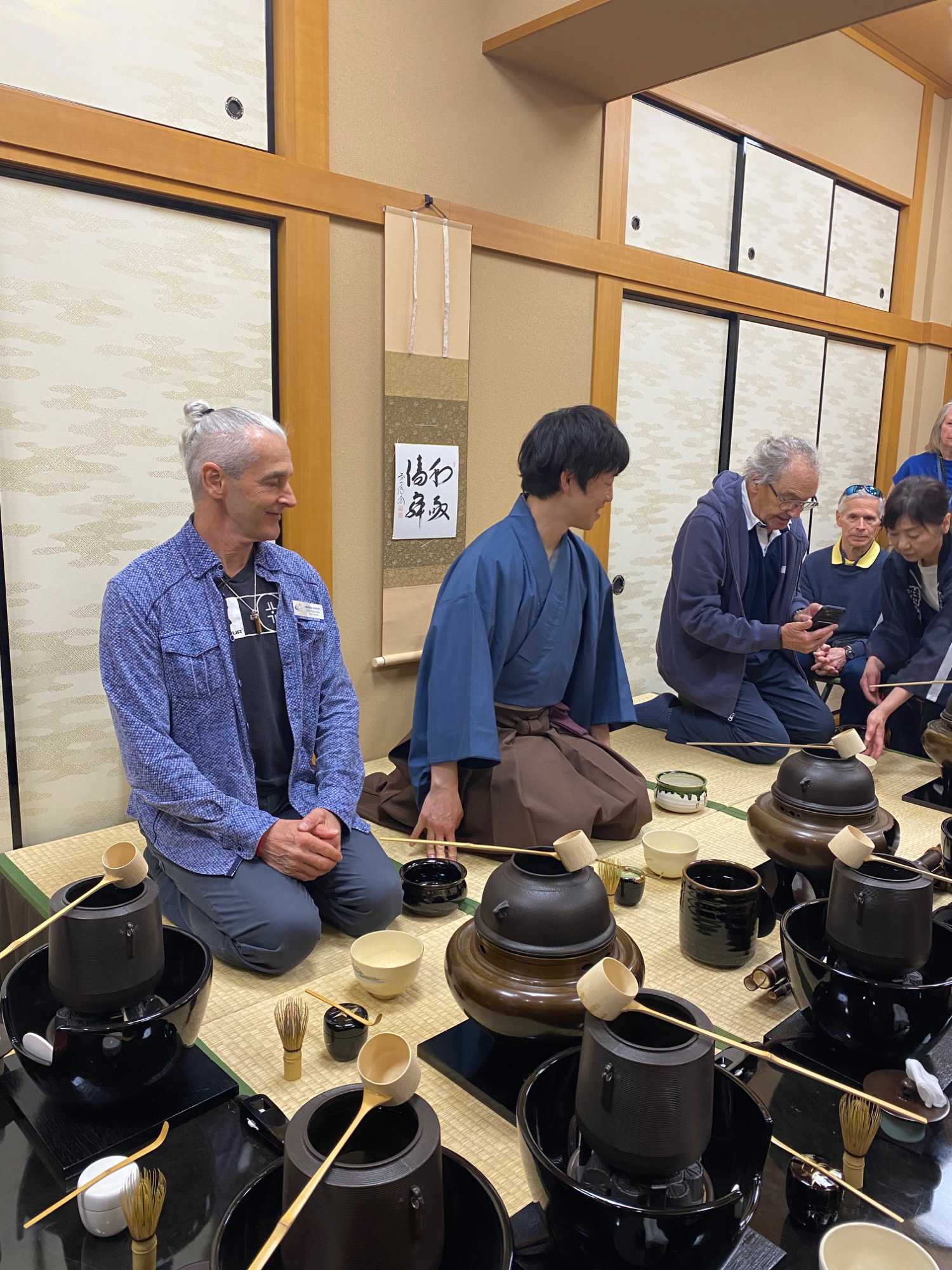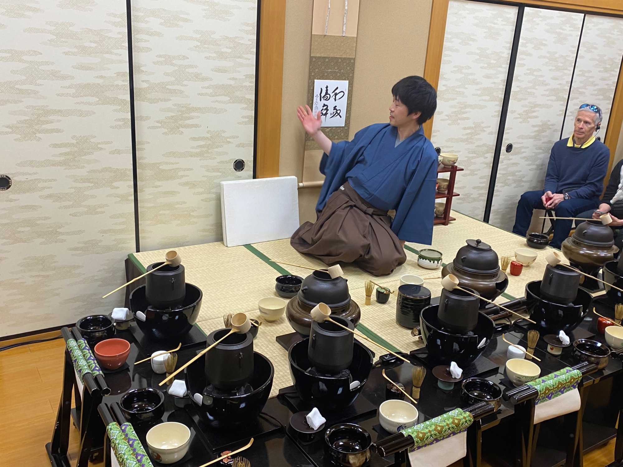 La première étape consiste en une présentation des règles de base. L’hôte explique brièvement l’esprit de la cérémonie du thé, inspiré de l’harmonie, du respect, de la pureté et de la sérénité. Nous apprennons comment se tenir, comment saluer et comment manipuler les objets avec délicatesse.