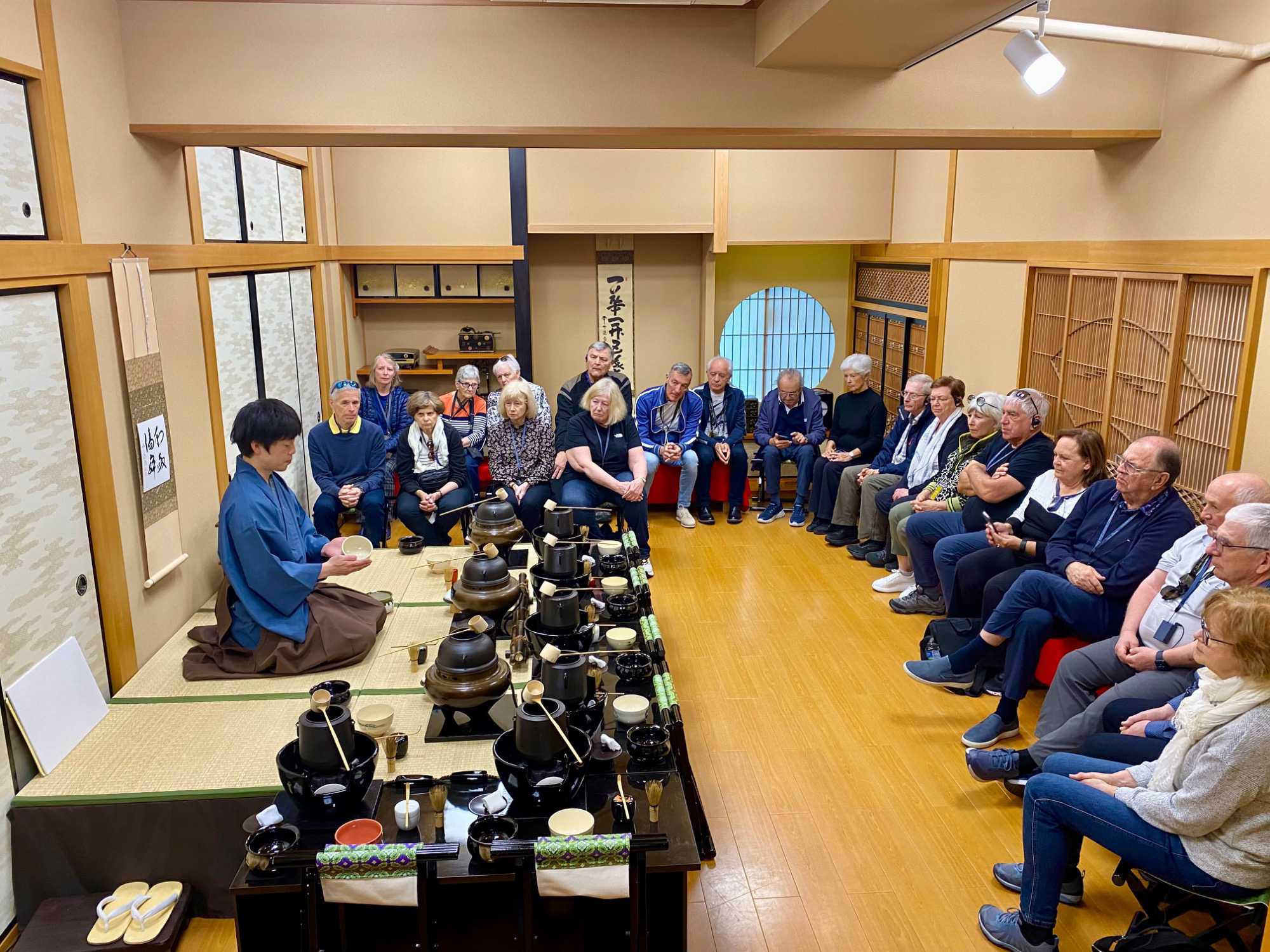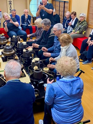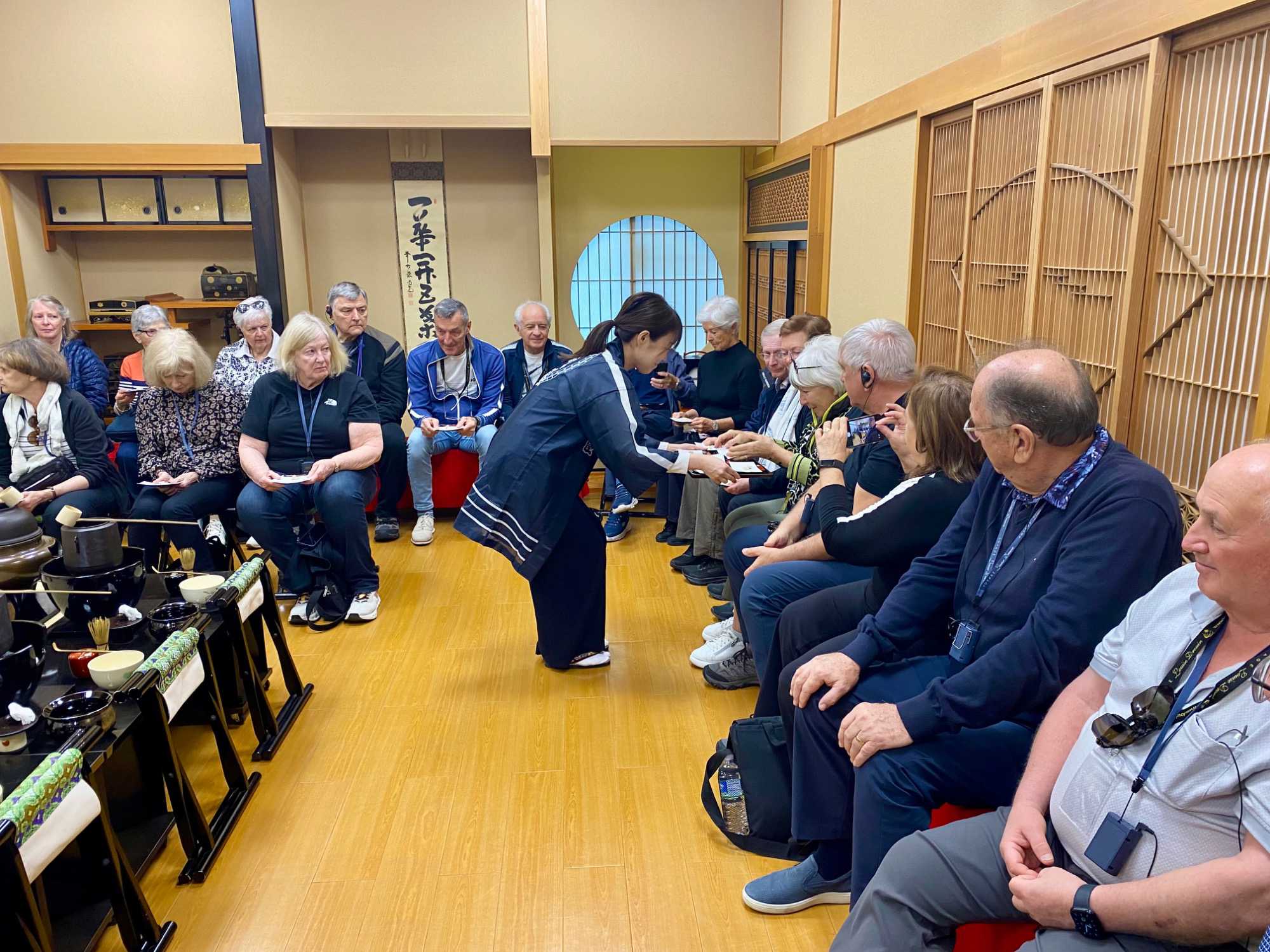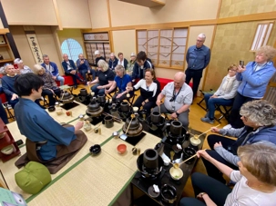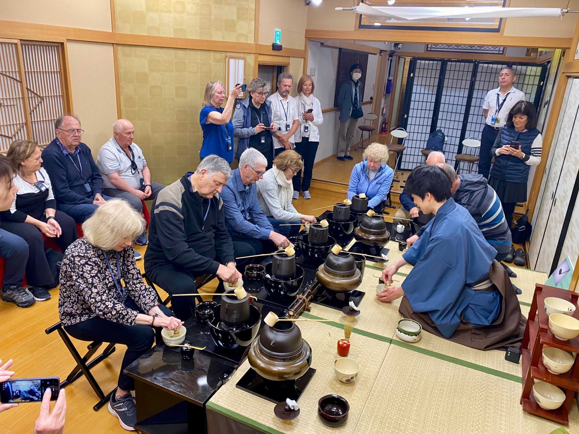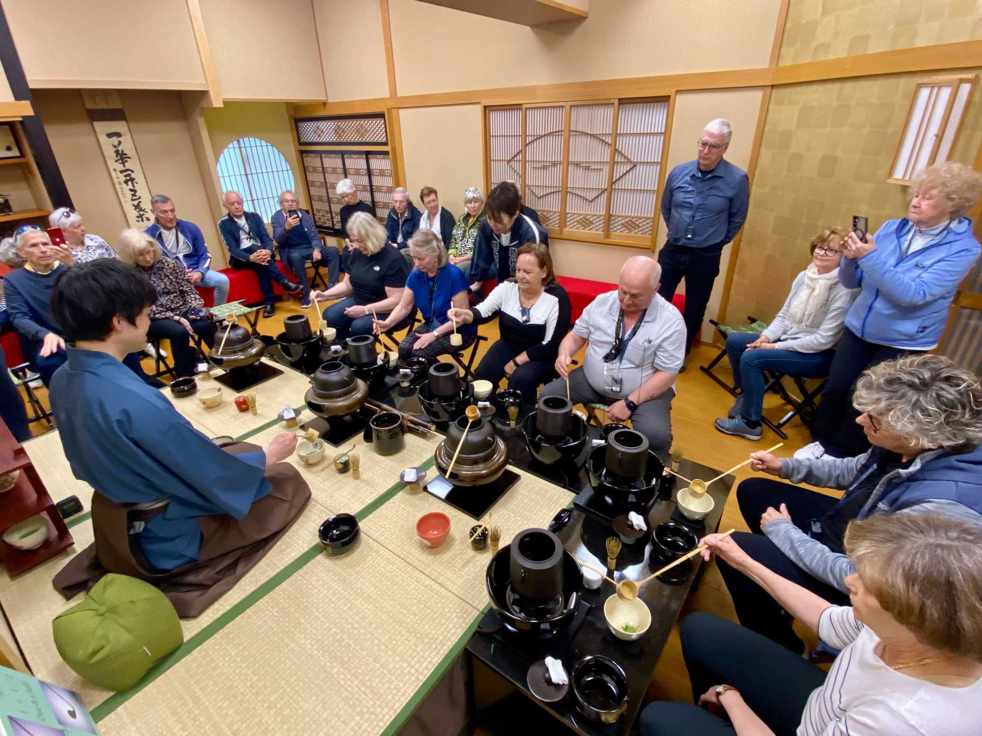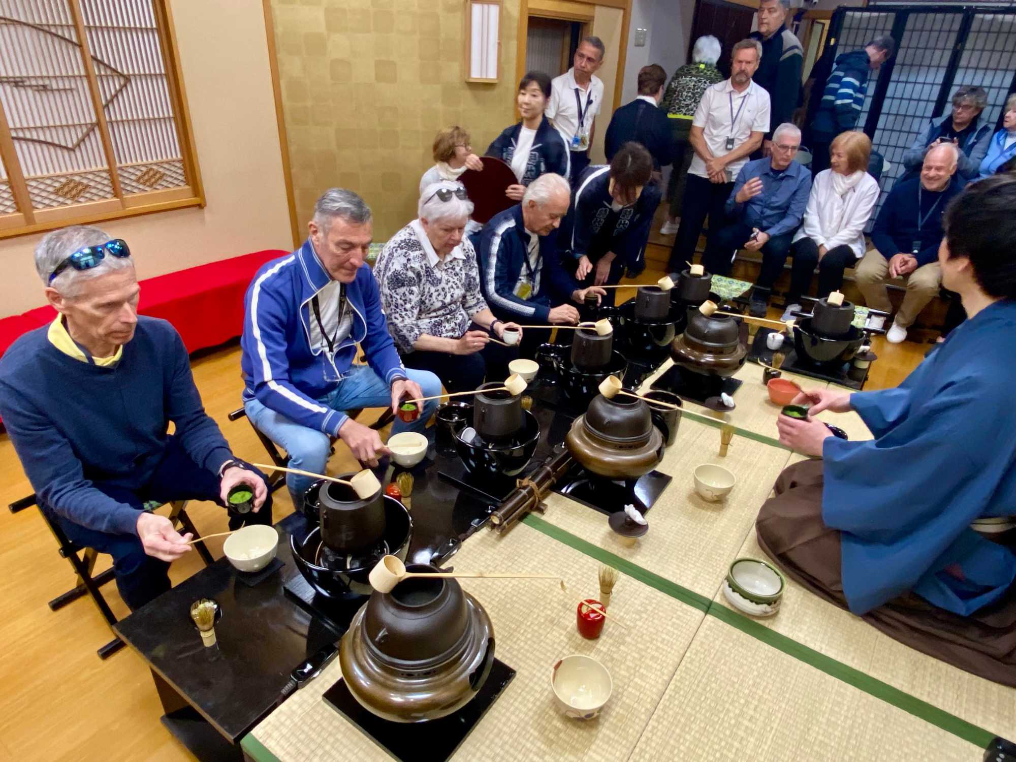Nous ne pouvons quitter ce pays sans avoir participé à une traditionnelle séance de thé. Nous nous rendons dans un immeuble qui abrite une salle pour y vivre toute les différentes étapes. C’est une expérience immersive qui permet de découvrir l’élégance et la précision de la cérémonie japonaise du thé.