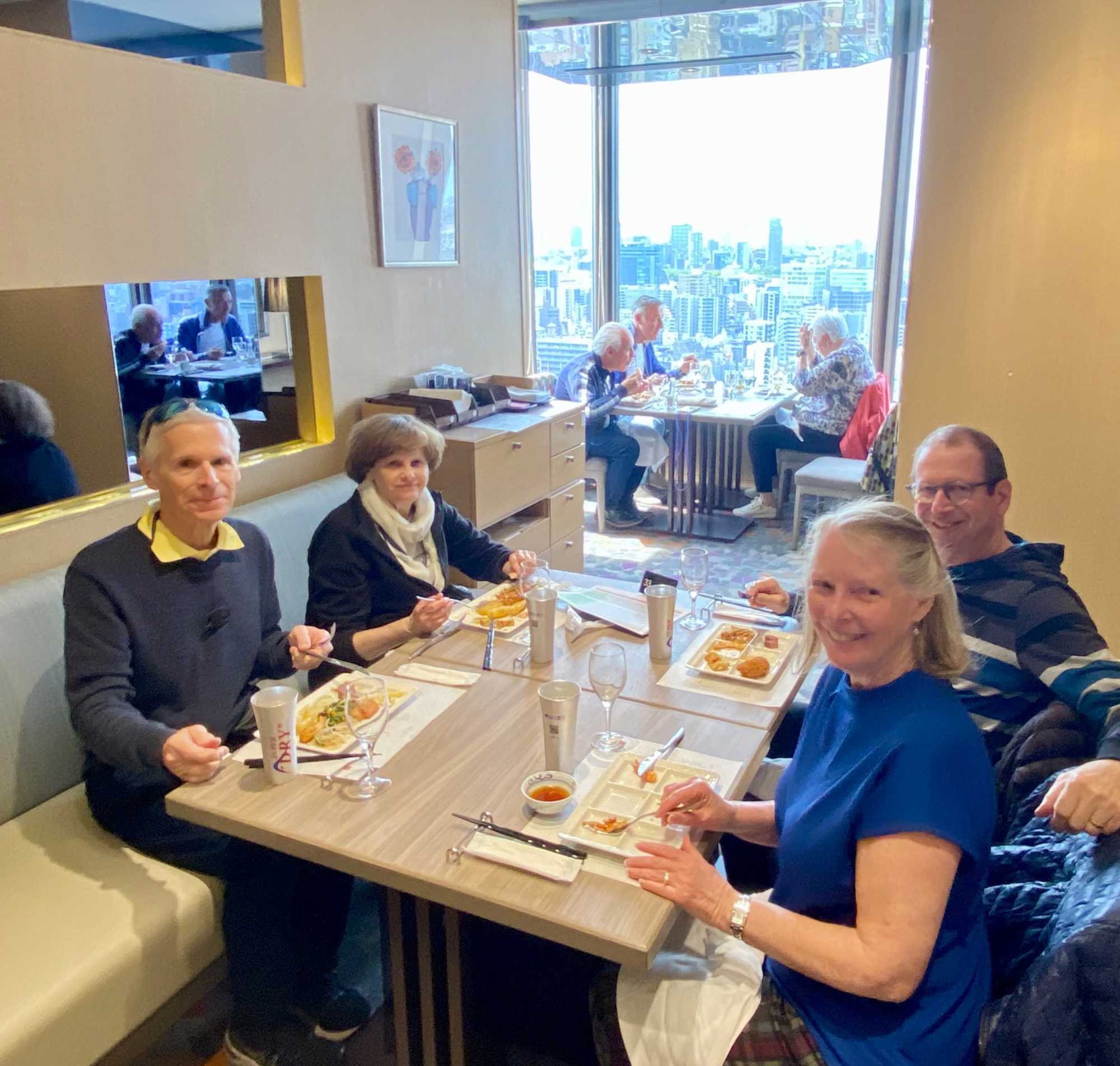 Pour le dîner, nous avons droit à un plongeons dans l'un des buffets les plus garnis de toute notre voyage, dans un hotel luxueux, situé au 26ième étage offrant une vue panoramique sur toute l'immensité de la ville de Tokyo. Un WOW gastronomique entre la dégustation de toutes les spécialités japonaises et occidentales. Tout un régal! Le festival des papilles en extase!
