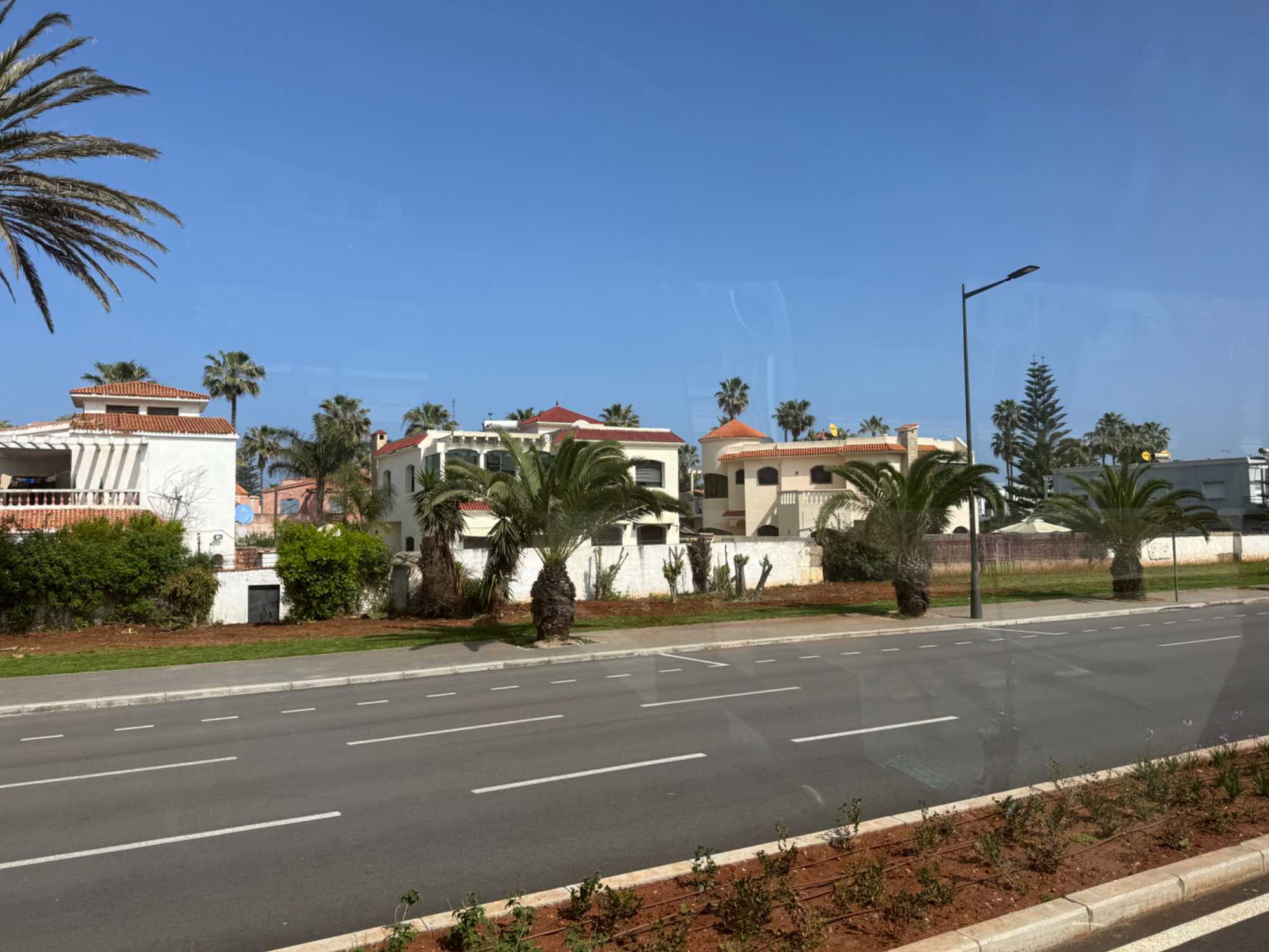 Malgré un léger décalage horaire — environ cinq heures — la fatigue se faisait sentir, mais cela ne nous a pas empêchés de garder les yeux bien ouverts pour admirer les paysages en quittant Casablanca, que nous retrouverons en fin de voyage.