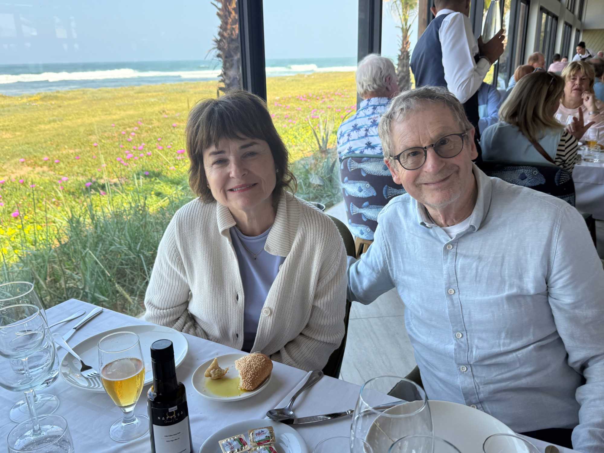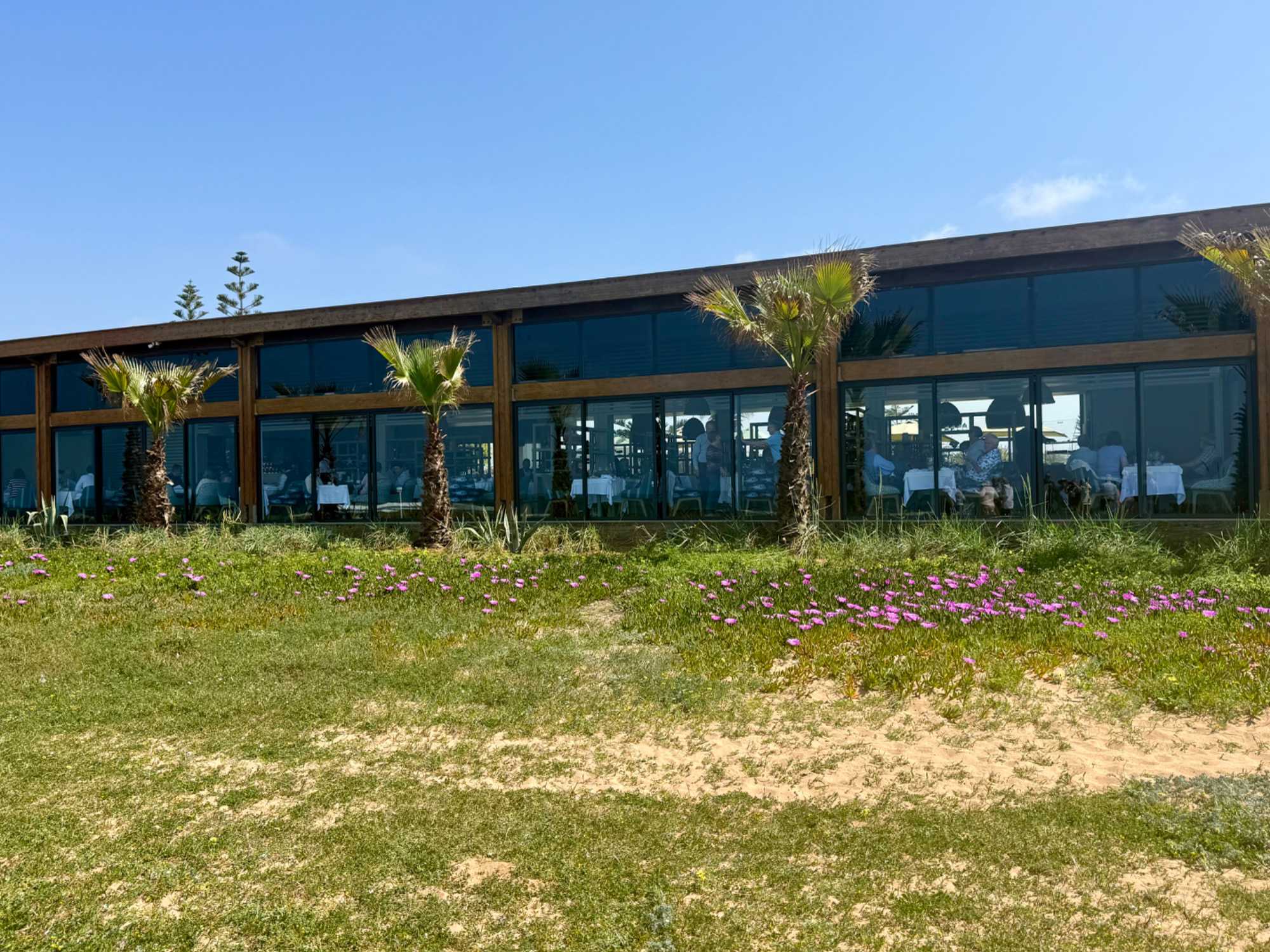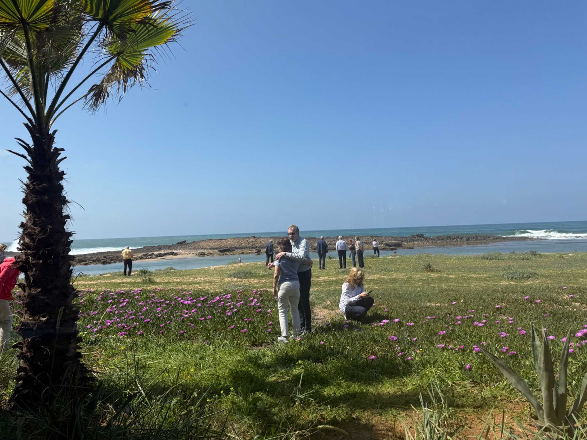 Patrick nous avait réservé un superbe restaurant en bord de mer, Les Trois Palmiers, situé juste avant l’arrivée à Rabat. Installés face à l’océan, nous avons savouré chaque instant…