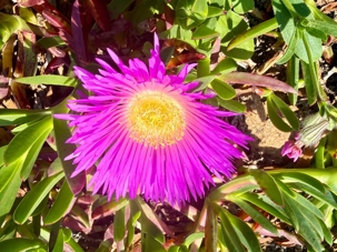 De magnifiques fleurs roses recouvraient le paysage — ces plantes grasses que l’on retrouve souvent sur les dunes et que plusieurs appellent affectueusement « griffes de belle-mère ». En admirant ces magnifiques fleurs roses qui bordaient le littoral, cela m’a rappelé de précieux souvenirs de mes années comme guide en Californie. On y retrouve ces mêmes plantes, que plusieurs connaissent sous le nom de « griffes de belle-mère », une plante grasse étonnante.