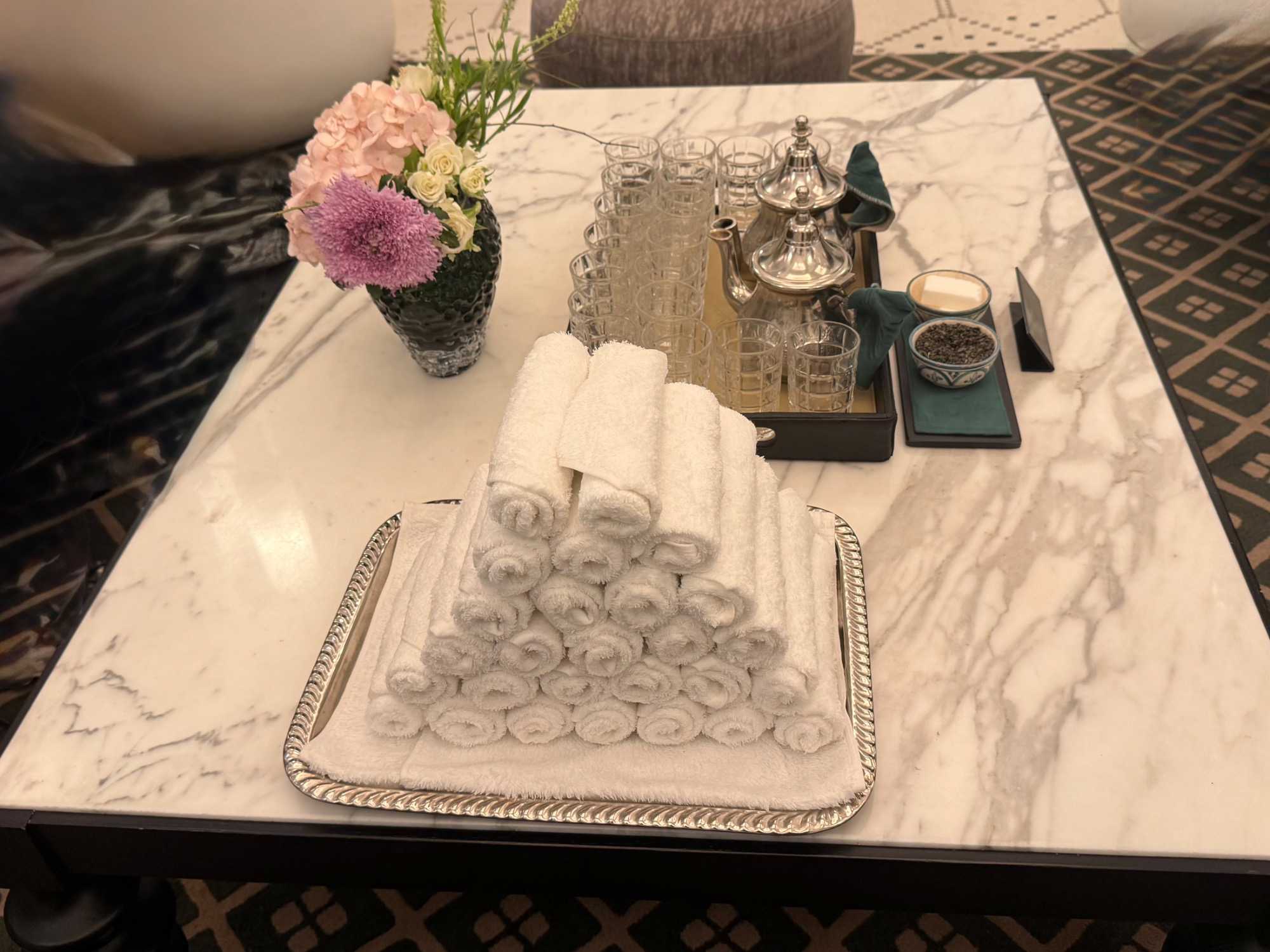 Le tout accompagné d’un thé marocain servi dans la plus pure tradition — une première immersion dans cet art de vivre — suivi, pour certains, d’un bon café.