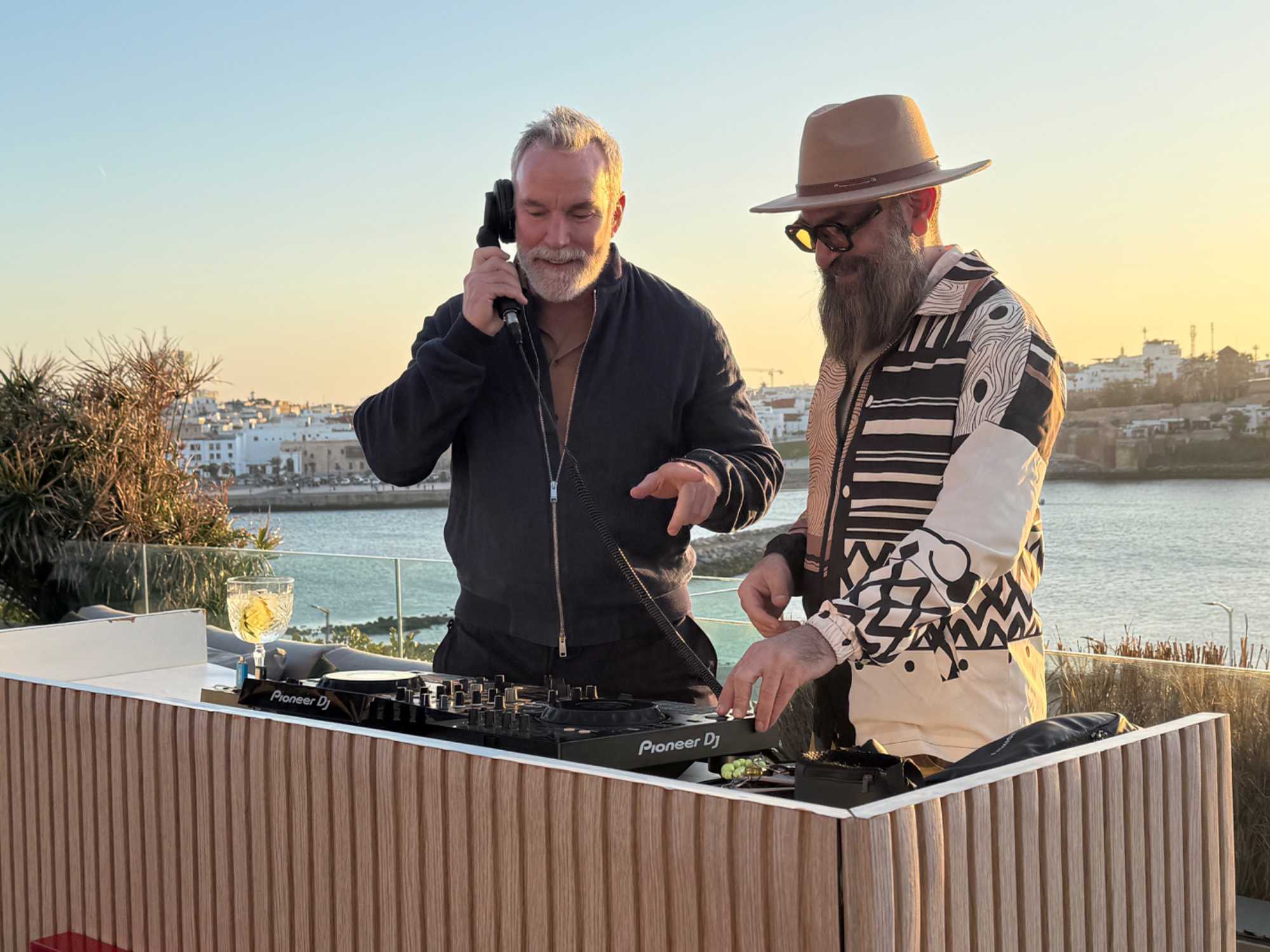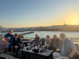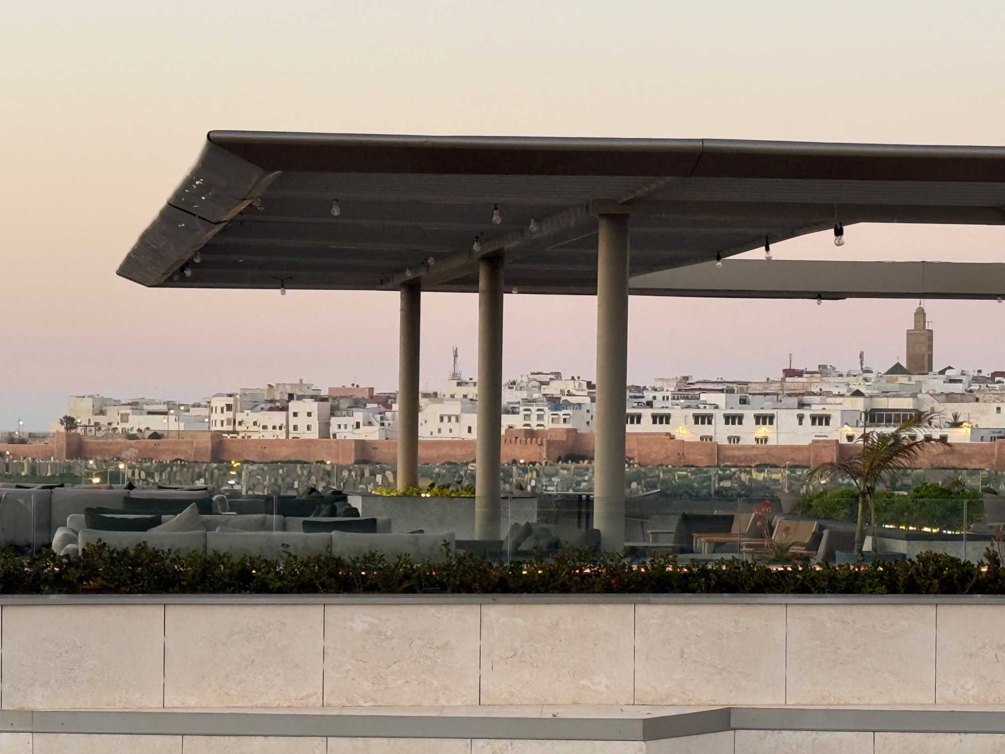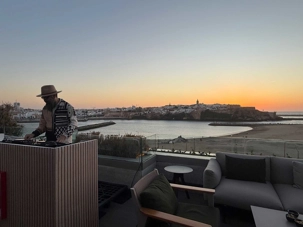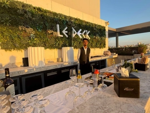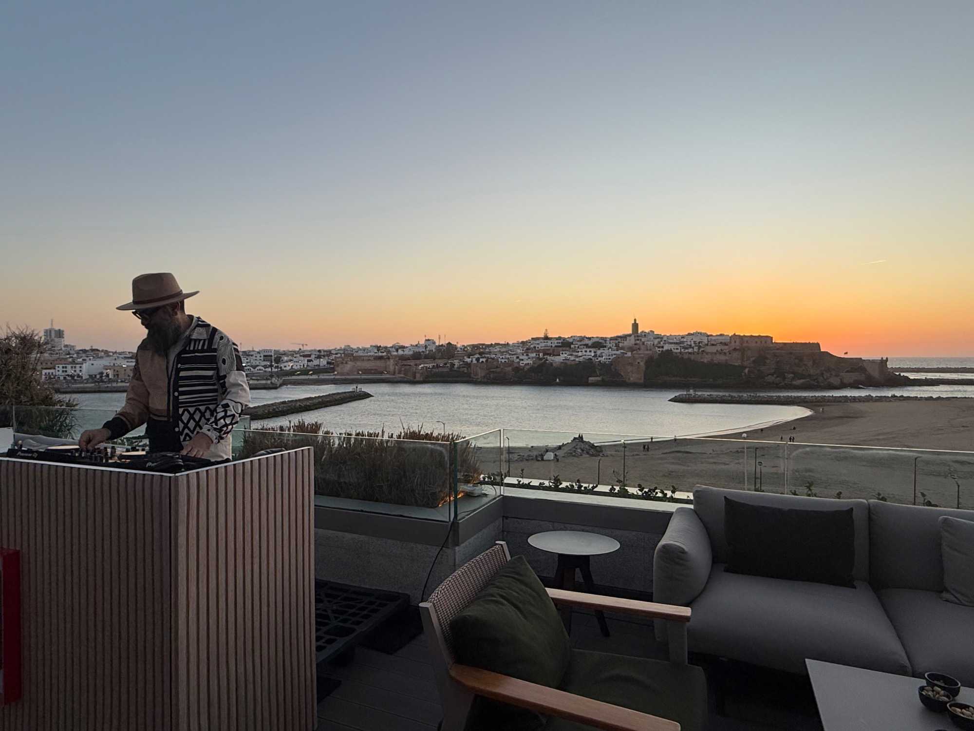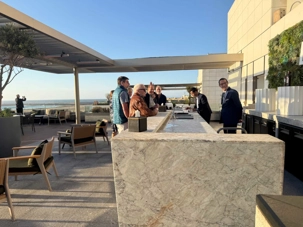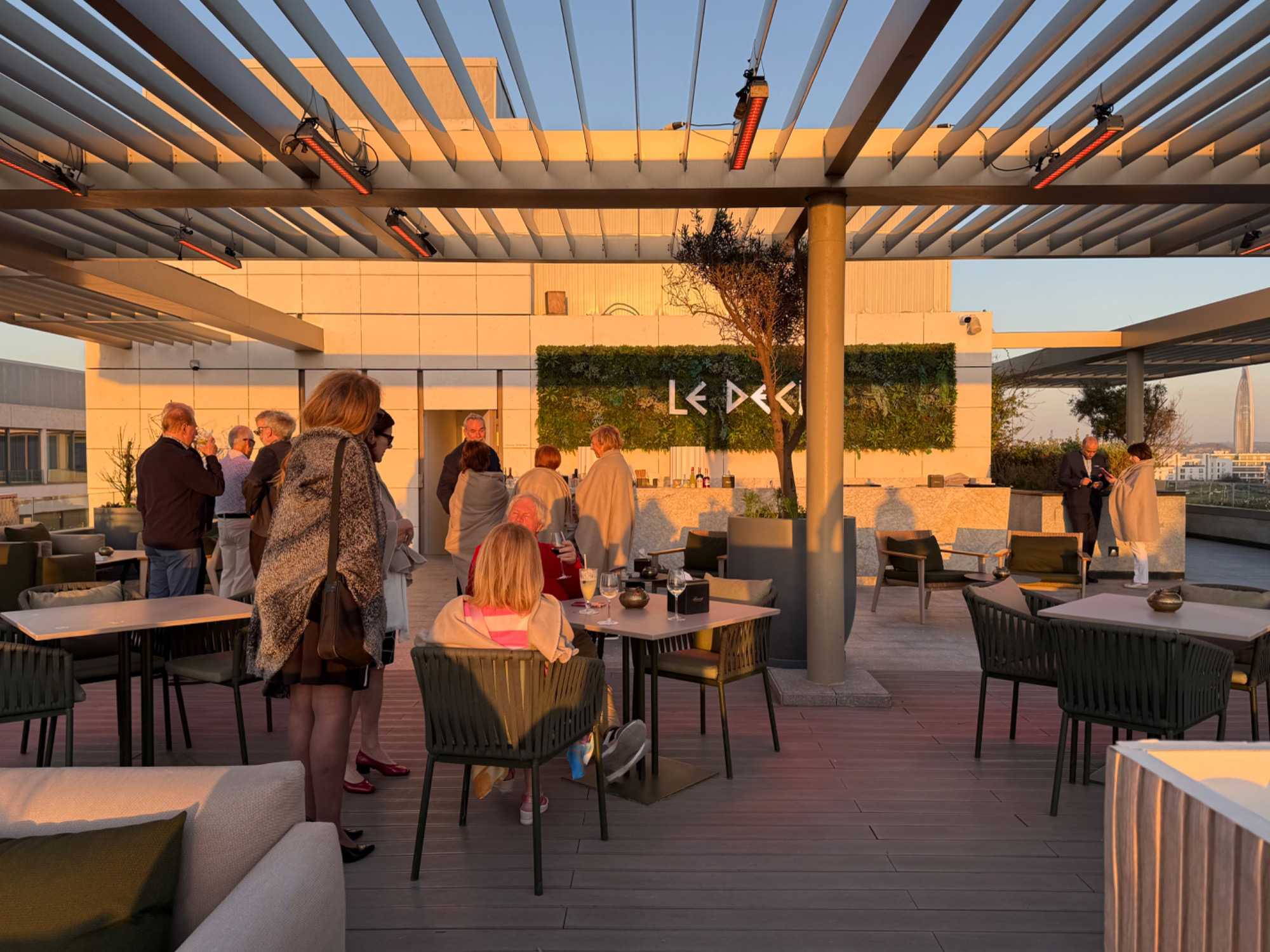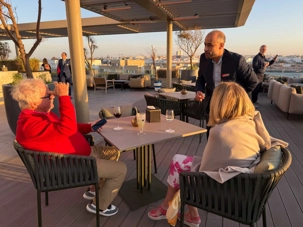 Après un peu de repos dans nos superbes chambres, nous nous sommes retrouvés sur le toit de l’hôtel pour un cocktail au coucher du soleil.