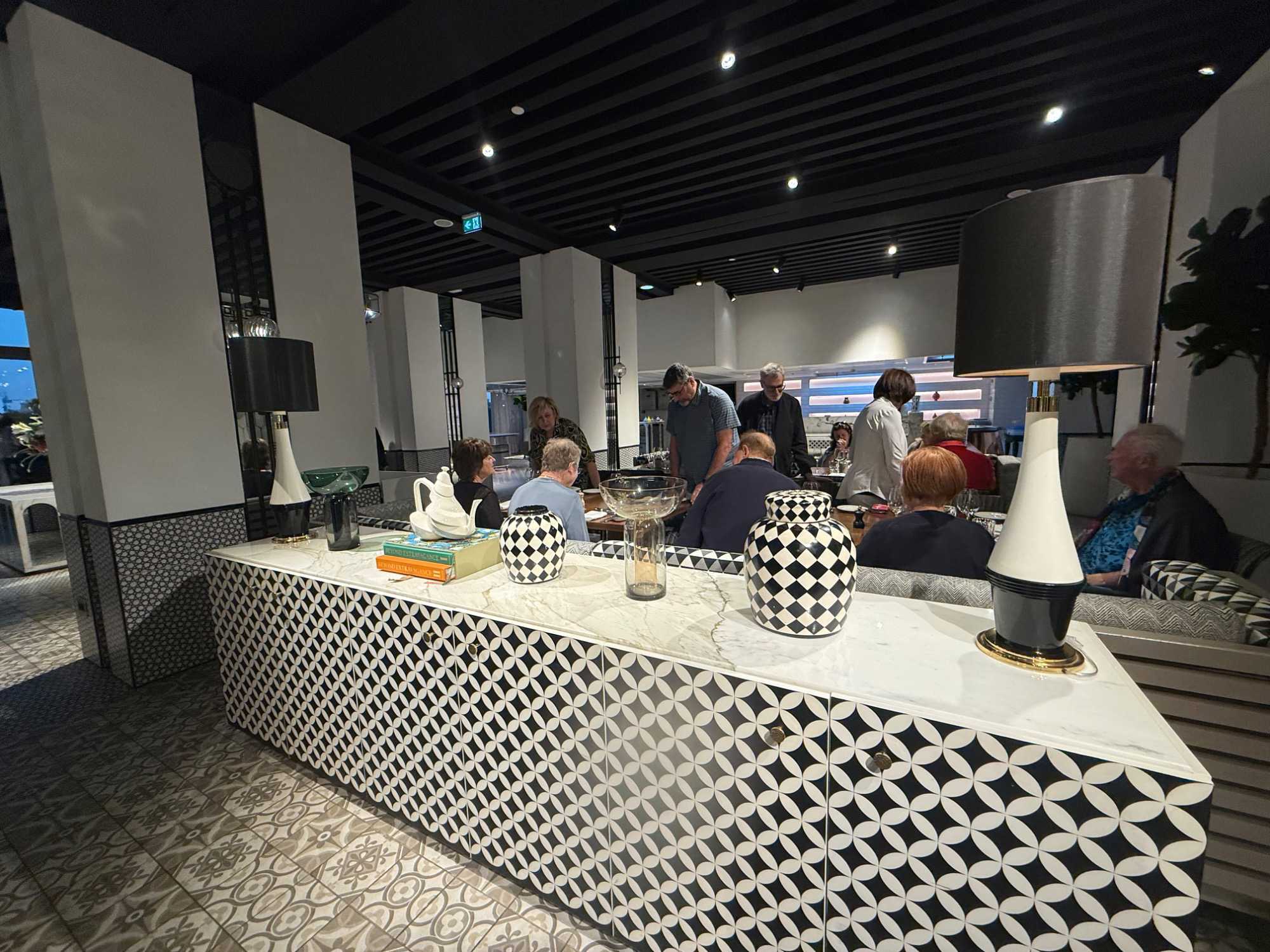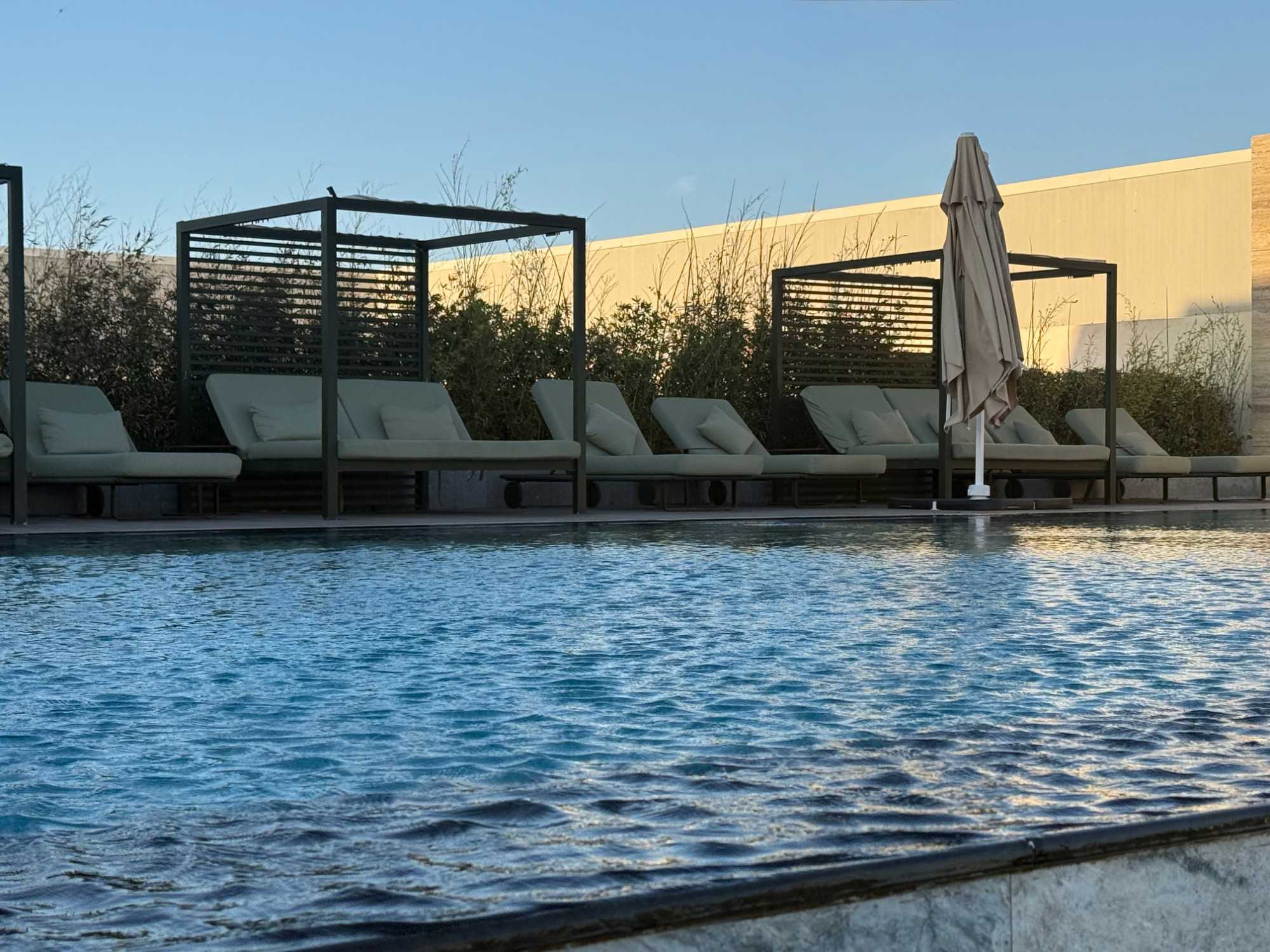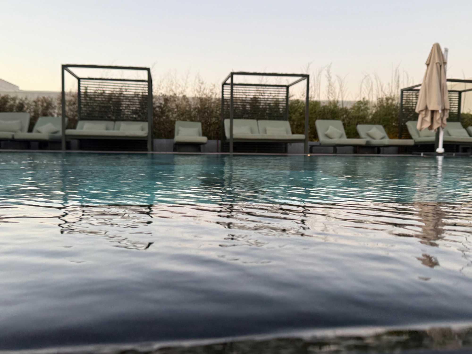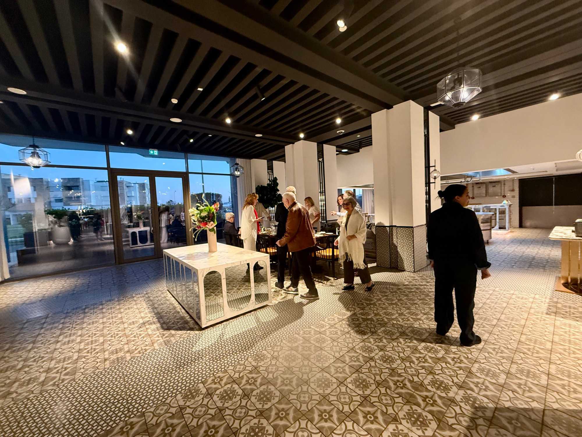 Après un peu de repos dans nos superbes chambres, nous nous sommes retrouvés sur le toit de l’hôtel pour un cocktail au coucher du soleil.