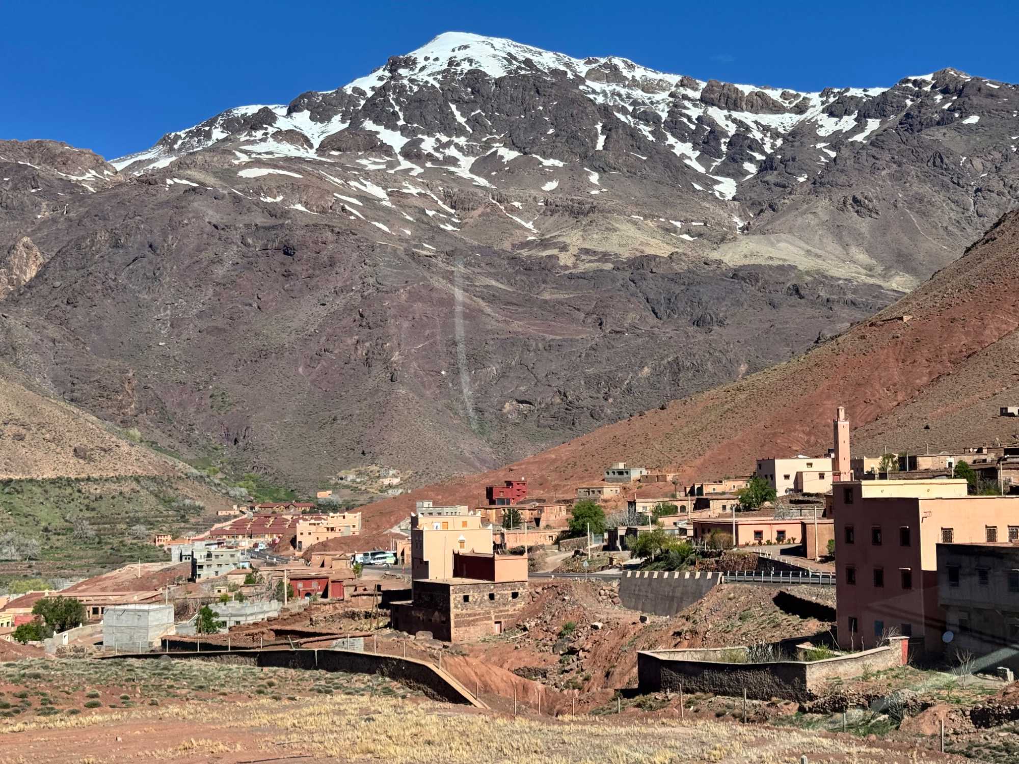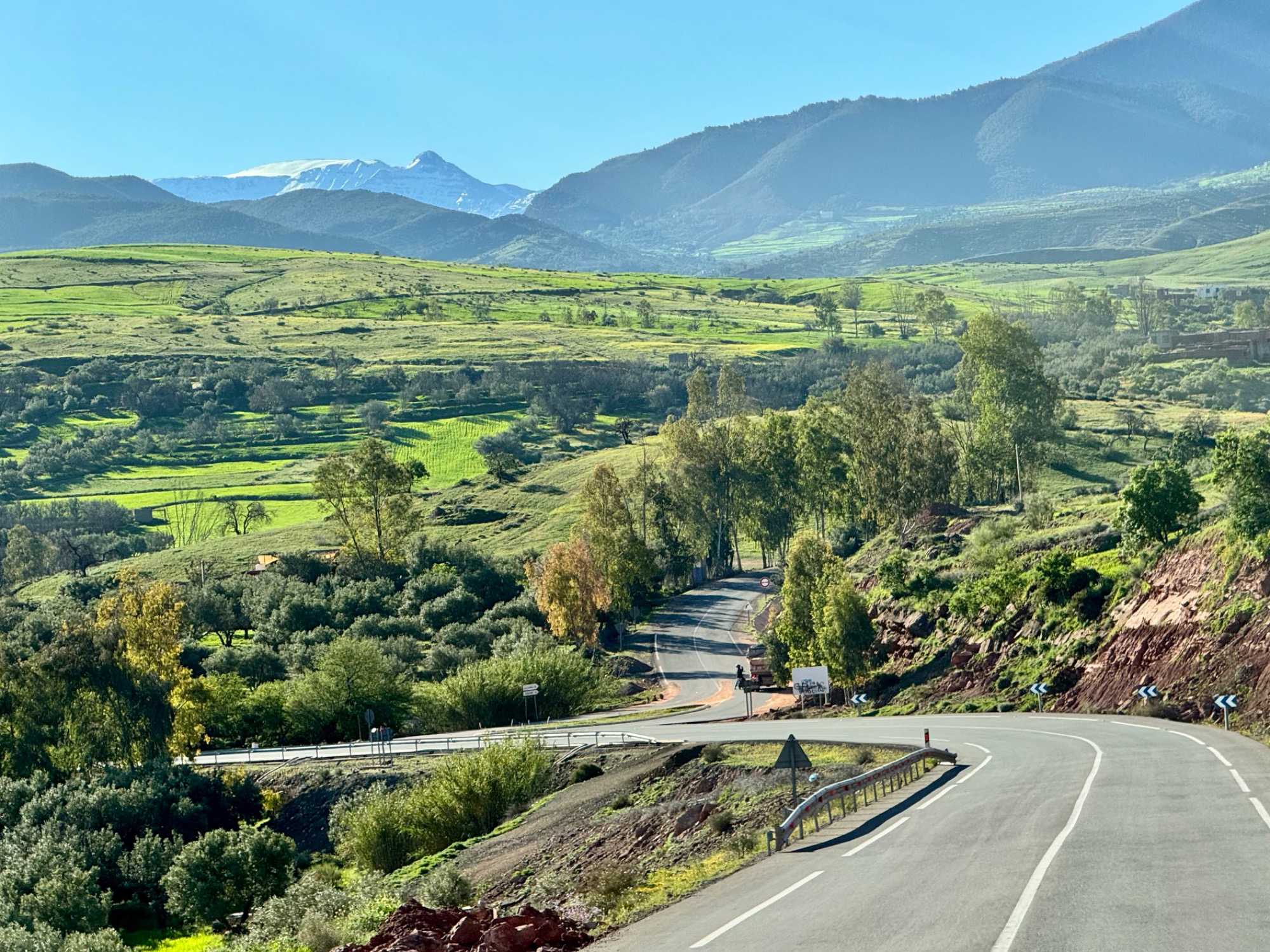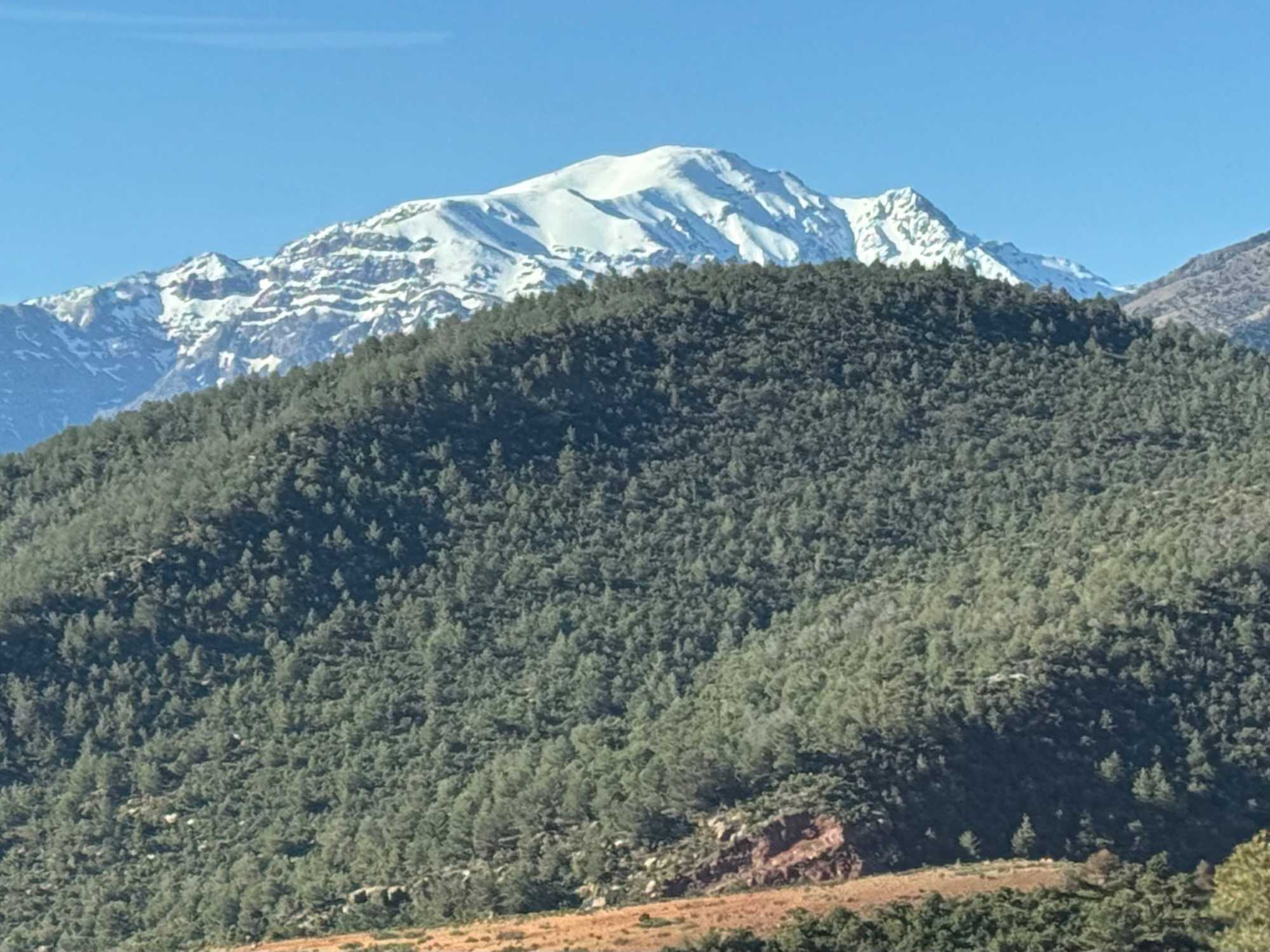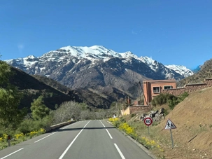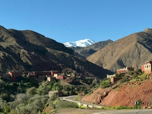 Très rapidement, nous prenons la direction des majestueuses montagnes du Grand Atlas, la plus haute chaîne montagneuse d’Afrique du Nord. Ce massif impressionnant traverse le Maroc sur plus de 700 kilomètres et abrite des sommets culminant à plus de 4 000 mètres, dont le célèbre mont Toubkal.