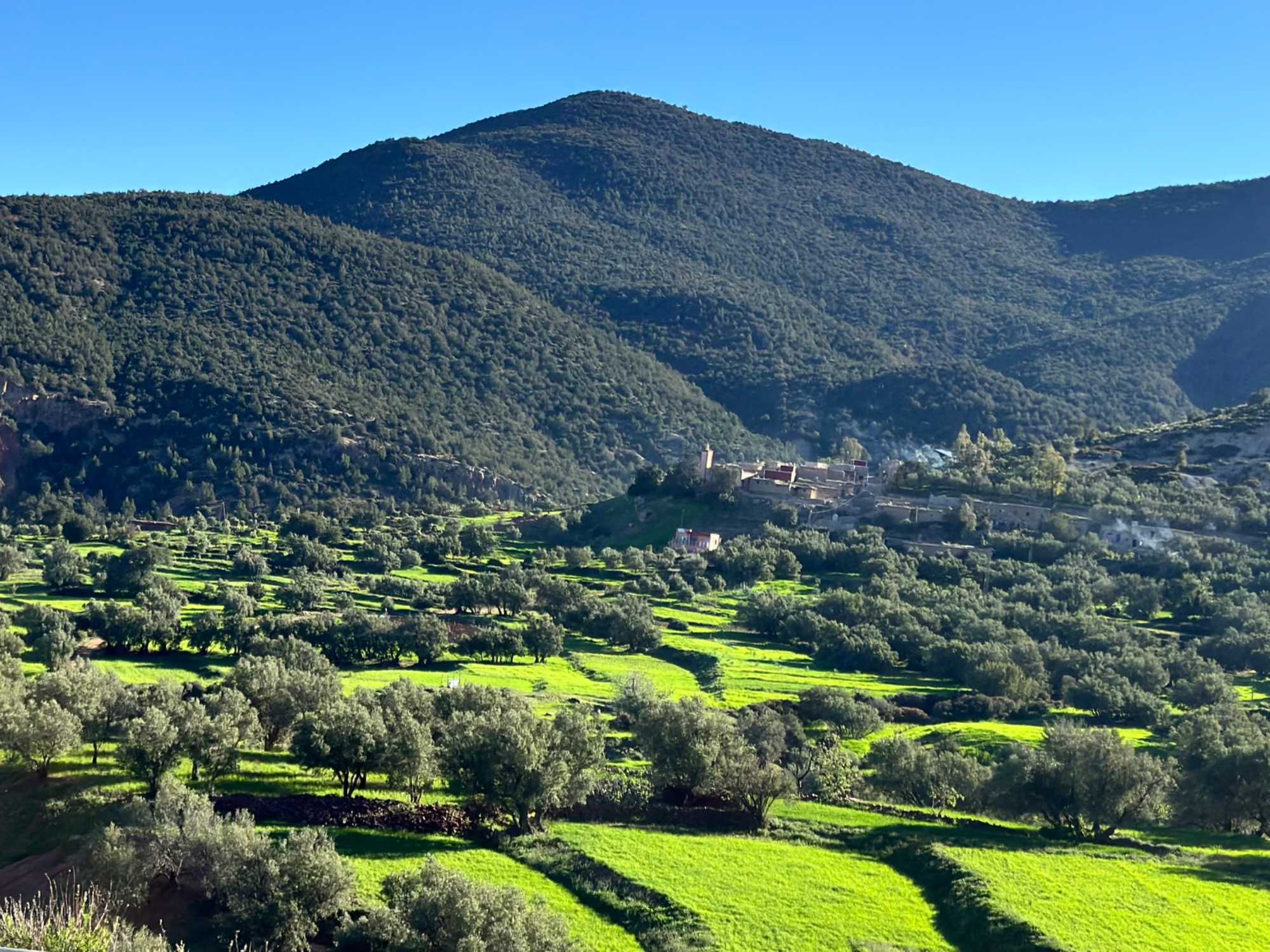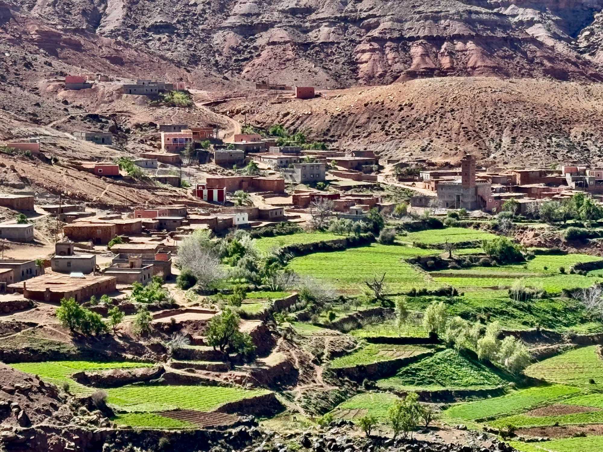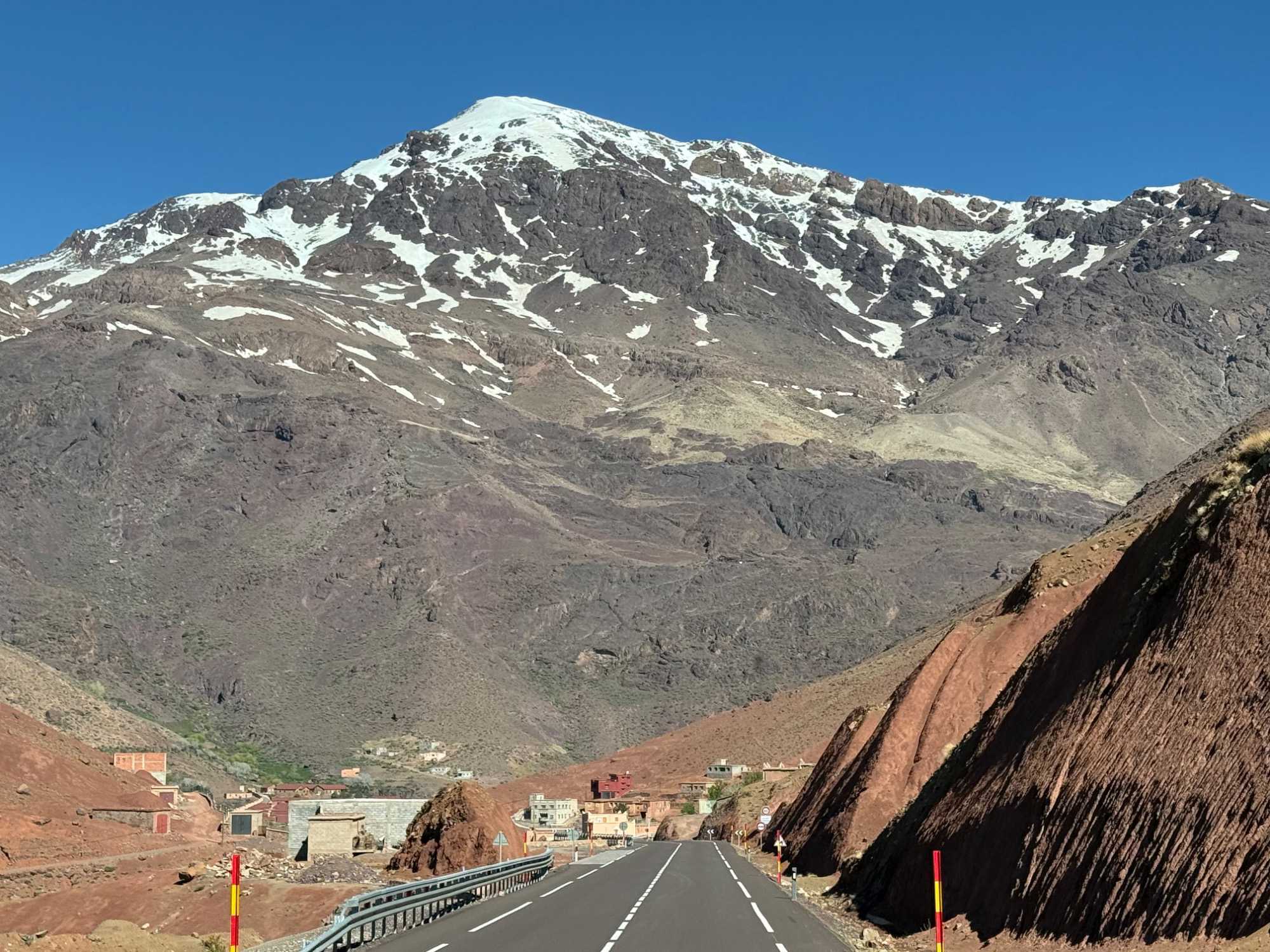 Très rapidement, nous prenons la direction des majestueuses montagnes du Grand Atlas, la plus haute chaîne montagneuse d’Afrique du Nord. Ce massif impressionnant traverse le Maroc sur plus de 700 kilomètres et abrite des sommets culminant à plus de 4 000 mètres, dont le célèbre mont Toubkal.