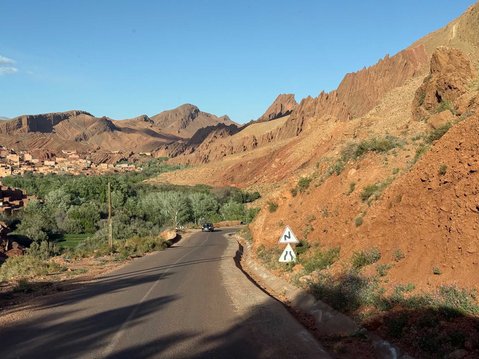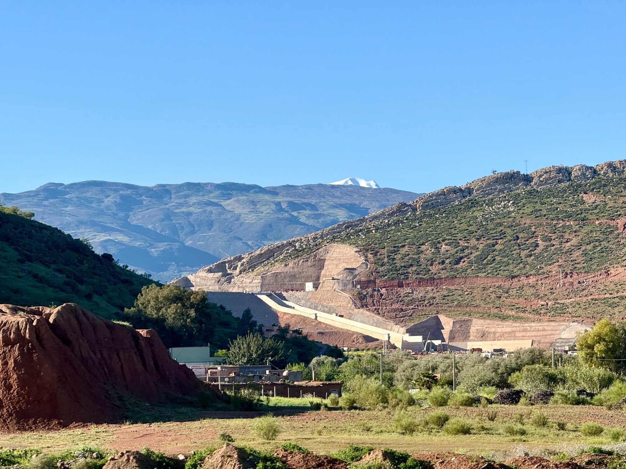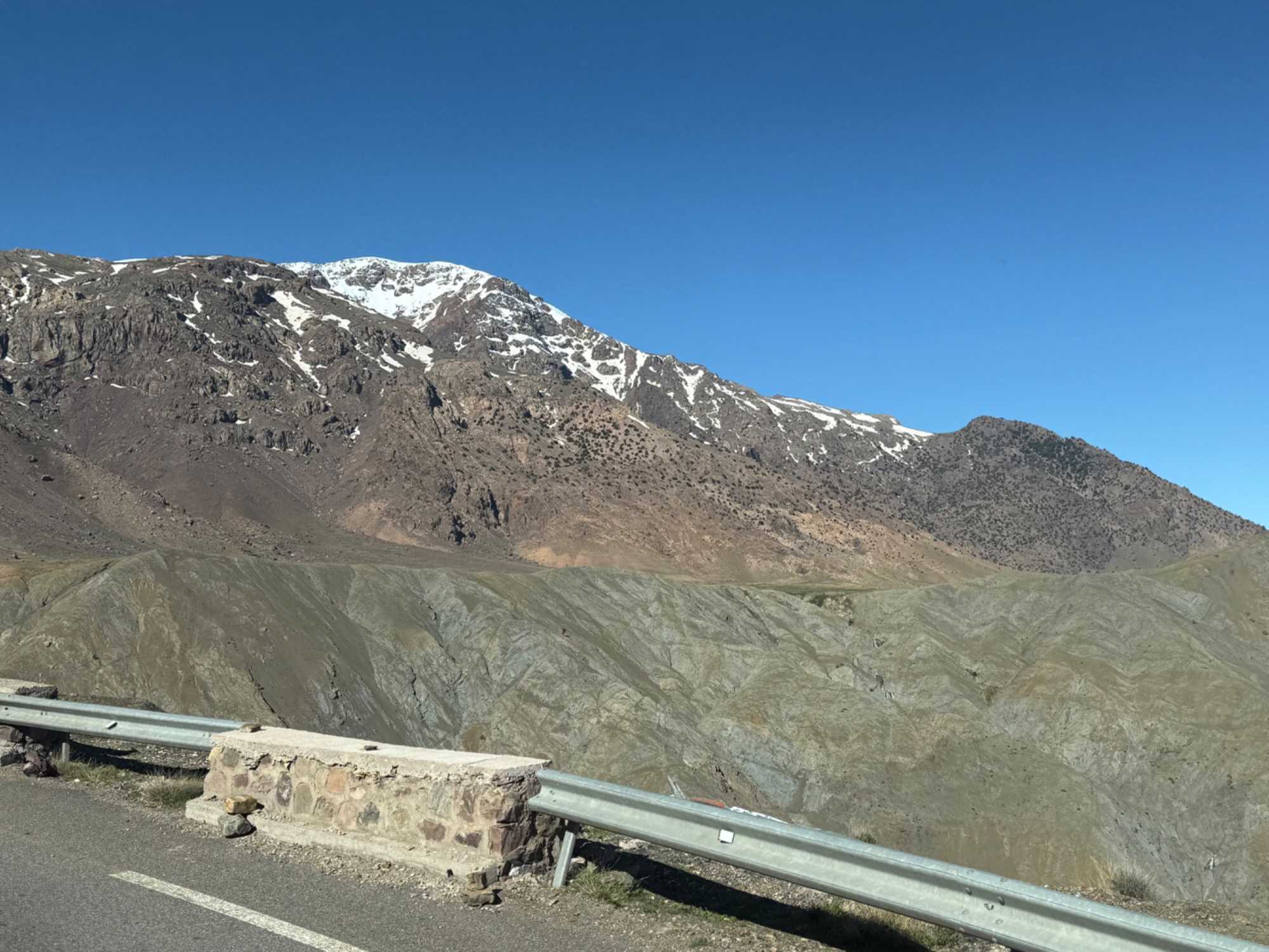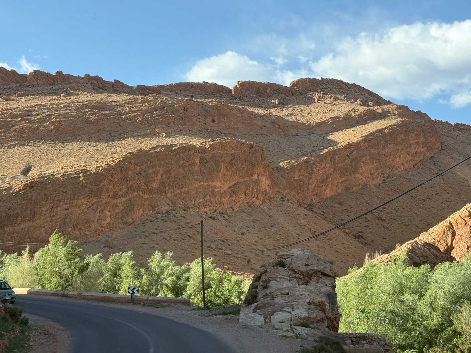 Au fil de notre montée, les paysages se transforment de façon spectaculaire. Nous quittons peu à peu les plaines pour emprunter des routes sinueuses qui s’élèvent à travers des cols impressionnants, dont certains dépassent les 2 000 mètres d’altitude. À chaque virage, le décor change : les teintes ocre et rouges de la terre, les villages berbères accrochés à flanc de montagne, les vallées profondes et les plateaux arides créent un contraste saisissant.