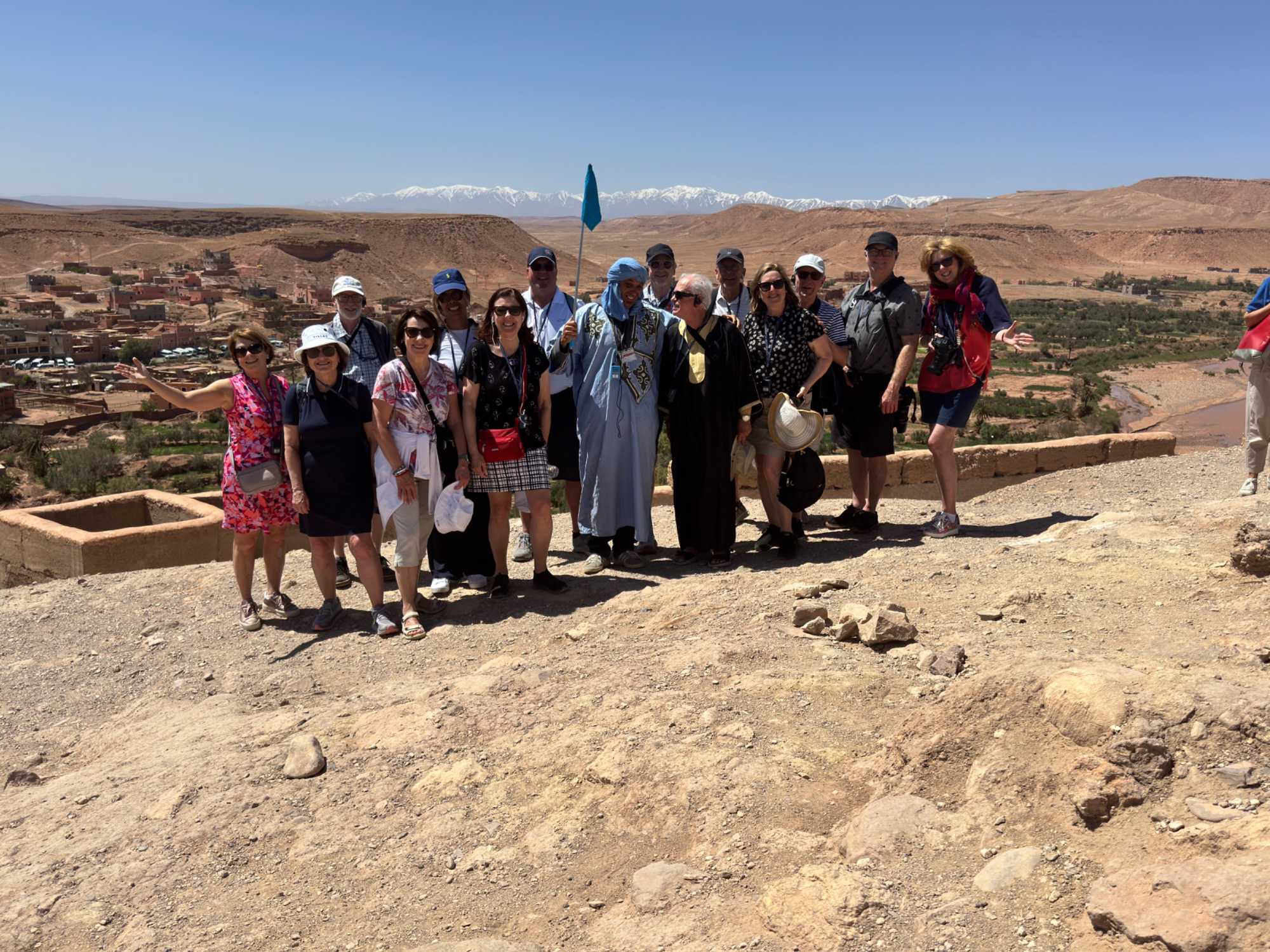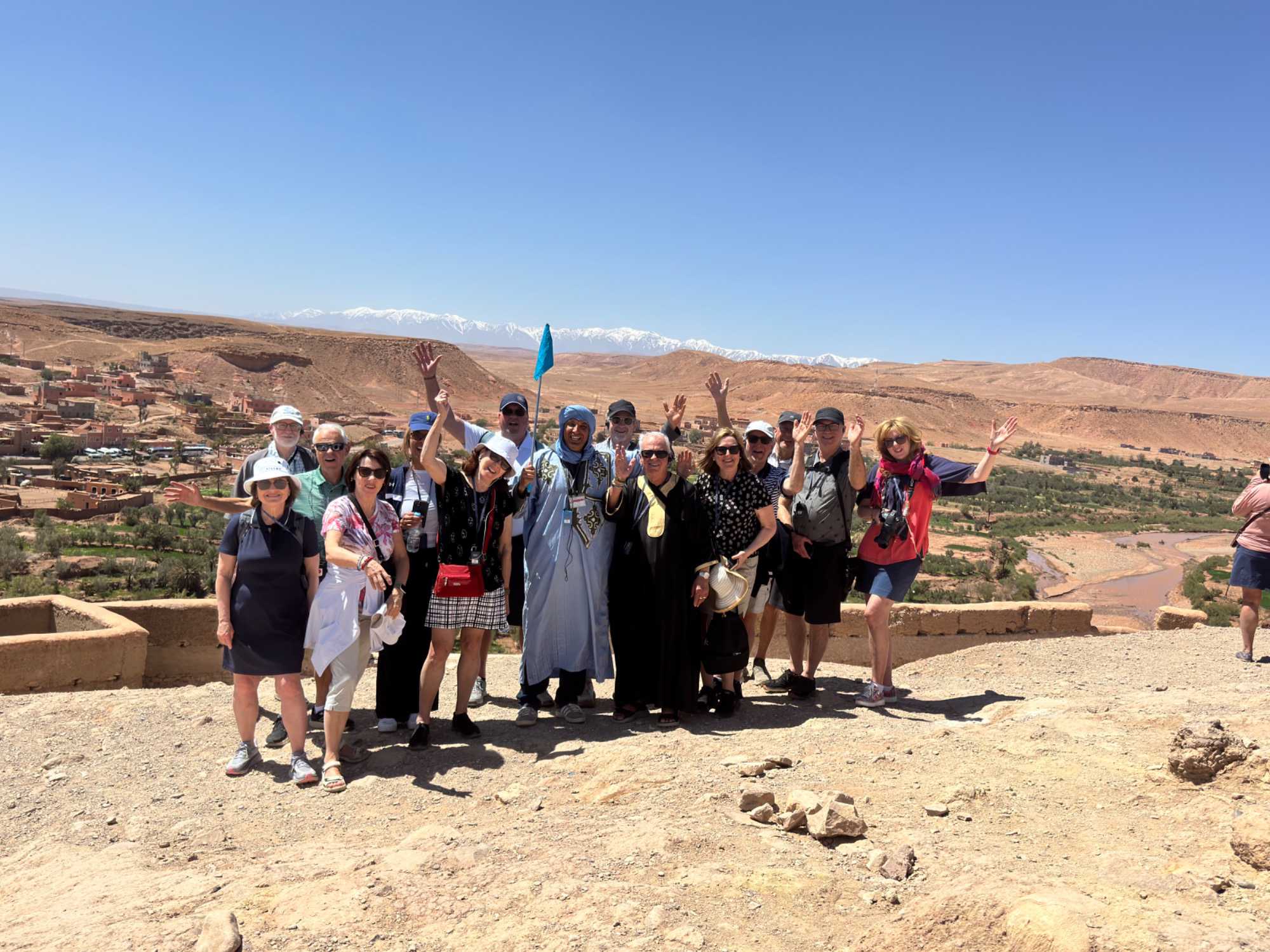 Après trois merveilleuses nuits à Marrakech, nous quittons ce matin cette ville fascinante pour partir à la découverte des paysages grandioses du Maroc. Notre départ se fait vers 8 h, après un excellent petit-déjeuner à l’hôtel. Déjà, le soleil est au rendez-vous, avec une douce température de 16 à 17 degrés, annonçant une journée lumineuse et agréable.