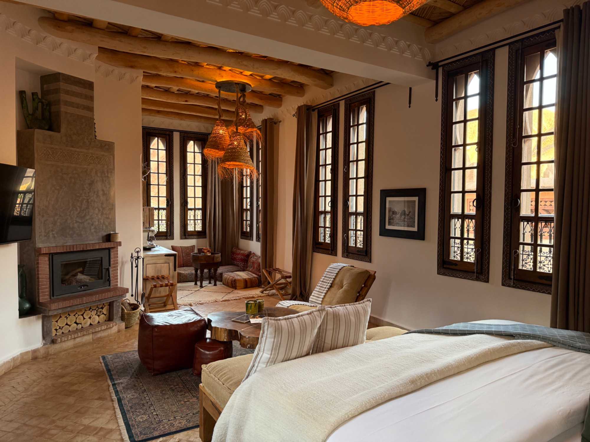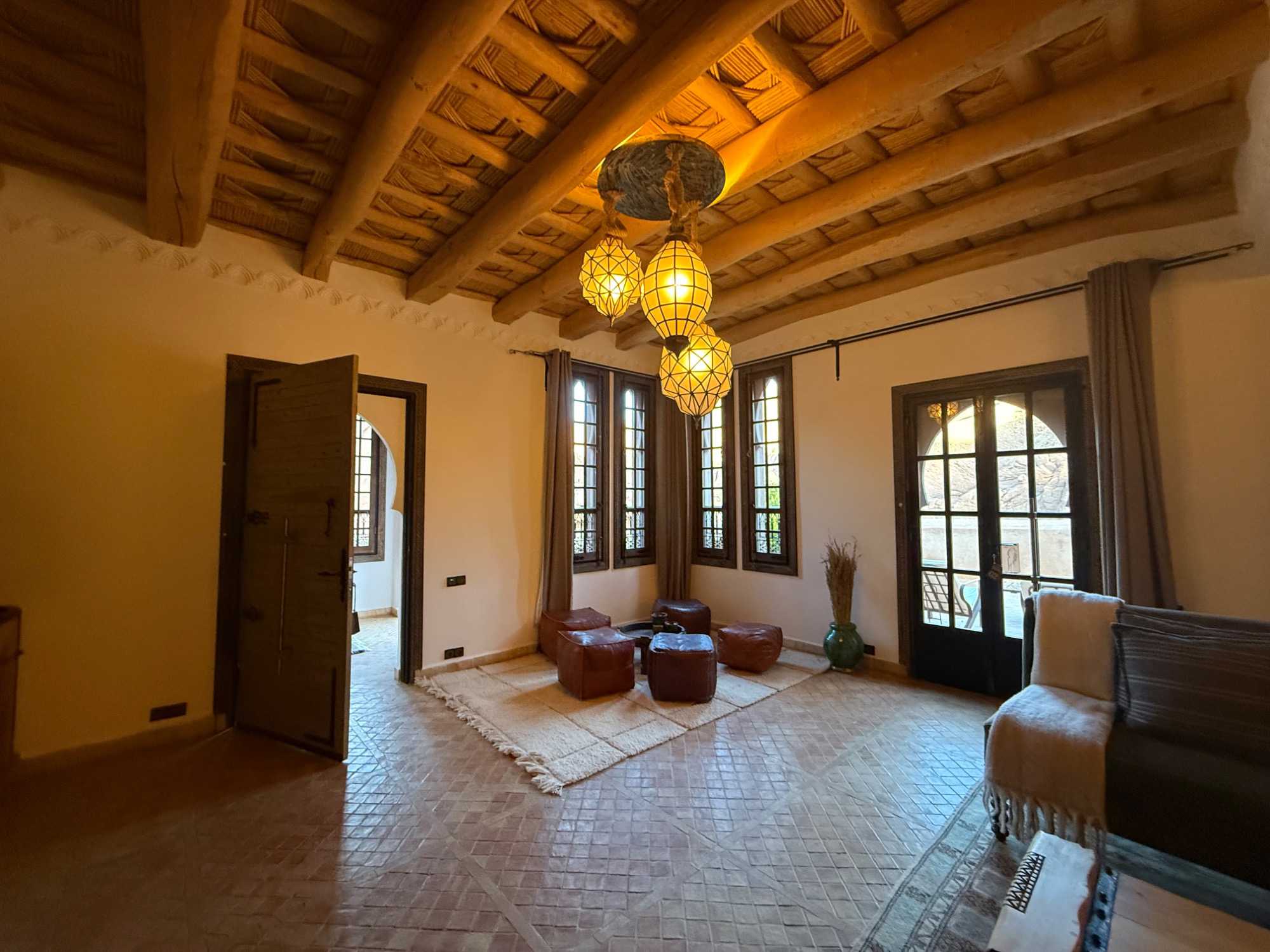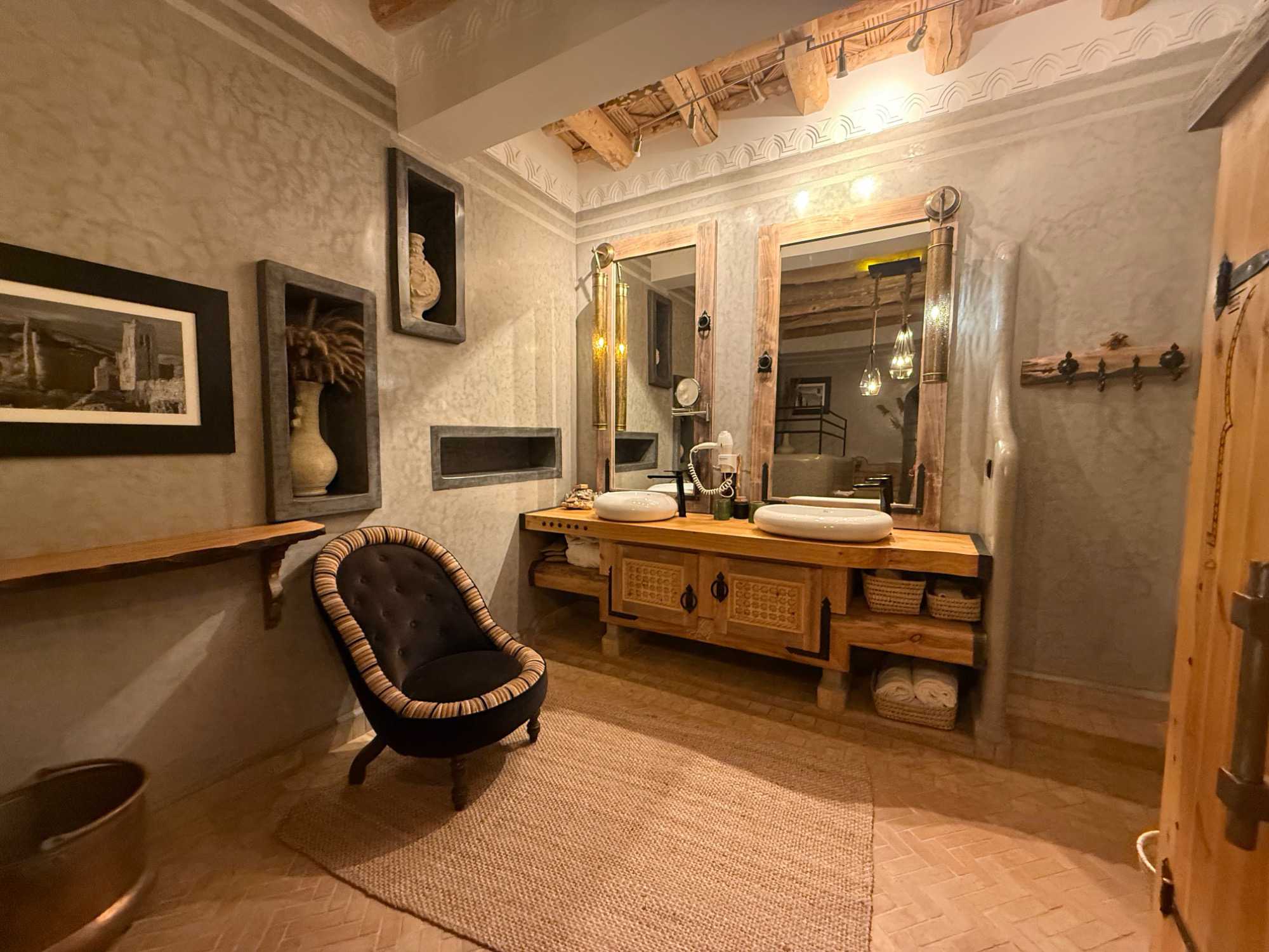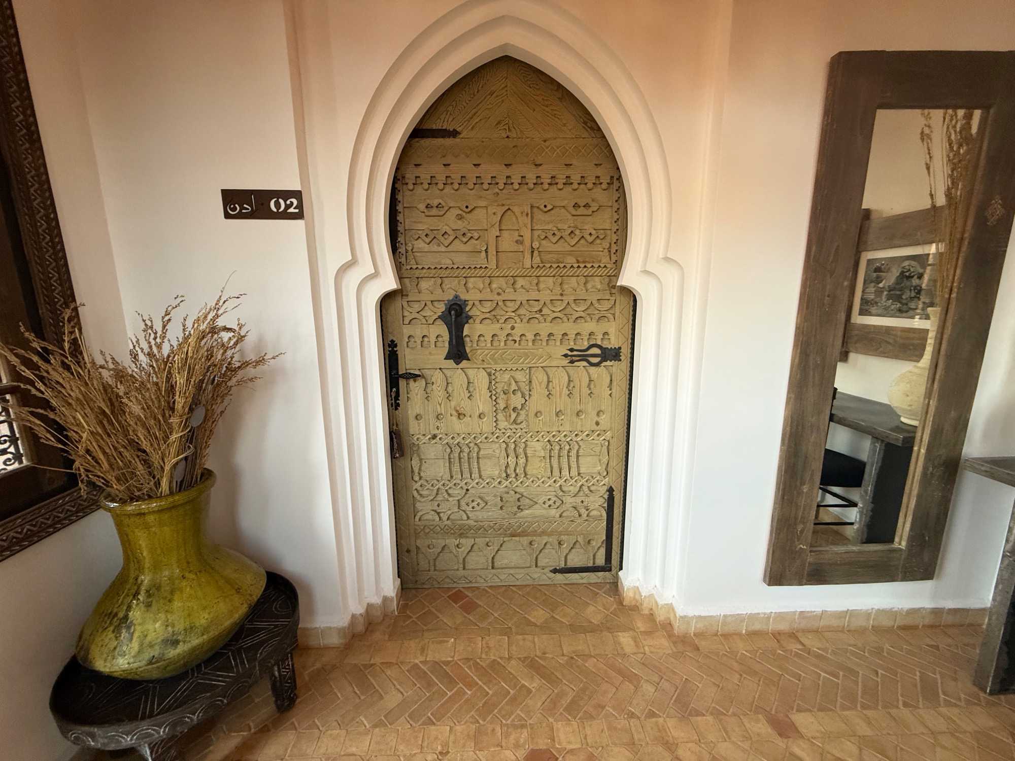 Ce qui rend cet hôtel absolument unique, c’est son identité profondément marocaine. Tout a été pensé dans les moindres détails : les boiseries sculptées à la main, les zelliges traditionnels, les textiles berbères, le mobilier sur mesure… Chaque élément raconte une histoire et reflète l’âme de la région.