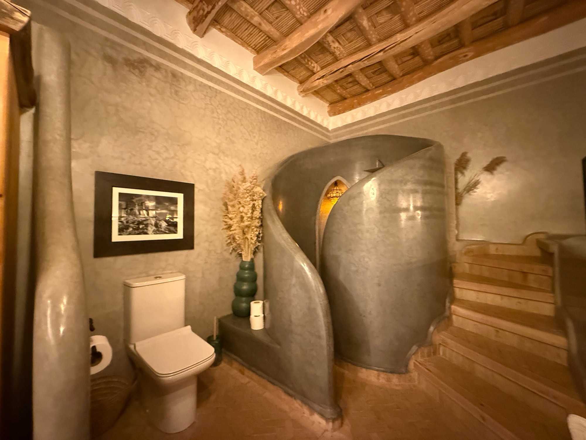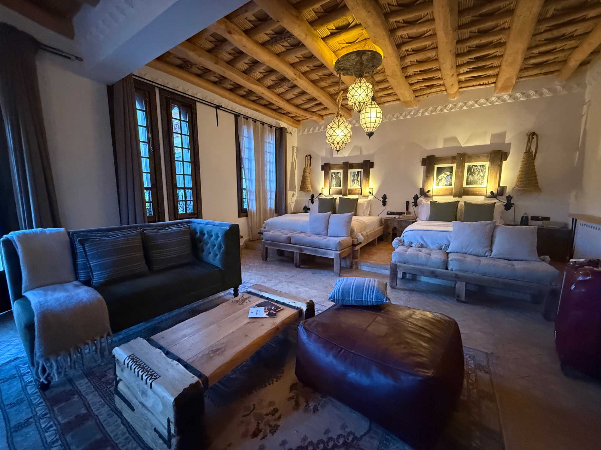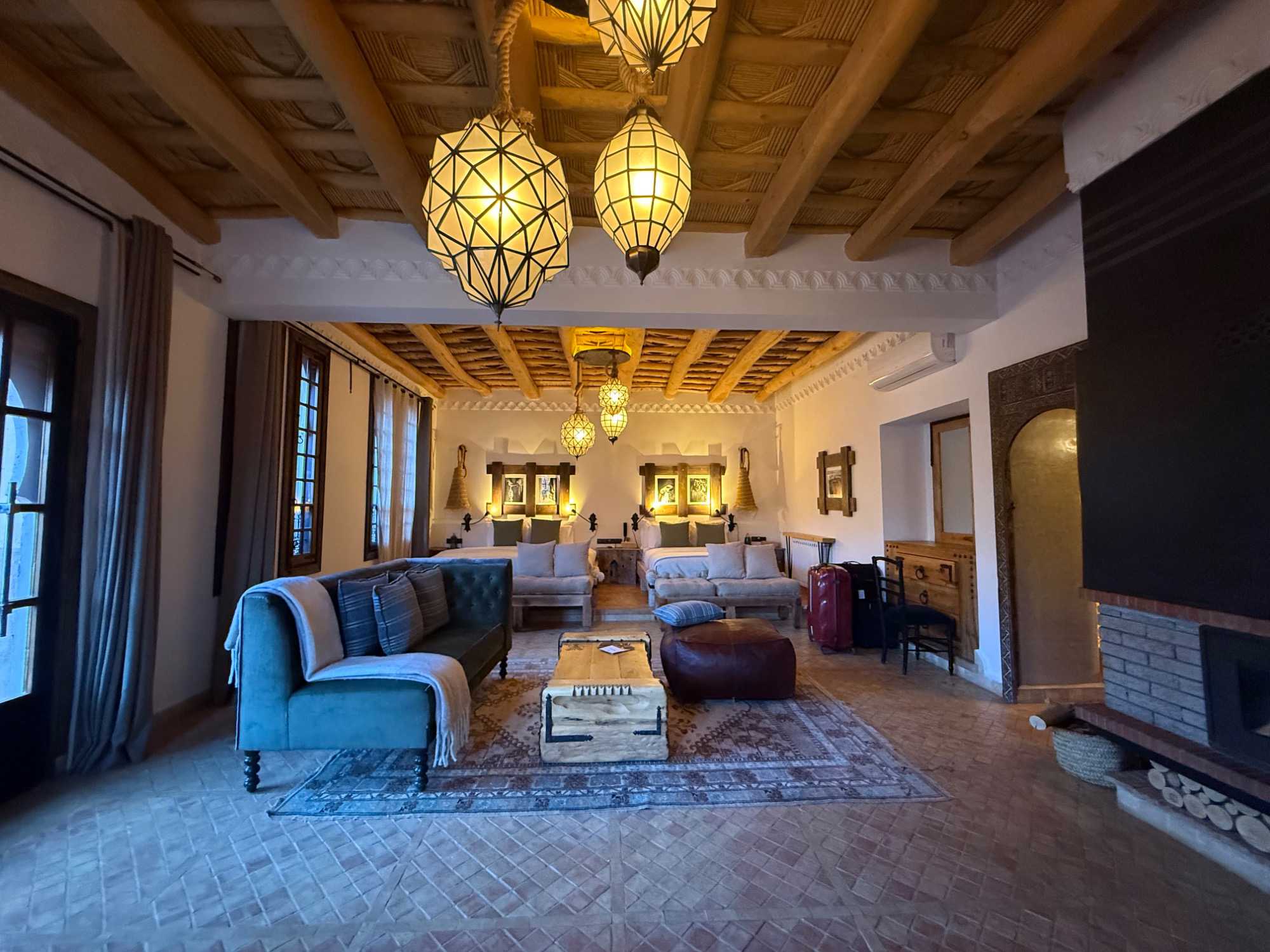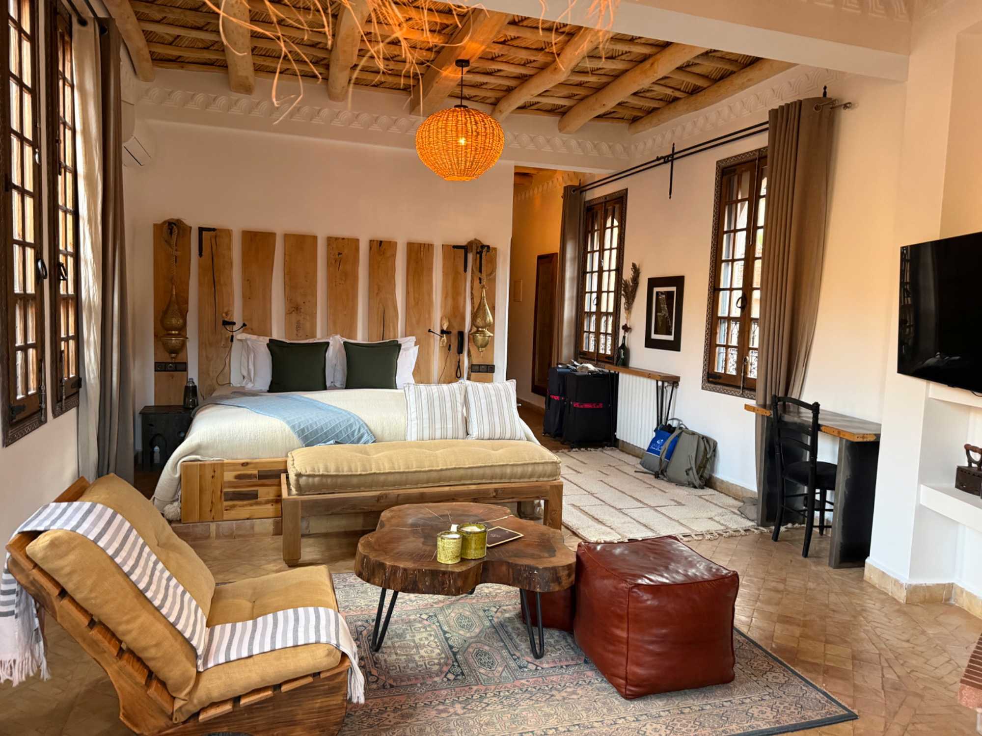 Ce qui rend cet hôtel absolument unique, c’est son identité profondément marocaine. Tout a été pensé dans les moindres détails : les boiseries sculptées à la main, les zelliges traditionnels, les textiles berbères, le mobilier sur mesure… Chaque élément raconte une histoire et reflète l’âme de la région.