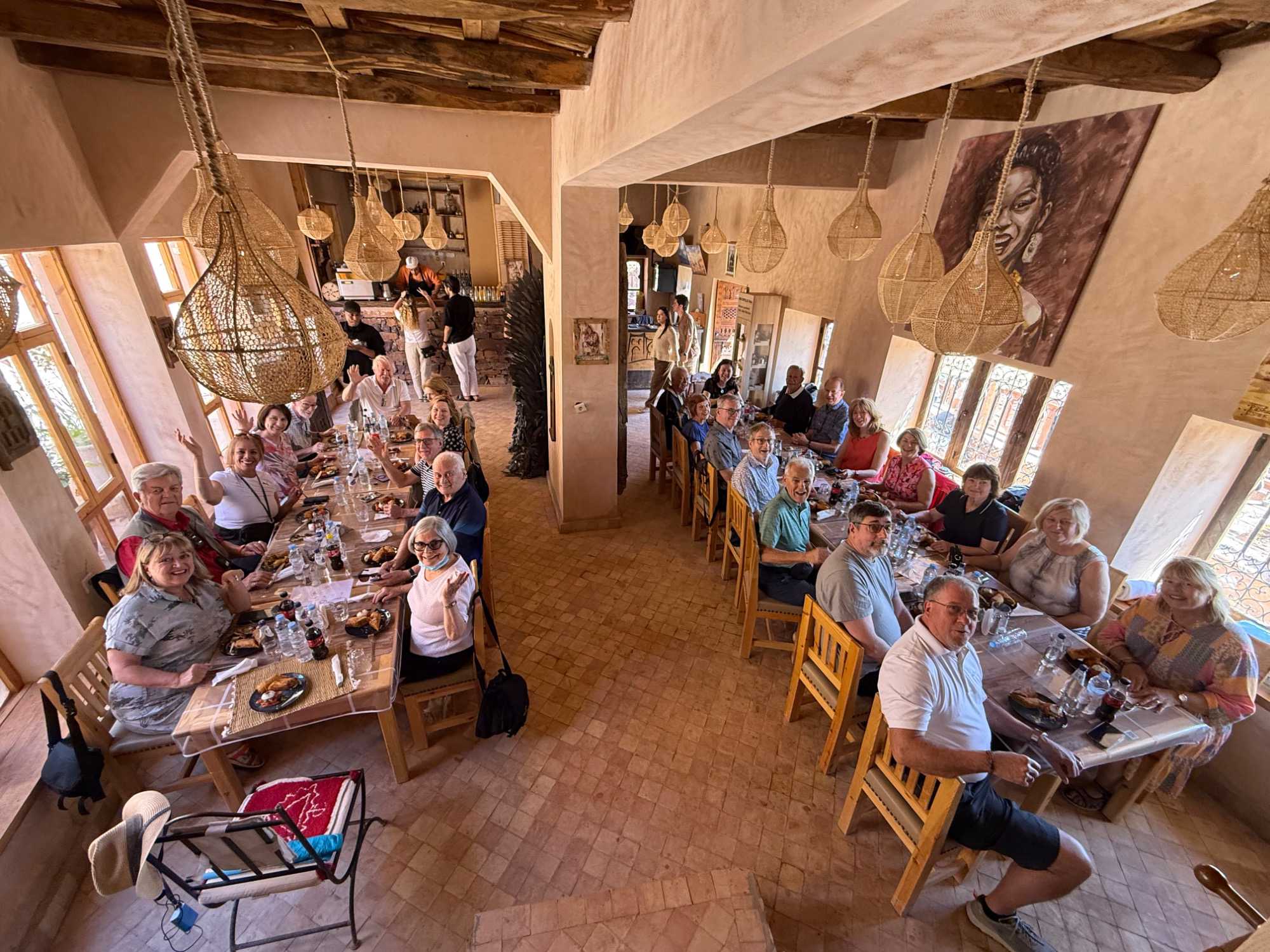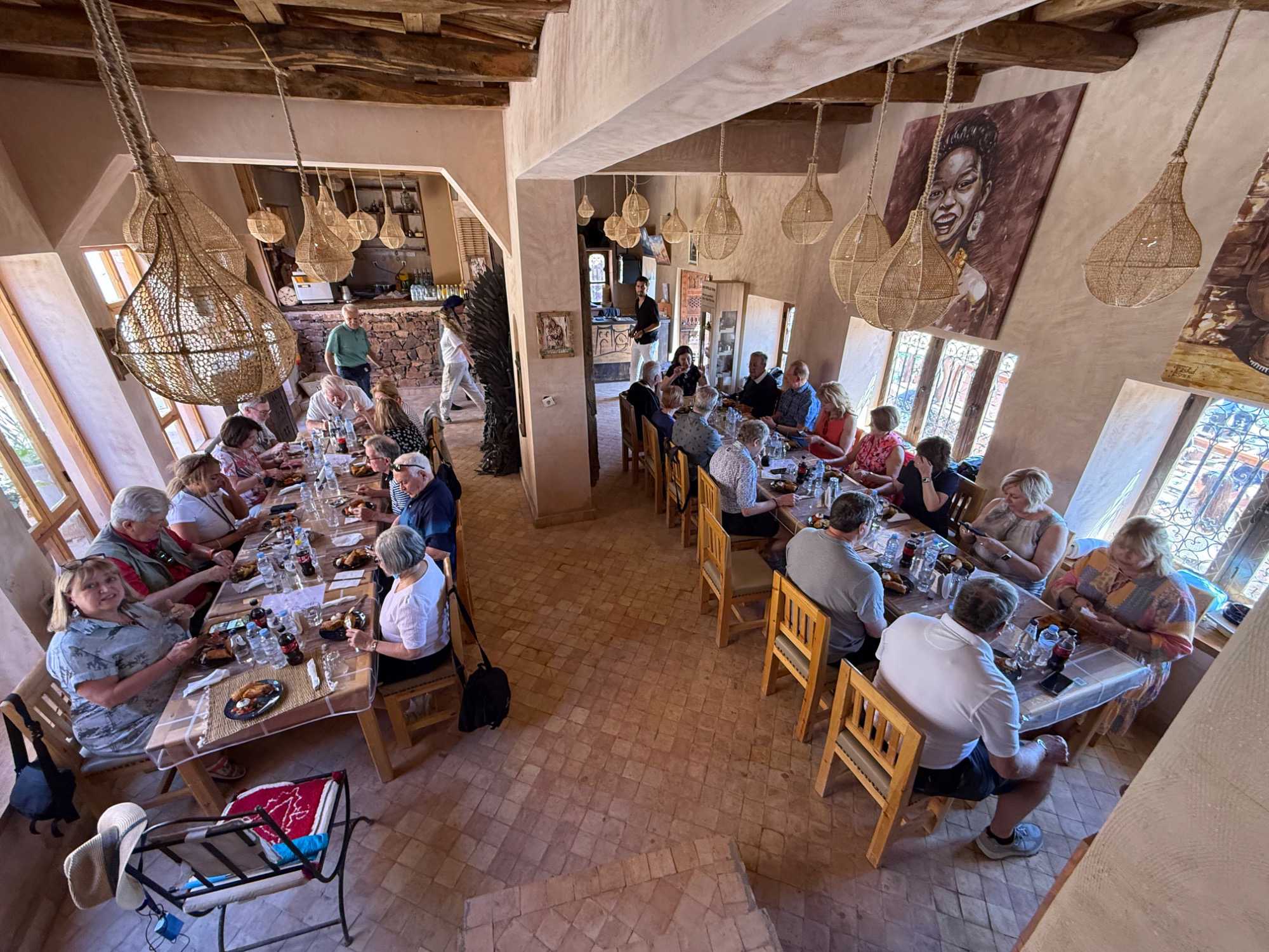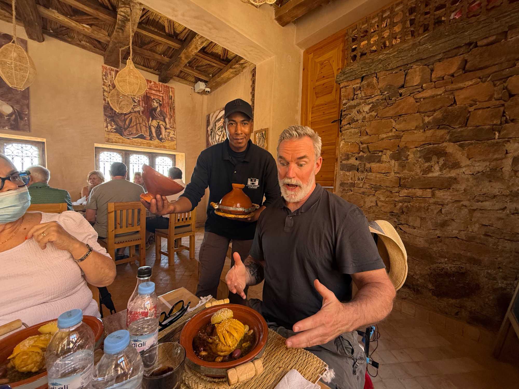 Nous faisons une pause pour le dîner dans un charmant restaurant situé au cœur du village, La Table de la Kasbah by Amy Negren. L’accueil y est exceptionnel : chaleureux, généreux, authentique. Nous sommes reçus comme des rois.