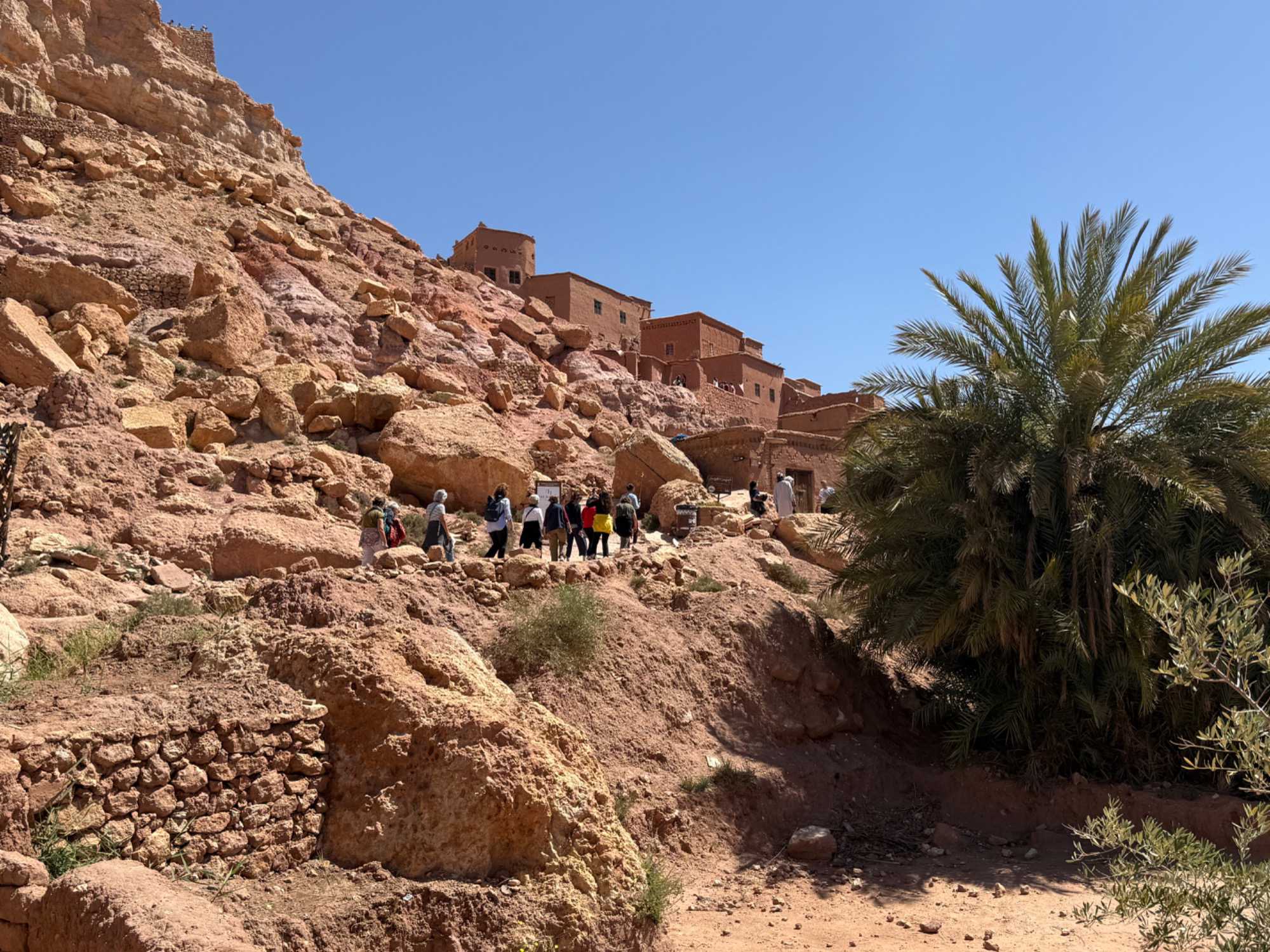Nous traversons la rivière, puis entamons l’ascension du ksar, construit à flanc de colline. Chaque ruelle, chaque escalier, chaque mur raconte une histoire.
