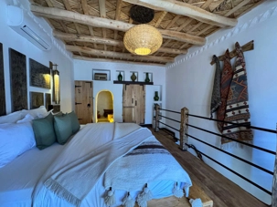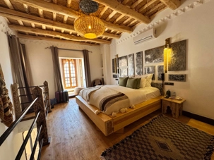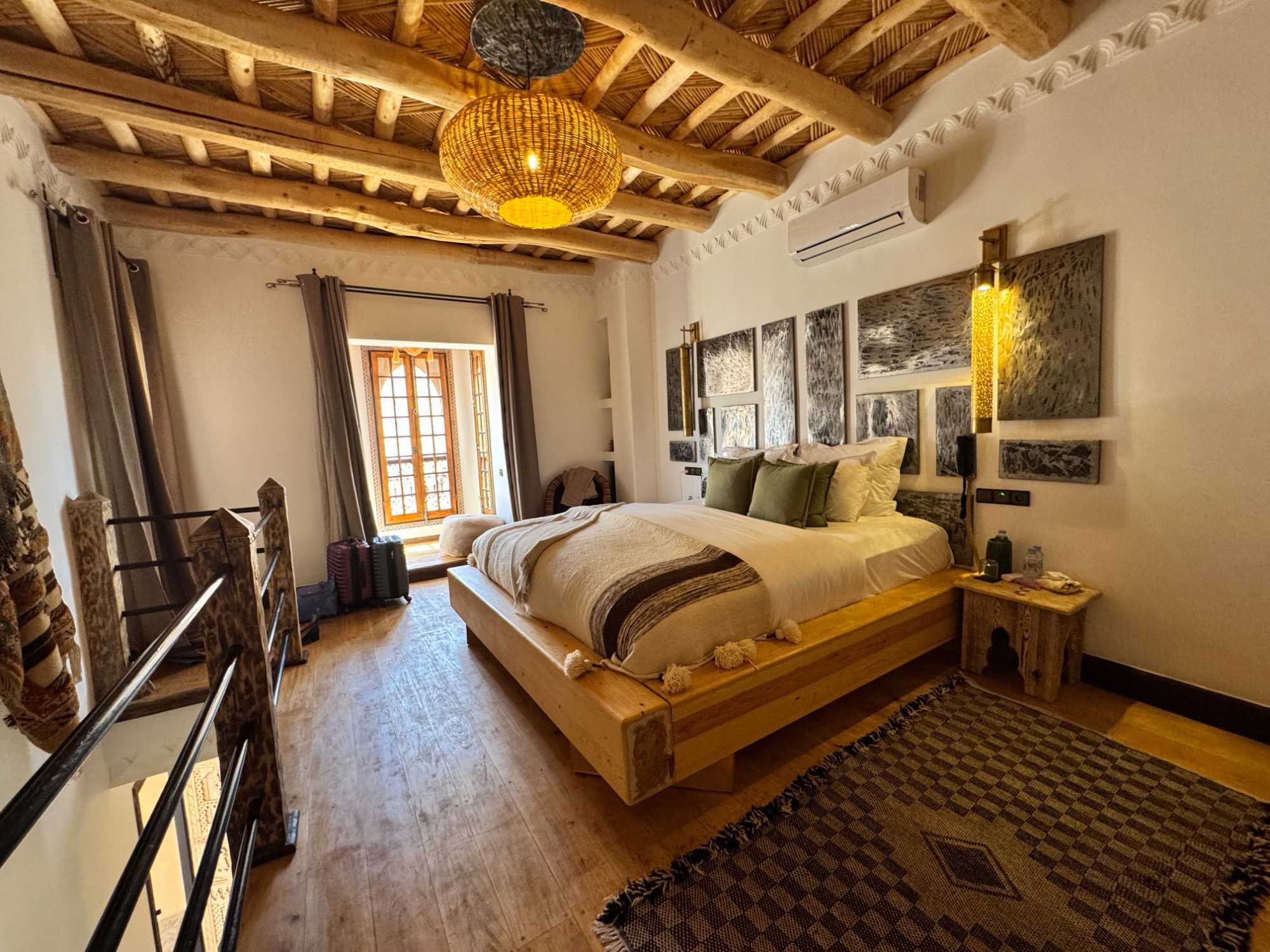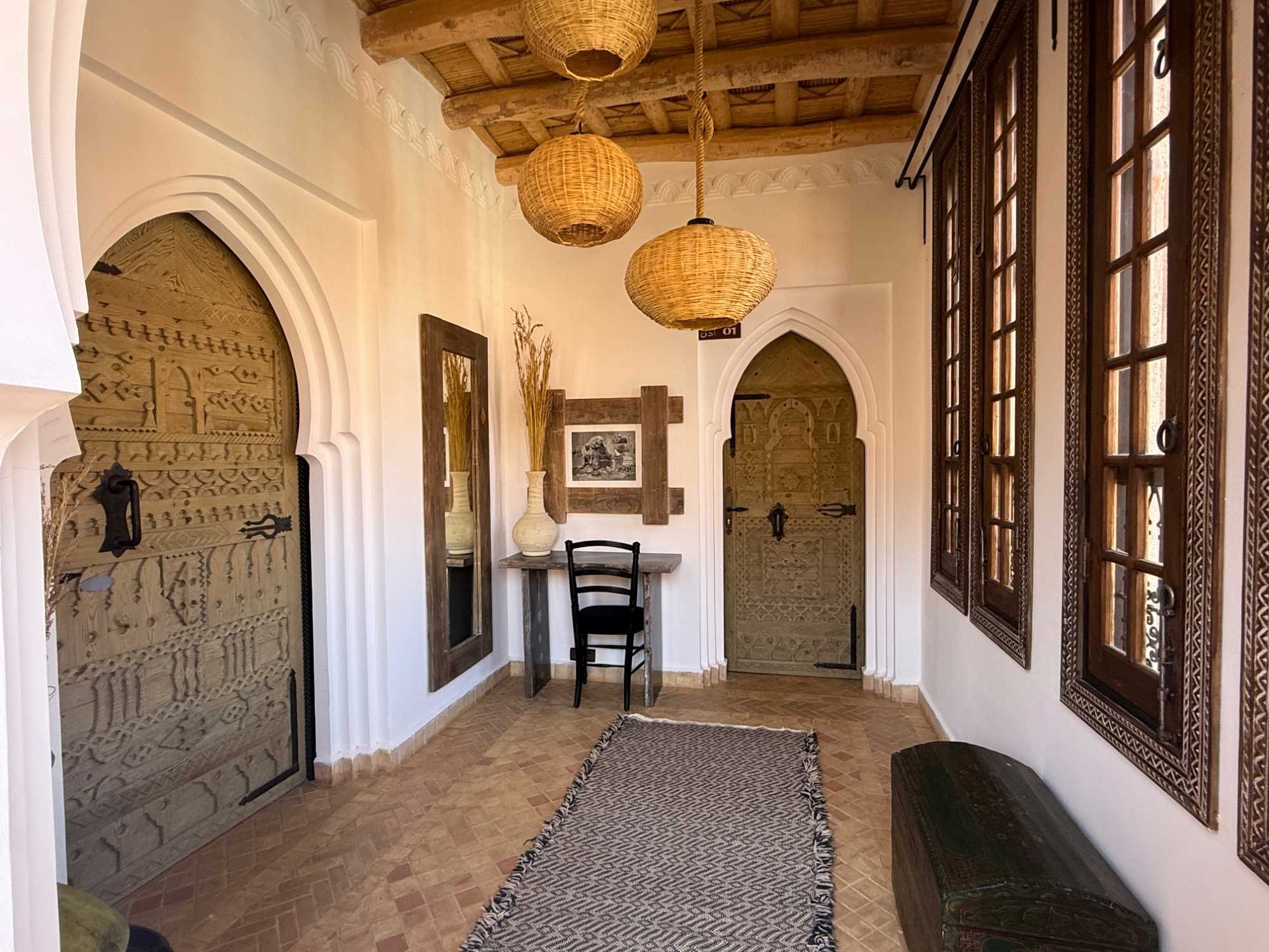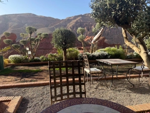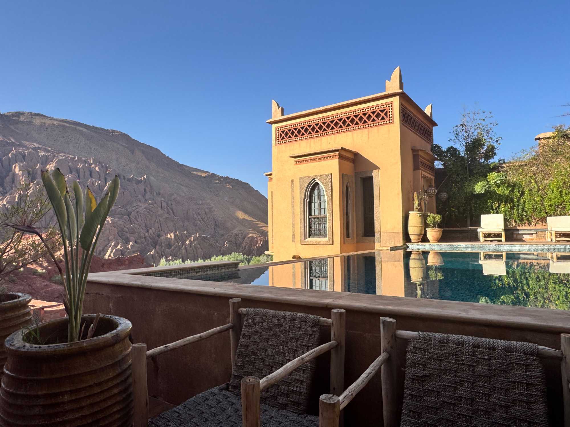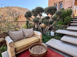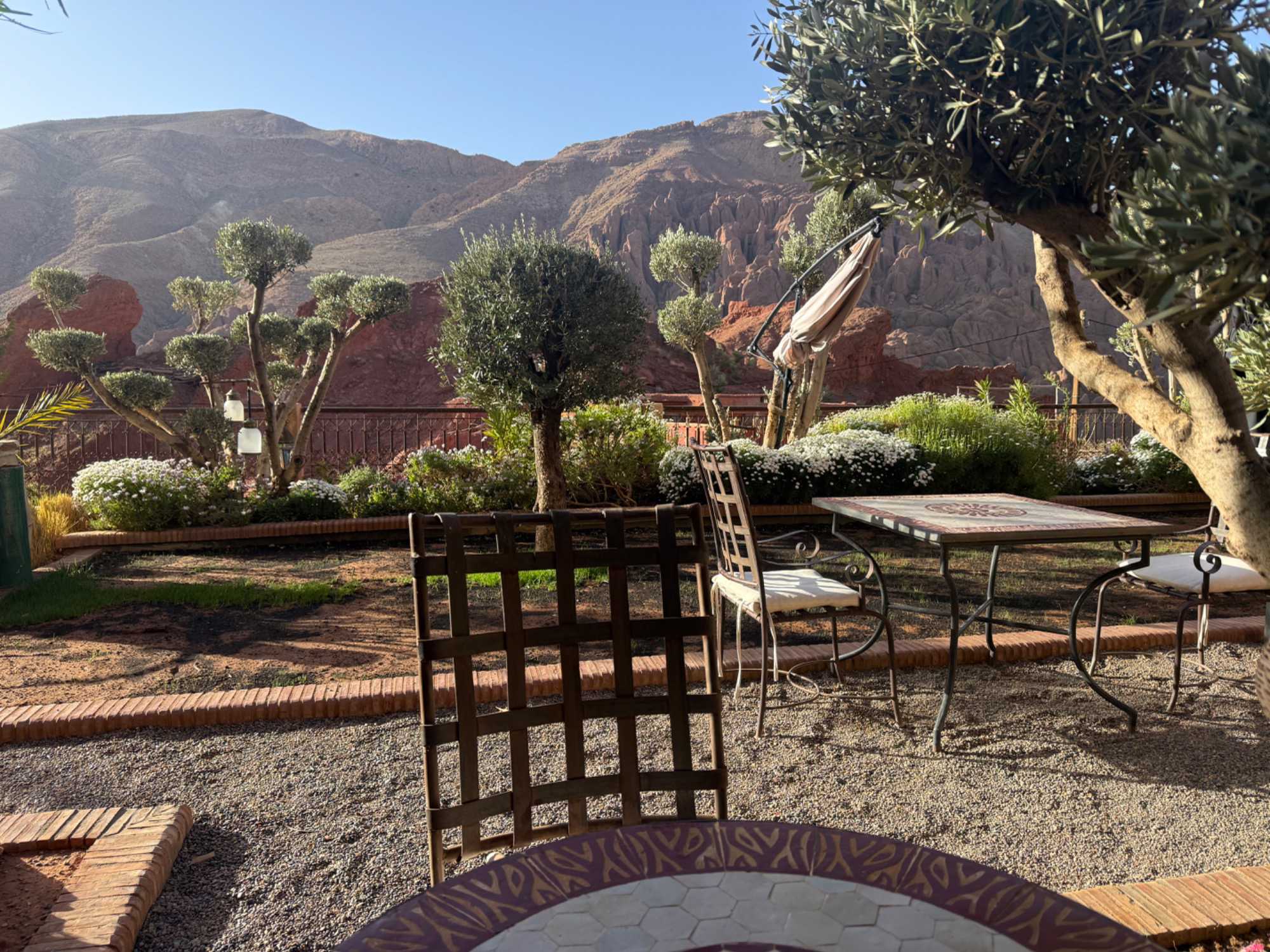 Tout est soigneusement présenté à table : quatre jus différents pour chacun, des crêpes maison, du pain frais, une variété de confitures, sans oublier les œufs préparés à la marocaine, tout simplement délicieux. Un petit-déjeuner élégant, généreux et savoureux — à l’image de cet hôtel exceptionnel.