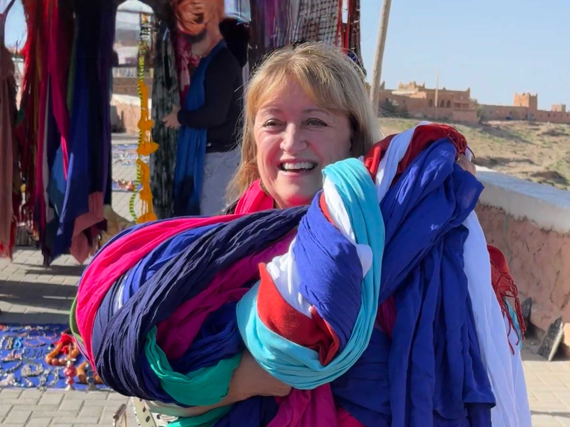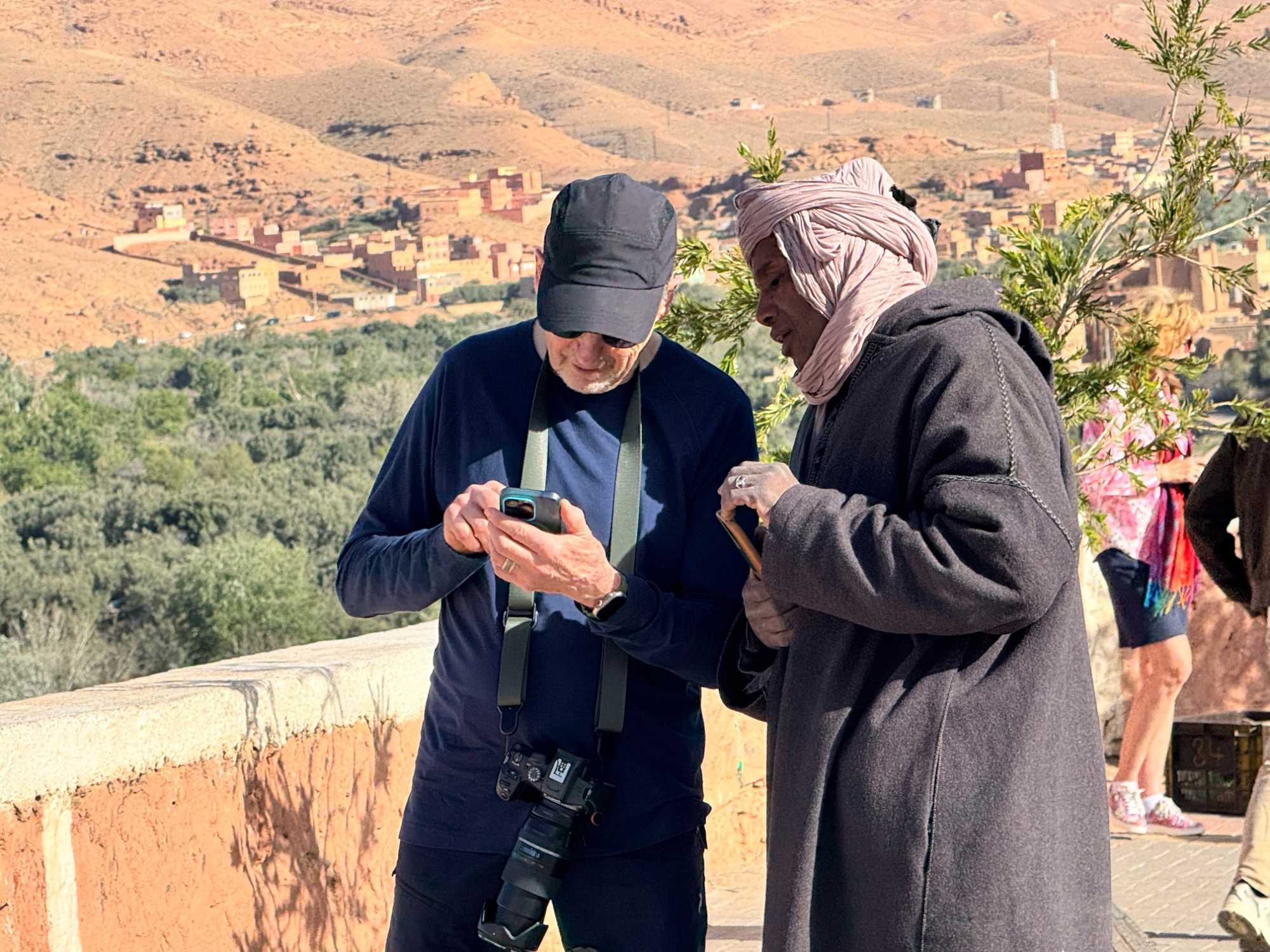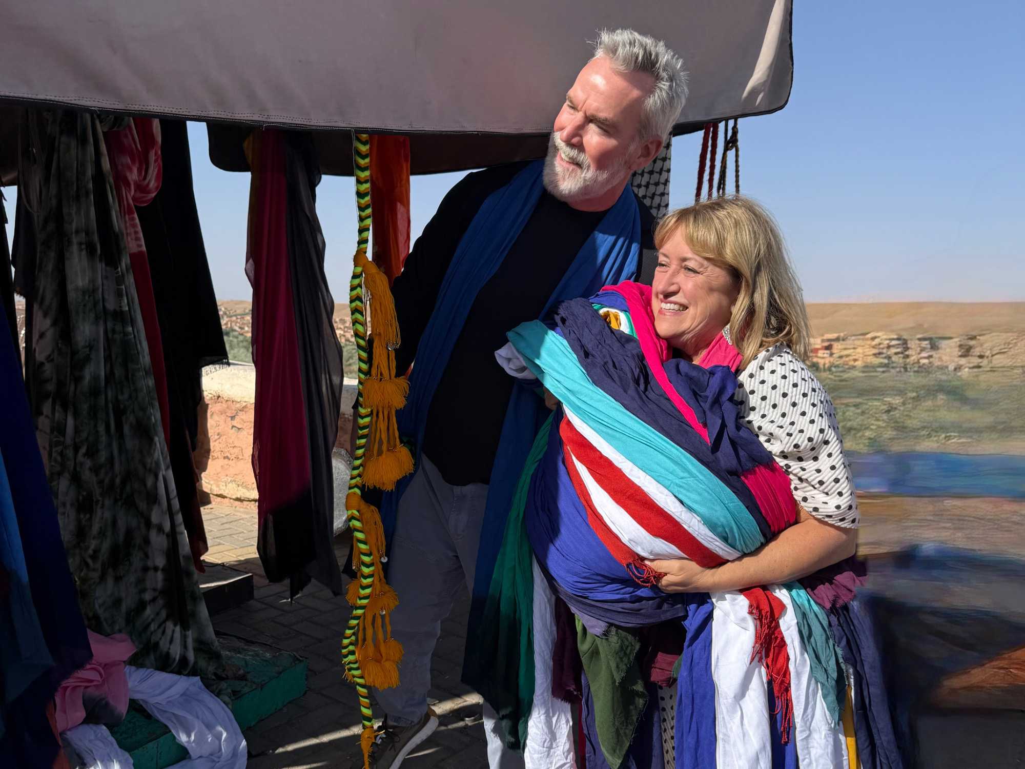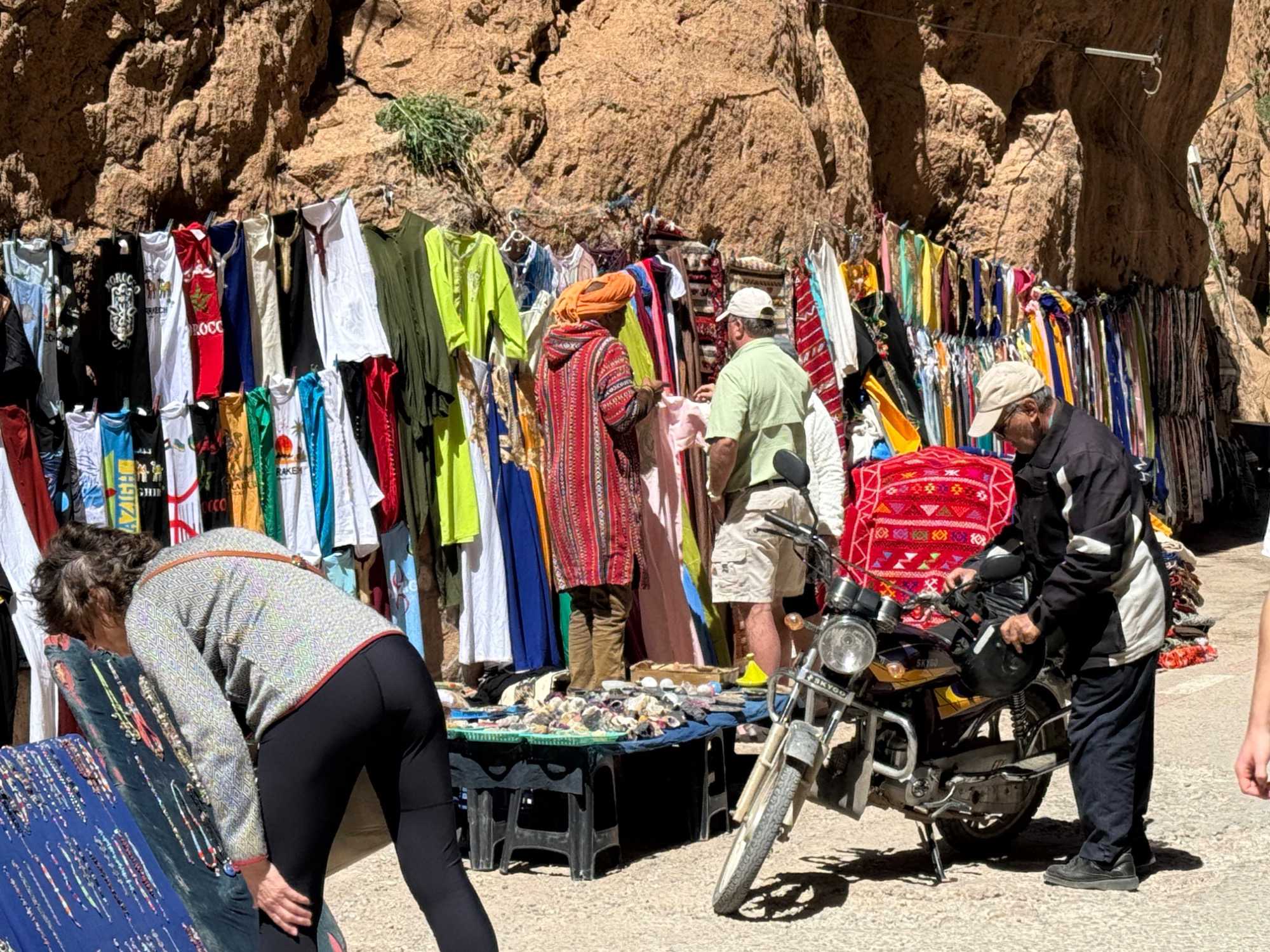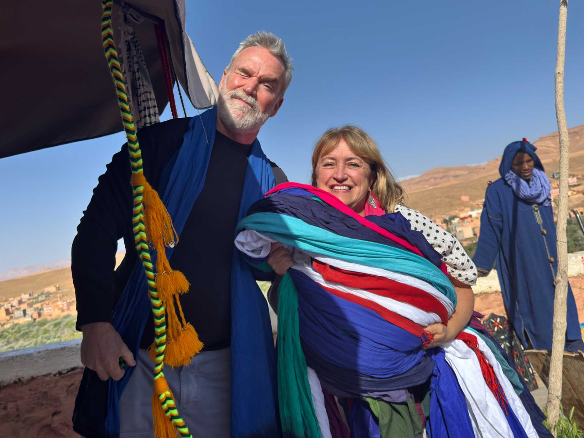 C’est à cet endroit que Patrick me glisse une excellente idée : c’est l’endroit parfait pour acheter des foulards en vue de notre passage dans le désert. Ces foulards nous serviront à nous protéger du soleil, du sable… mais aussi à créer de magnifiques photos dans les dunes.