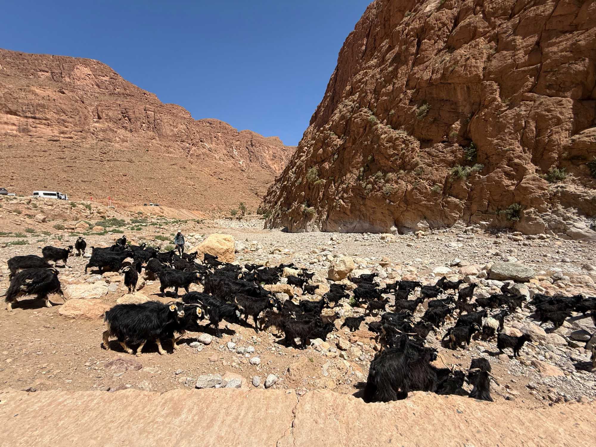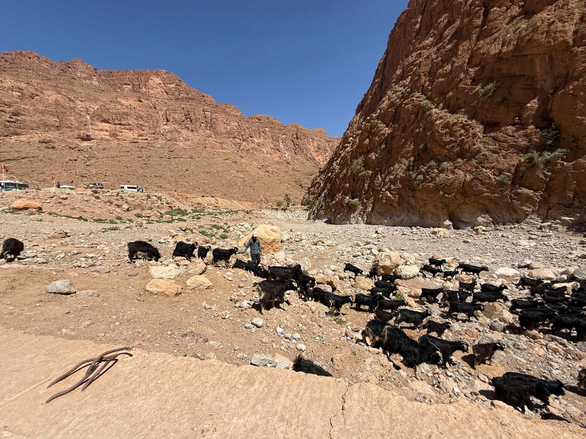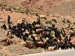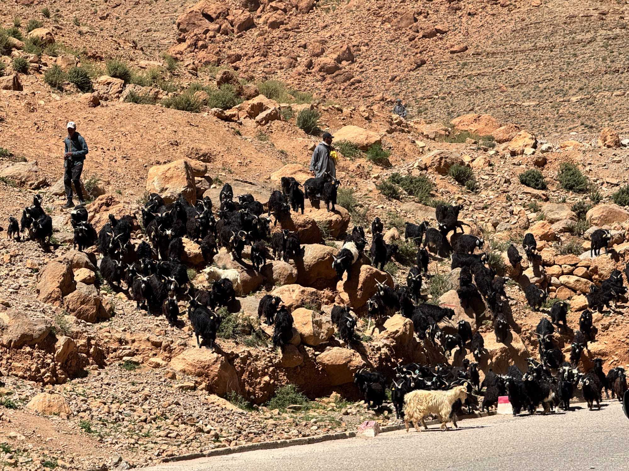 Très vite, les paysages deviennent saisissants : formations rocheuses rouges, oasis verdoyantes, troupeaux de chèvres, villages berbères… un Maroc authentique et vivant.