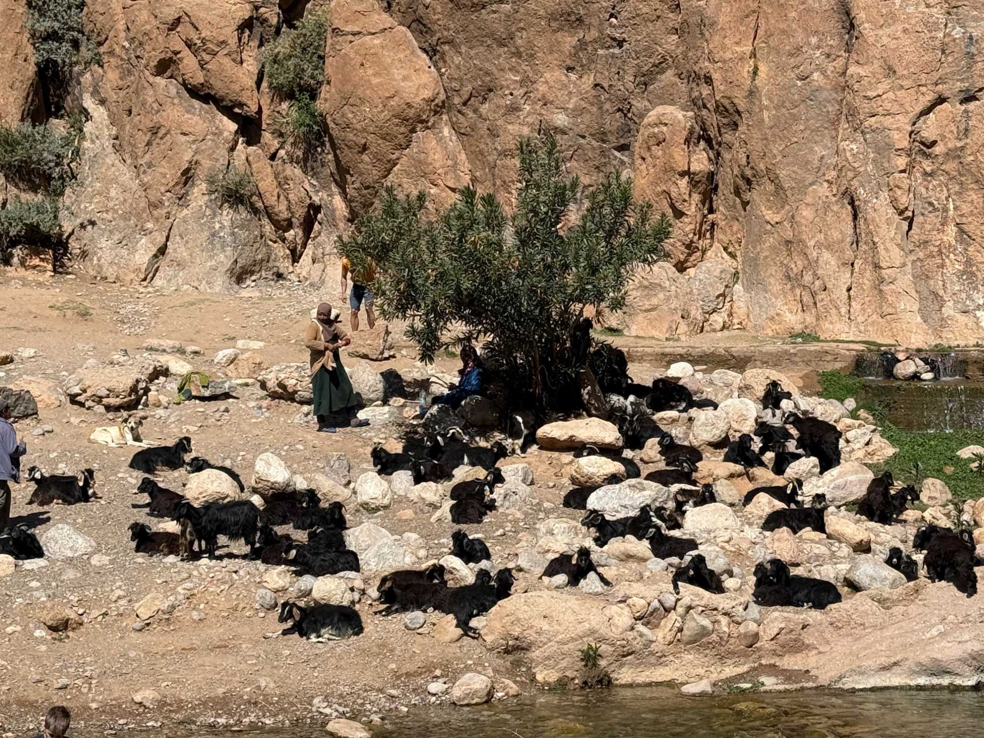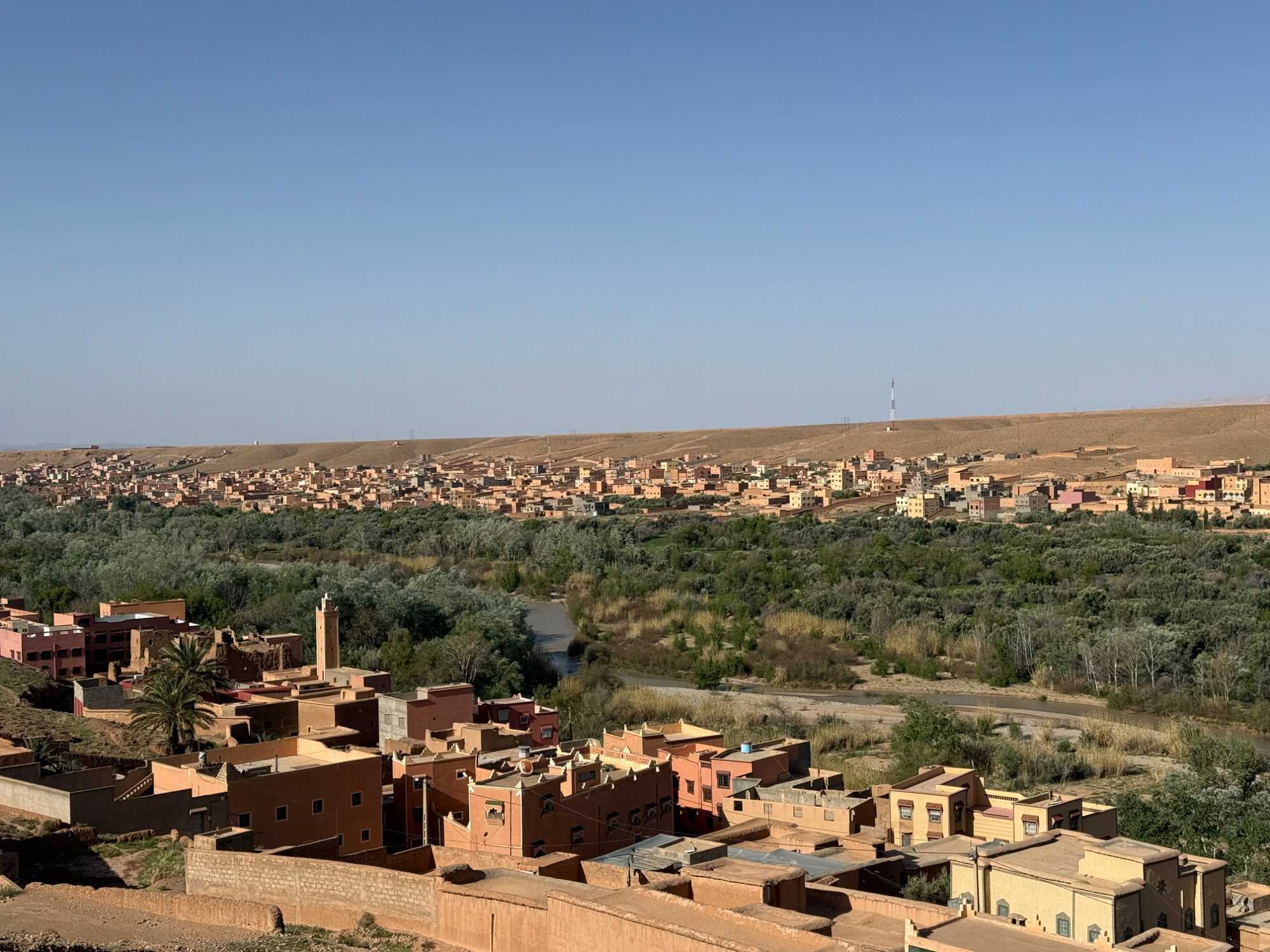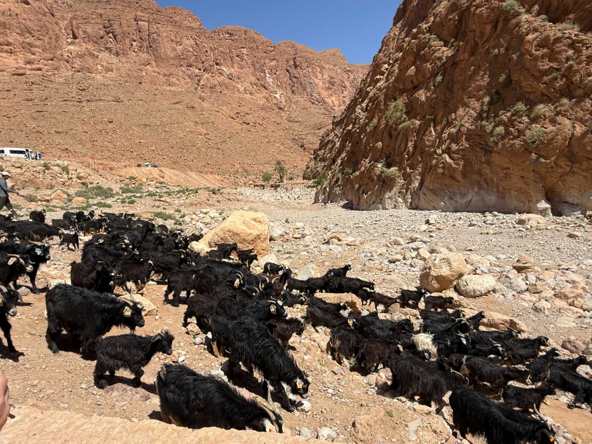 Très vite, les paysages deviennent saisissants : formations rocheuses rouges, oasis verdoyantes, troupeaux de chèvres, villages berbères… un Maroc authentique et vivant.