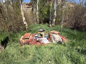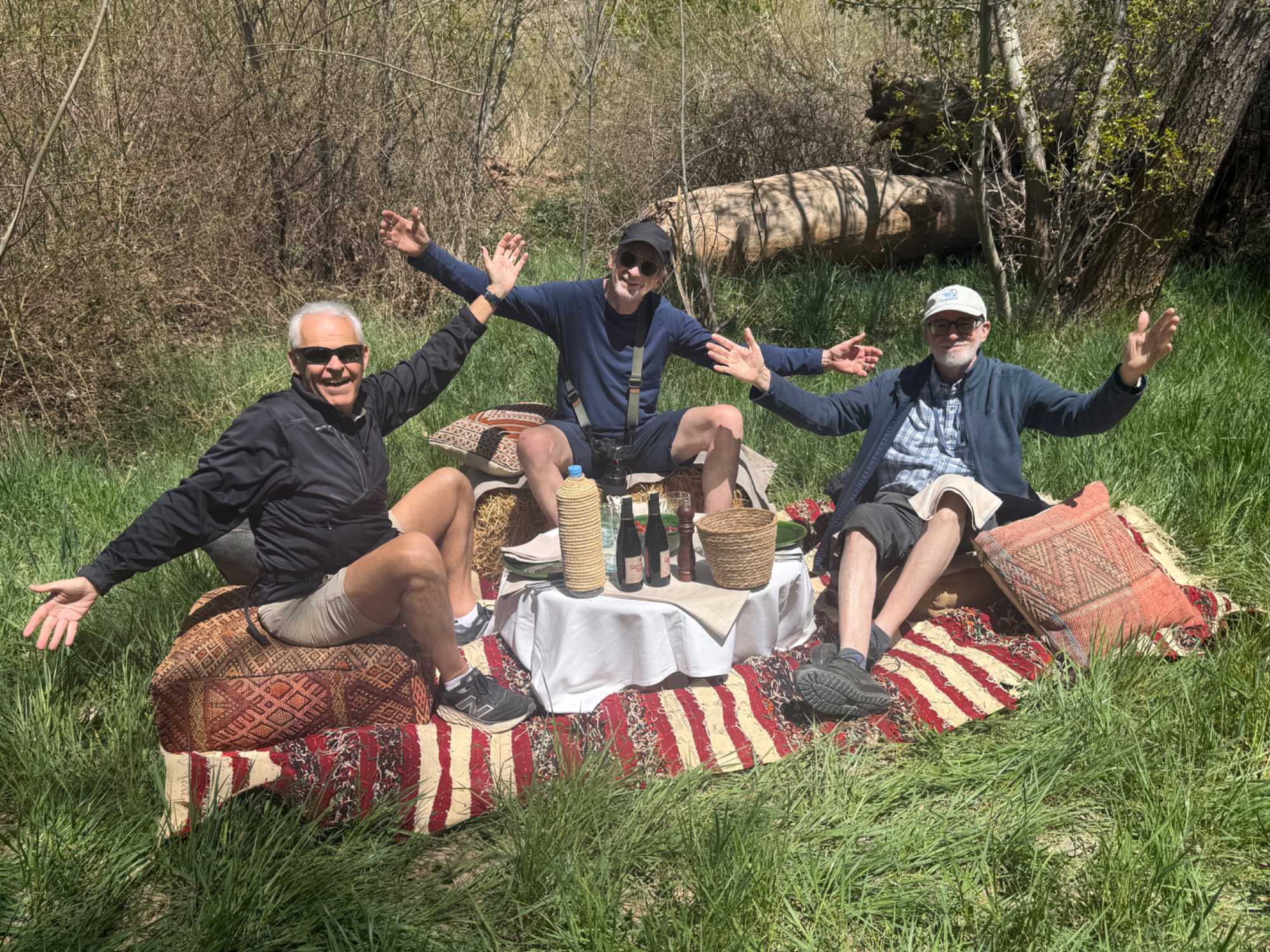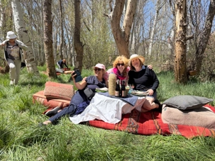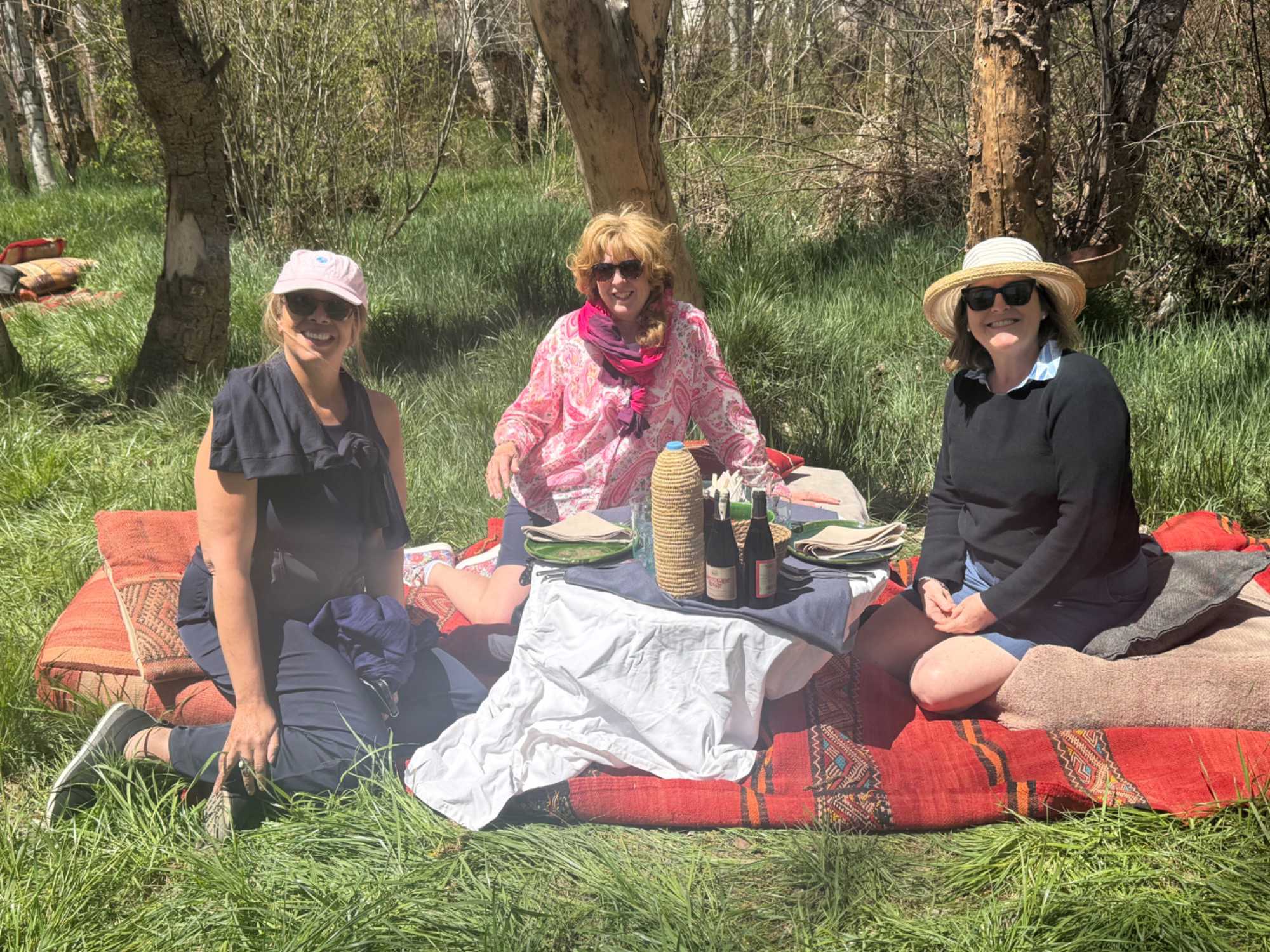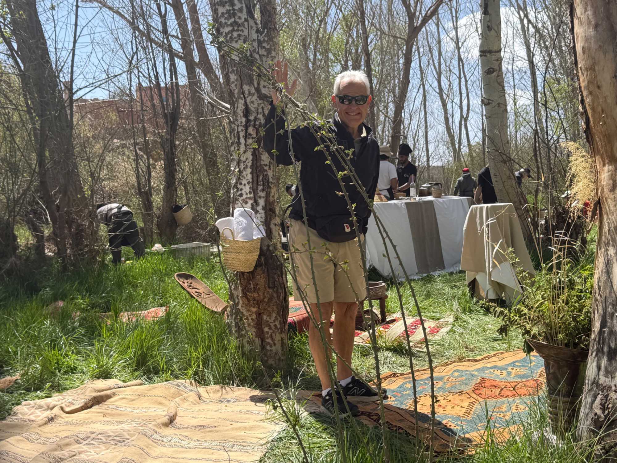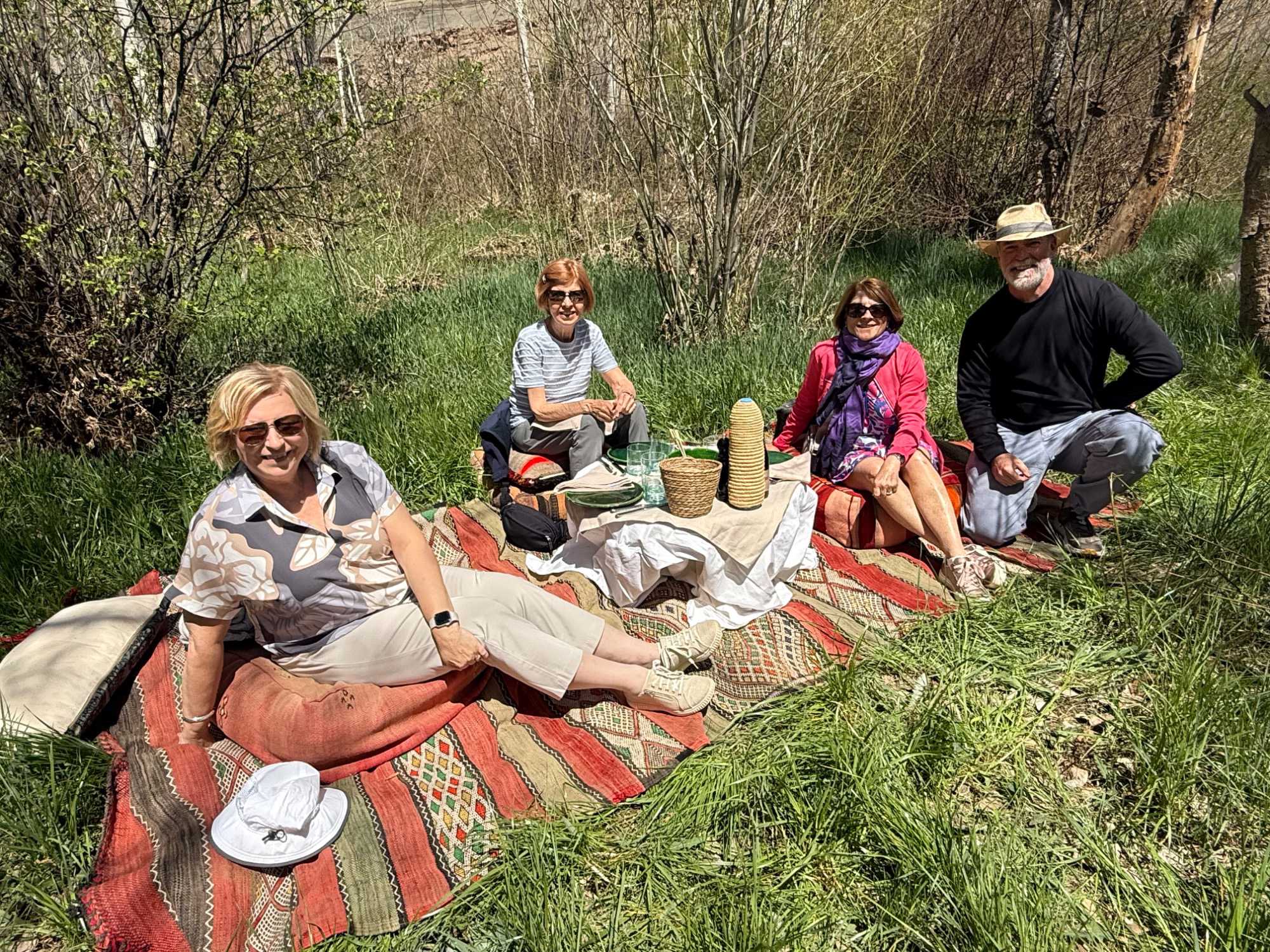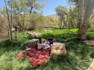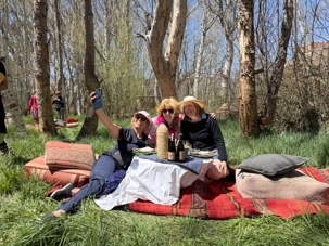Des tables dressées avec soin, des coussins marocains, une ambiance intime et chaleureuse… tout est installé spécialement pour nous, au milieu de la nature.