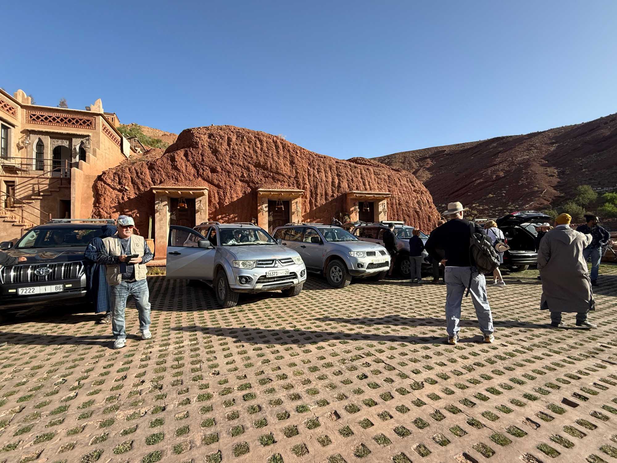 Nous quittons ensuite pour une journée qui s’annonce grandiose. Sept jeeps nous attendent pour partir à la découverte des paysages les plus spectaculaires du Haut Atlas marocain.