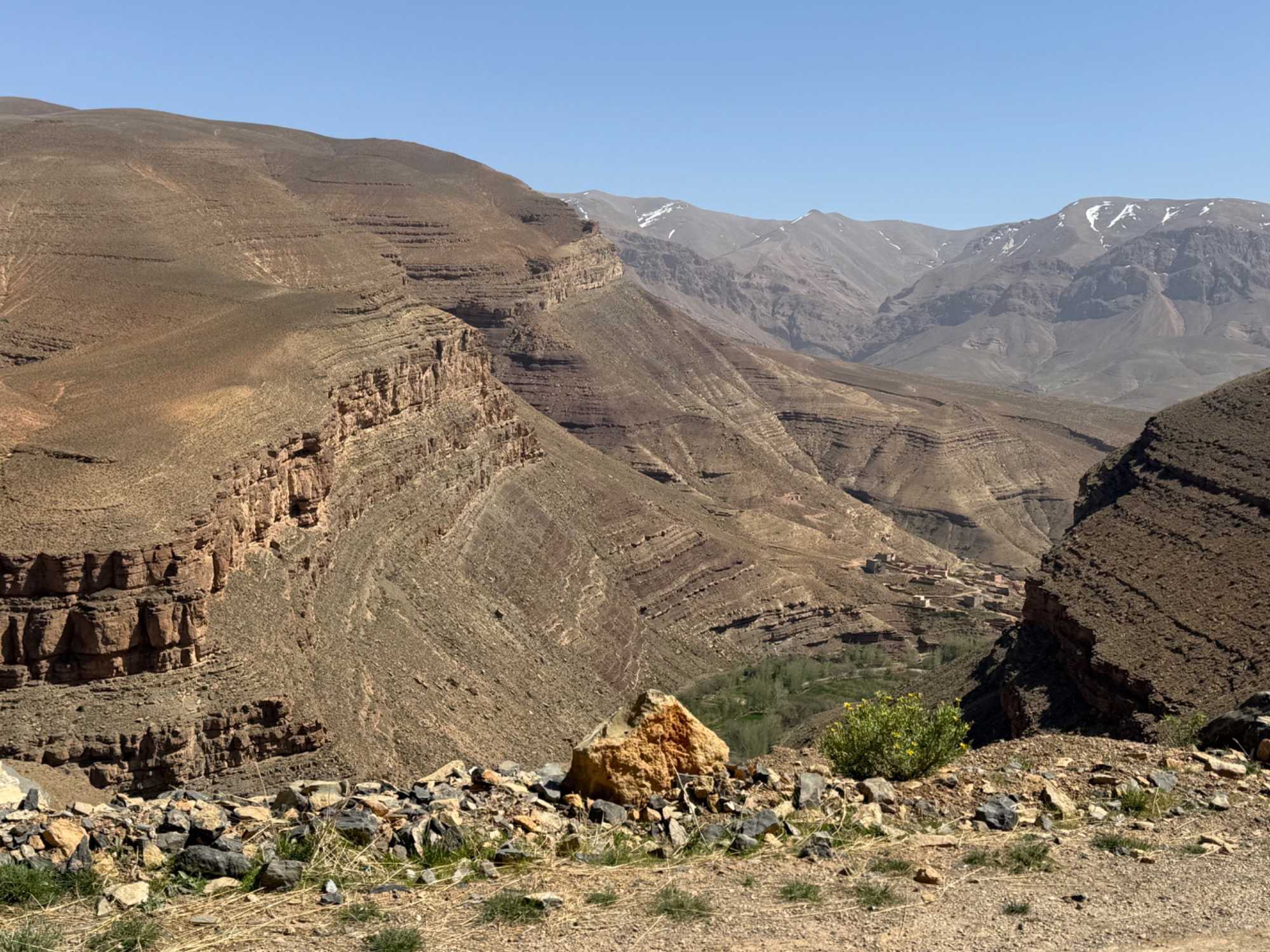 Après une vingtaine de minutes de route seulement, nous faisons un premier arrêt panoramique avec une vue magnifique sur un petit village berbère. Un décor simple, authentique, déjà très inspirant.