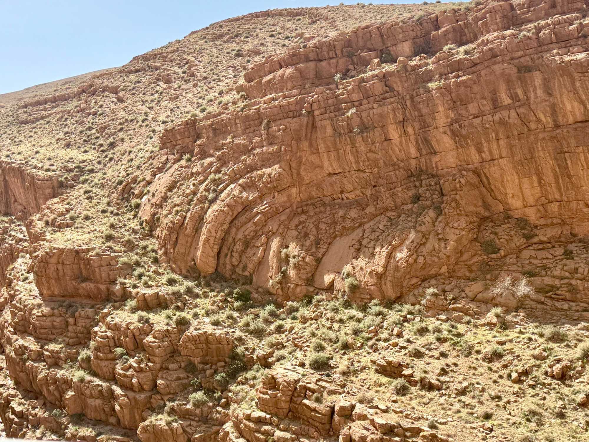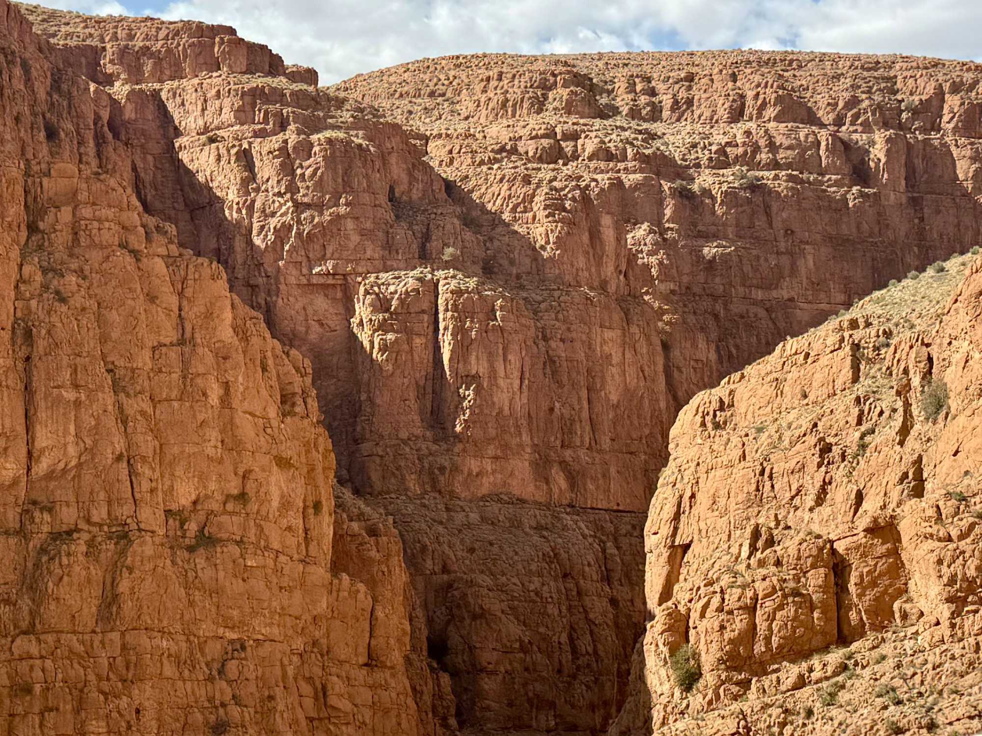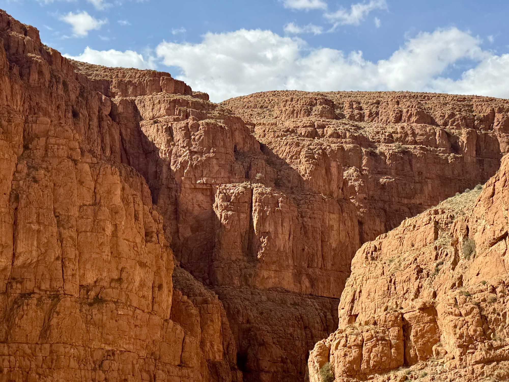 Ici, les falaises de calcaire s’élèvent de façon spectaculaire jusqu’à 150 à 300 mètres de hauteur, formant un passage étroit parfois large de seulement quelques mètres. Creusées au fil des millénaires par la rivière Todra, ces gorges témoignent de la puissance de l’érosion naturelle.