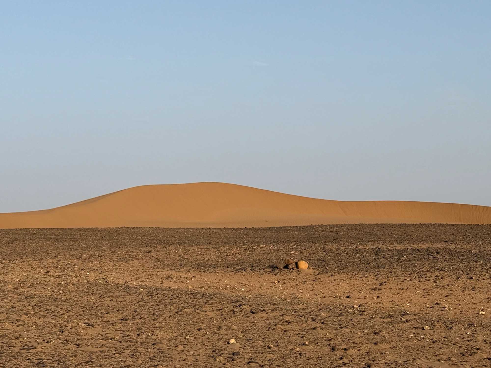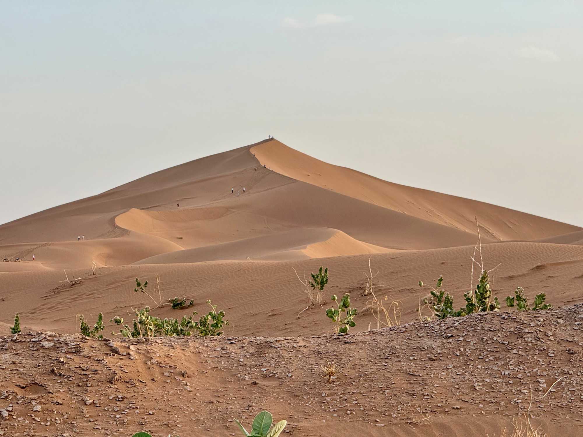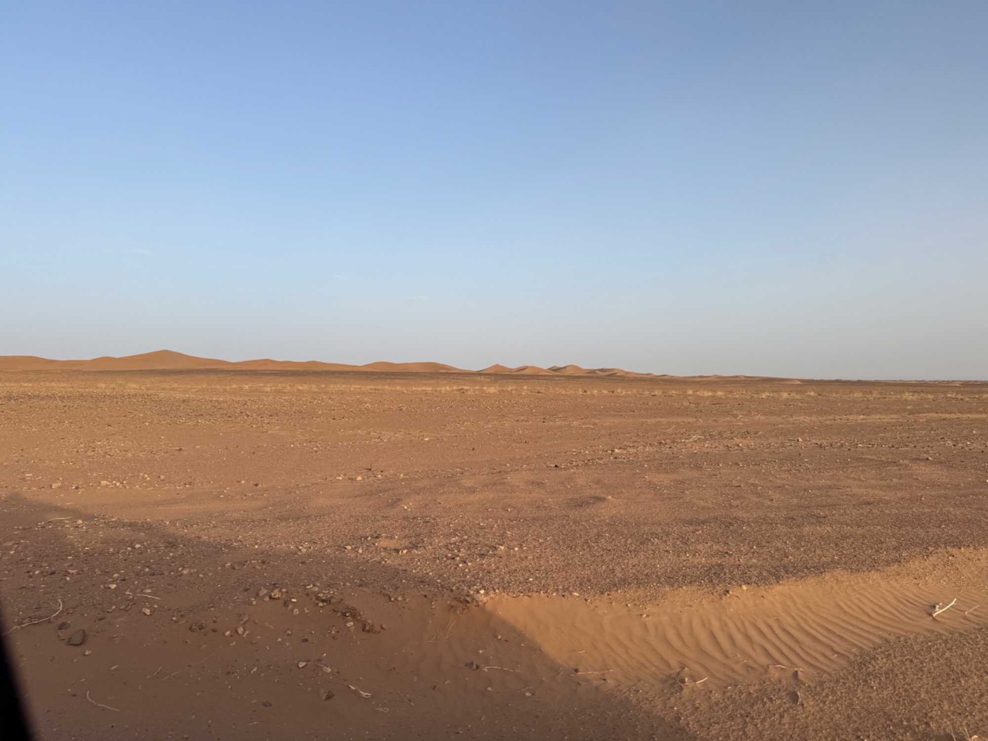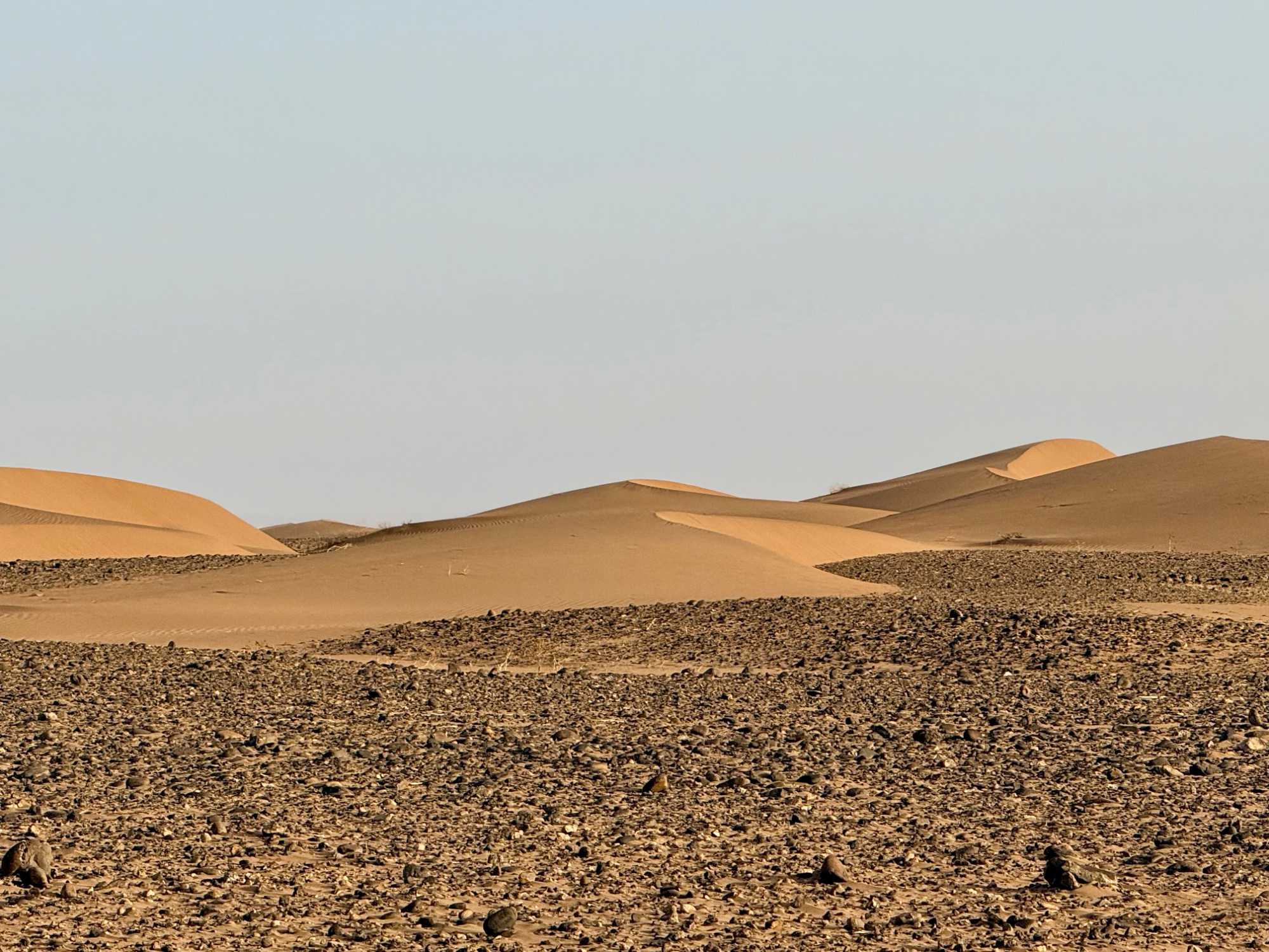C’est ici que débute l’immensité. Le Sahara, le plus grand désert chaud du monde, s’étend sur près de 9 millions de kilomètres carrés à travers plusieurs pays. Dans cette région du Maroc, les dunes d’Erg Chegaga comptent parmi les plus vastes et les plus sauvages : elles s’étirent sur environ 40 kilomètres de long et peuvent atteindre jusqu’à 300 mètres de hauteur, offrant une mer de sable à perte de vue.