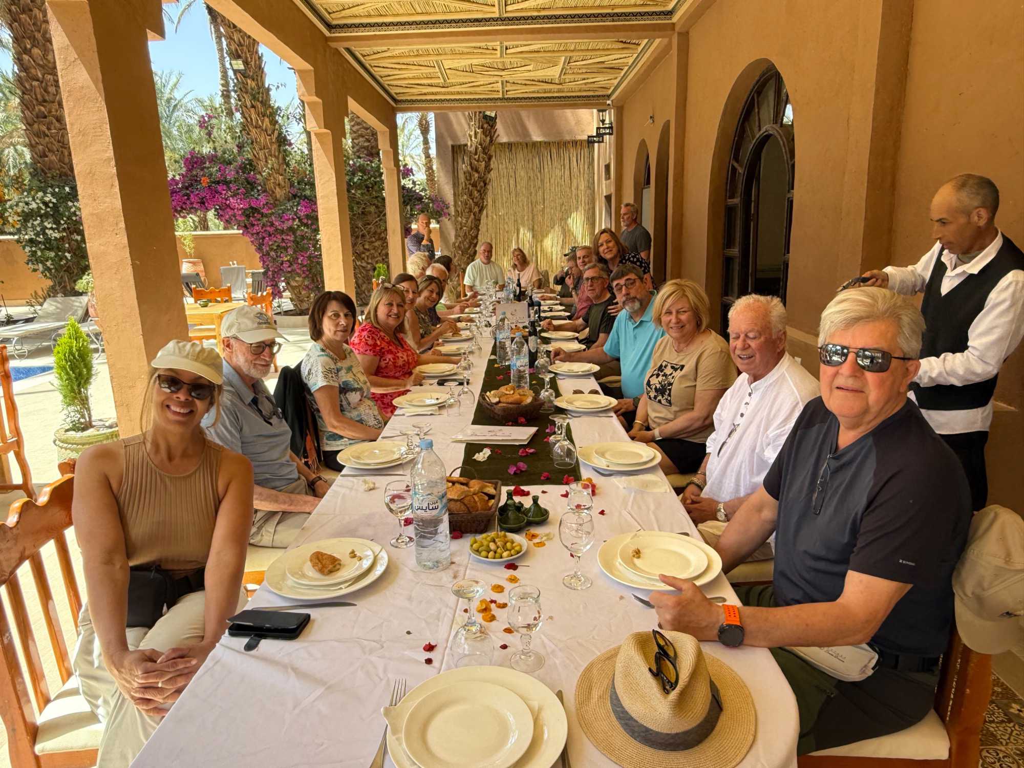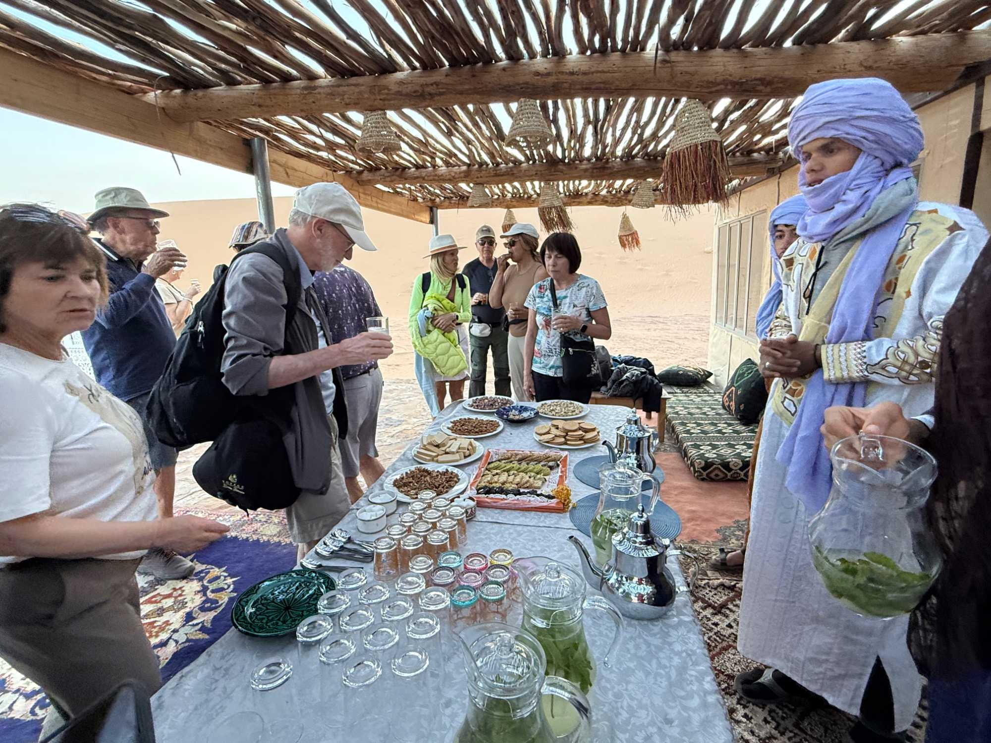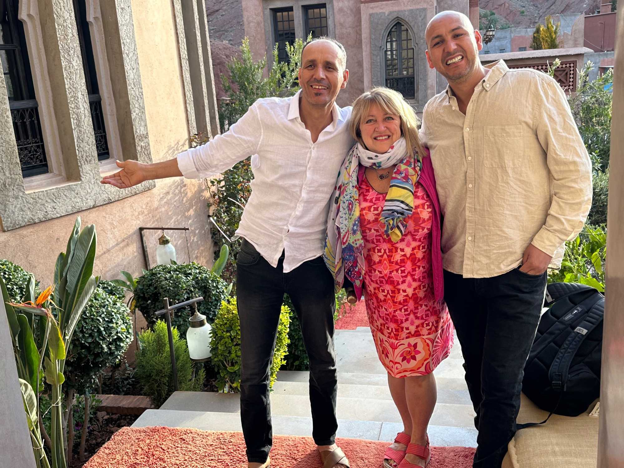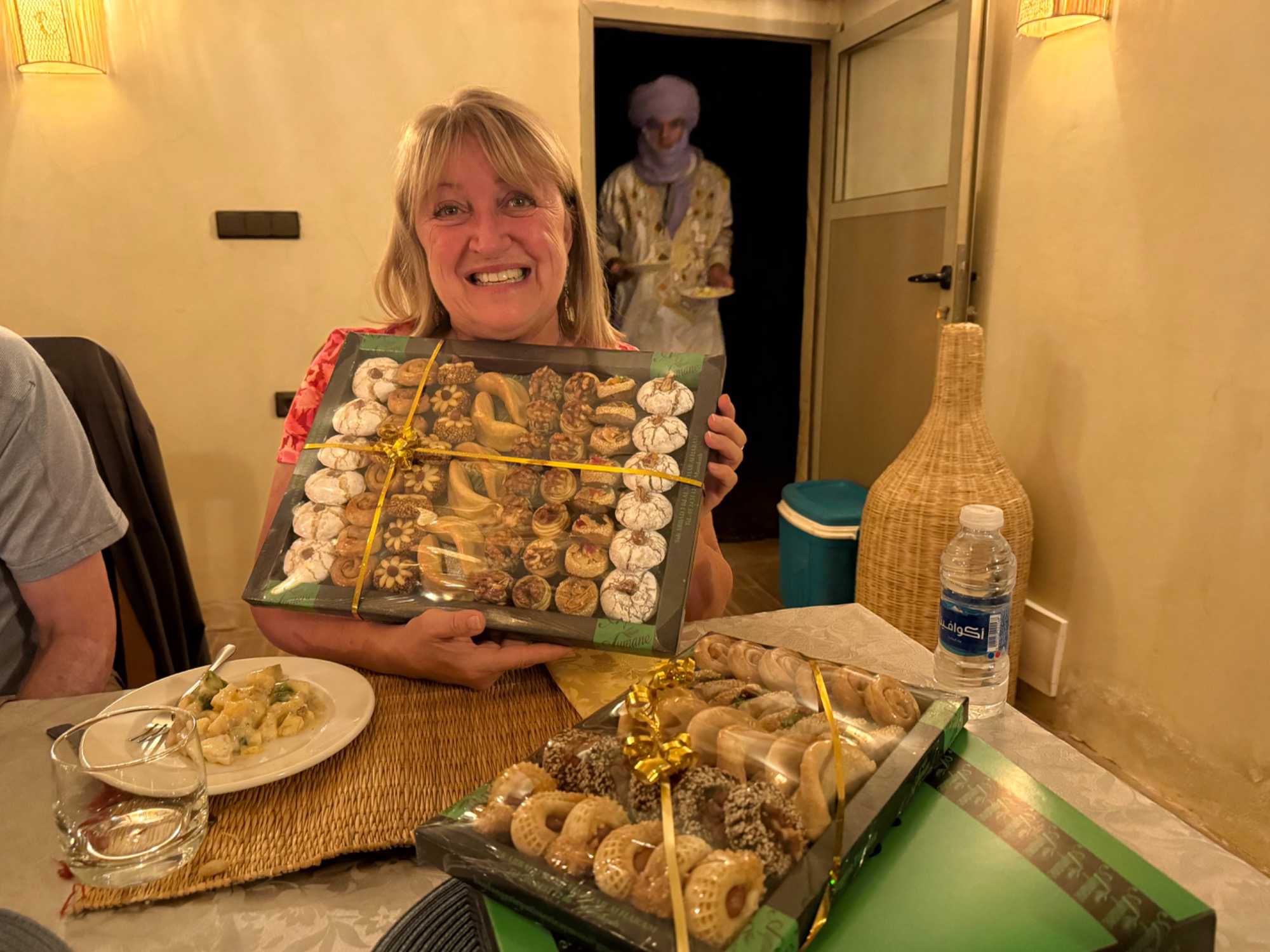 Et comme une douce attention, nous partageons de délicieuses pâtisseries marocaines, offertes par Mohamed, un partenaire local avec qui je collabore pour créer de magnifiques voyages au Maroc. Ces expériences sont accompagnées par notre Québécoise devenue presque Marocaine, Manon, qui s’est spécialisée dans cette destination. Elle accompagne nos groupes avec passion et professionnalisme, forte de plus de 30 voyages à son actif, tous opérés en collaboration avec Mohamed. Ensemble, ils nous permettent de découvrir le Maroc sous toutes ses facettes, que ce soit à travers de longs séjours à Agadir ou des circuits riches et immersifs à travers le pays.