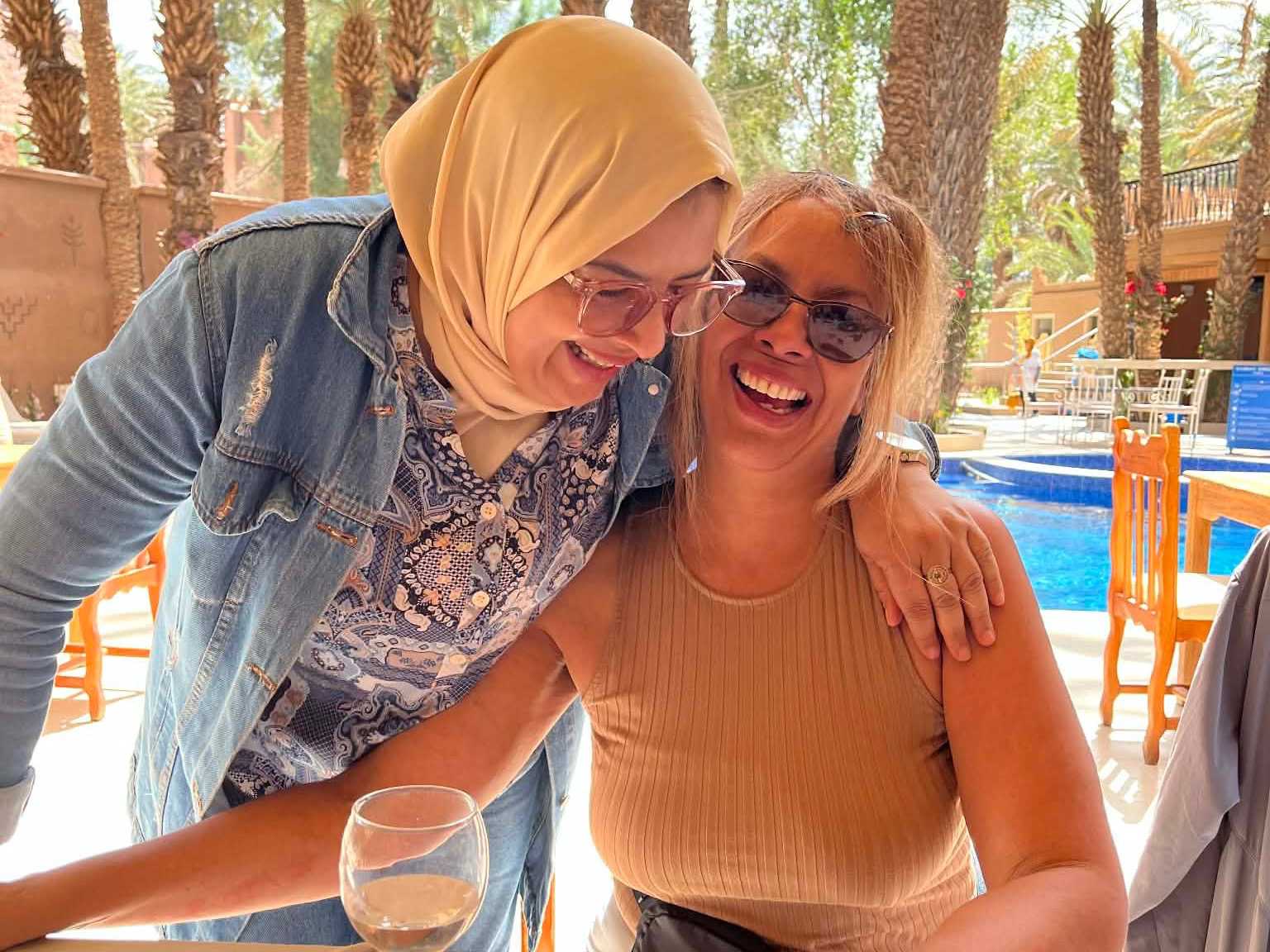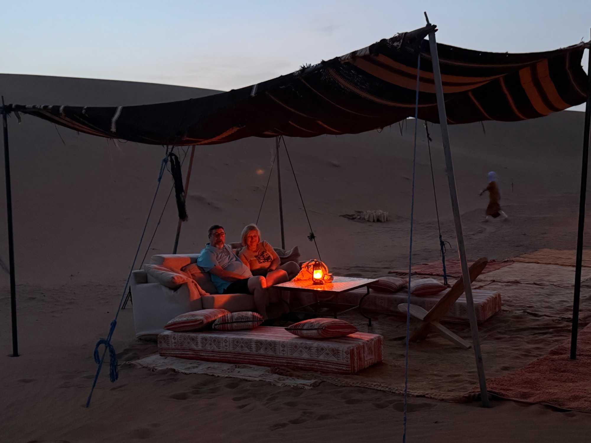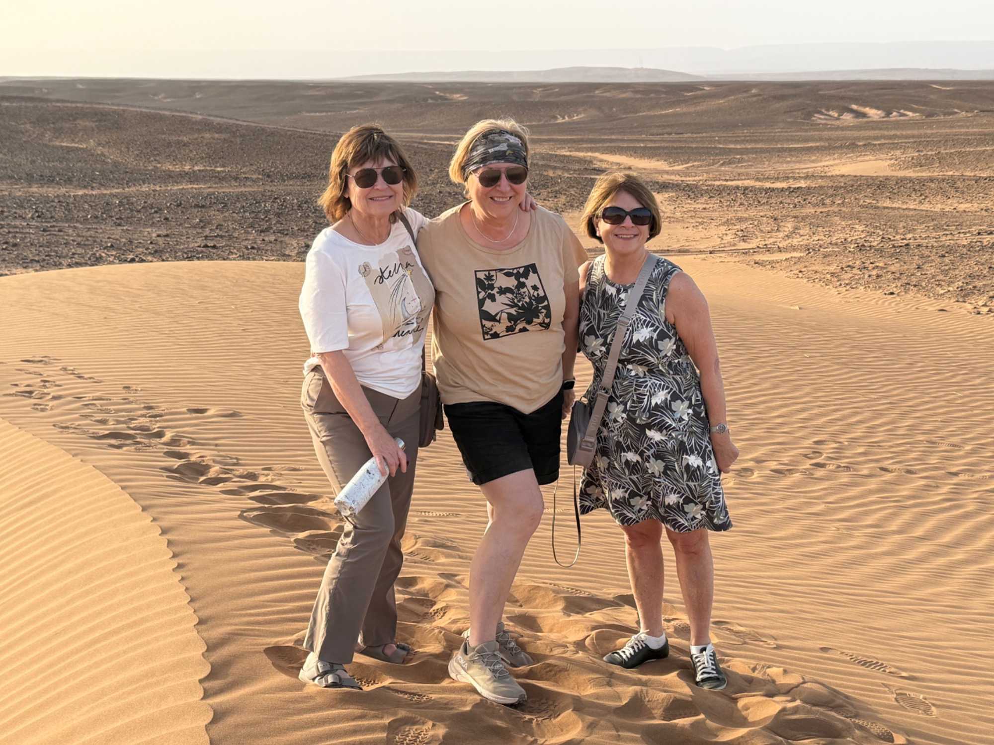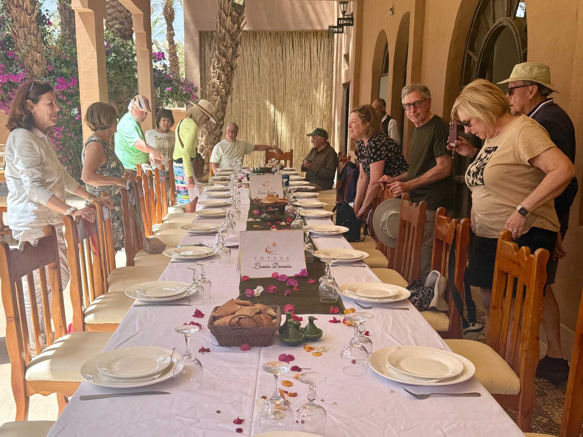 Et comme une douce attention, nous partageons de délicieuses pâtisseries marocaines, offertes par Mohamed, un partenaire local avec qui je collabore pour créer de magnifiques voyages au Maroc. Ces expériences sont accompagnées par notre Québécoise devenue presque Marocaine, Manon, qui s’est spécialisée dans cette destination. Elle accompagne nos groupes avec passion et professionnalisme, forte de plus de 30 voyages à son actif, tous opérés en collaboration avec Mohamed. Ensemble, ils nous permettent de découvrir le Maroc sous toutes ses facettes, que ce soit à travers de longs séjours à Agadir ou des circuits riches et immersifs à travers le pays.