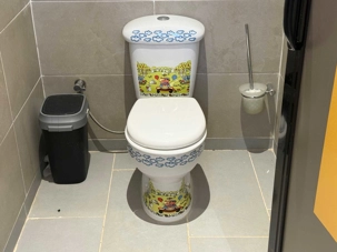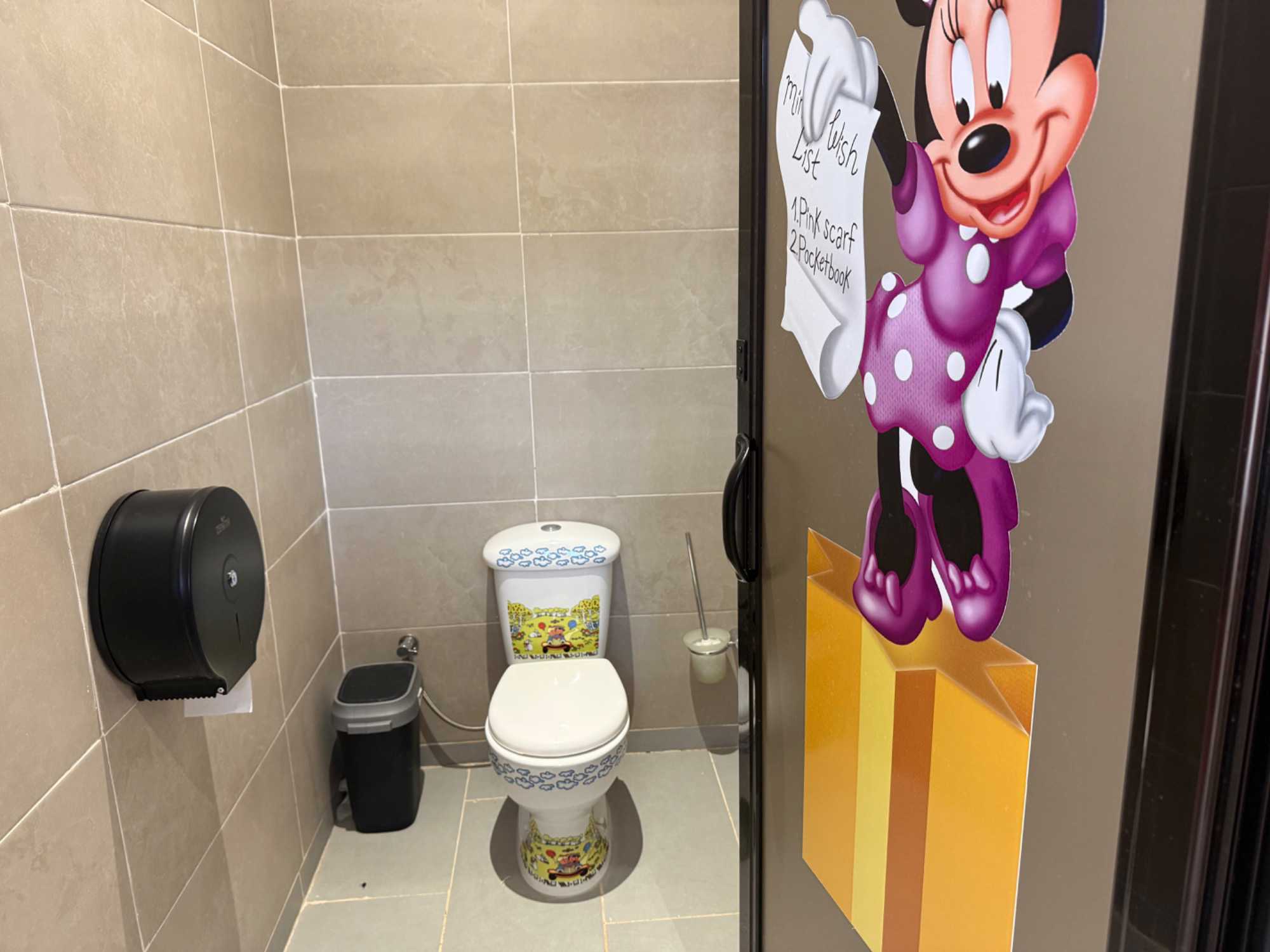 Nous faisons un arrêt dans une halte routière au milieu de nulle part, et pourtant… tout y est beau, propre, soigné. Un contraste qui ne laisse personne indifférent. Même les petits détails, comme une toilette pour enfants décorée avec douceur, viennent nous arracher un sourire.