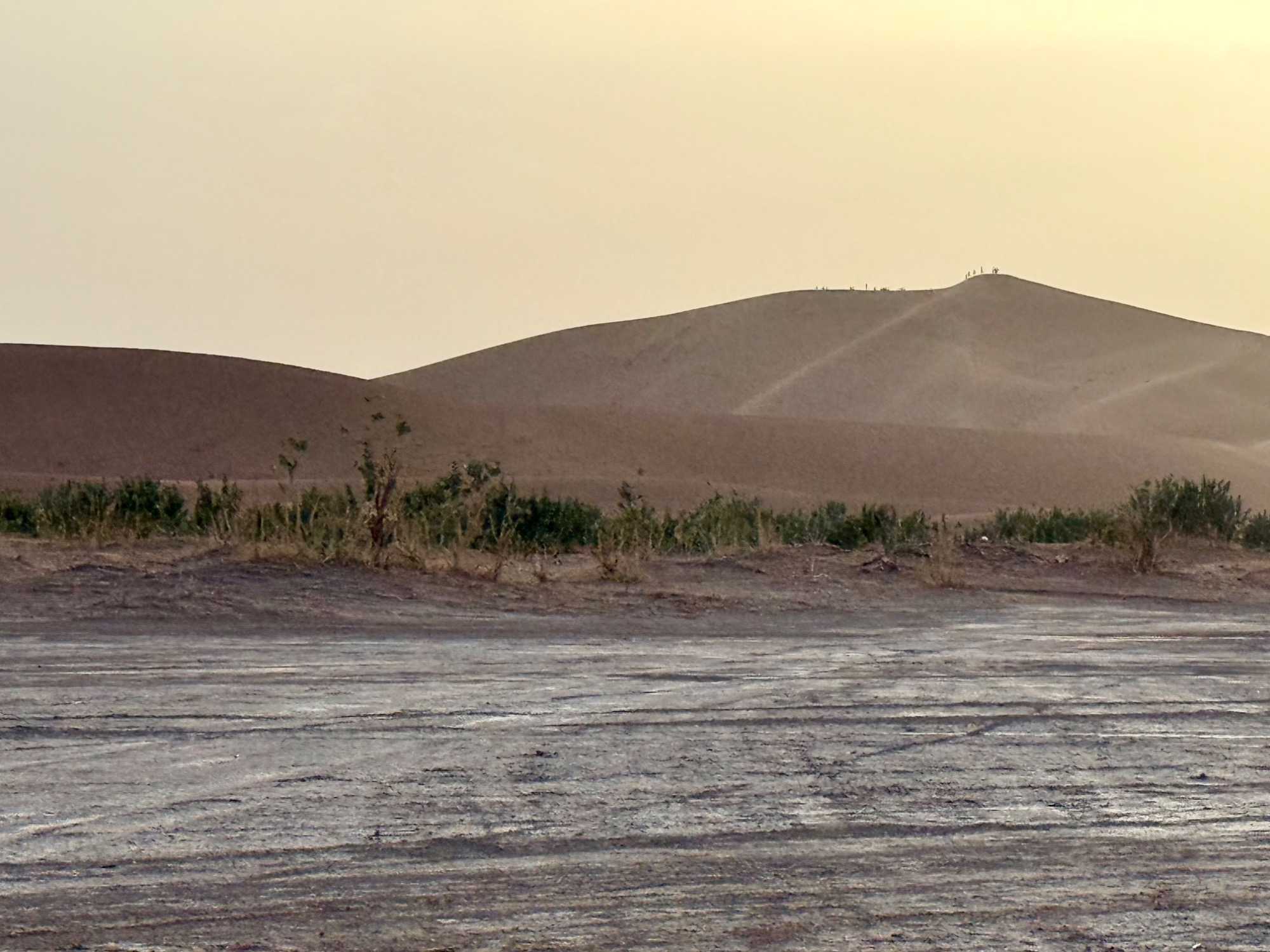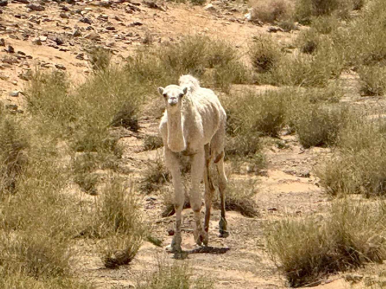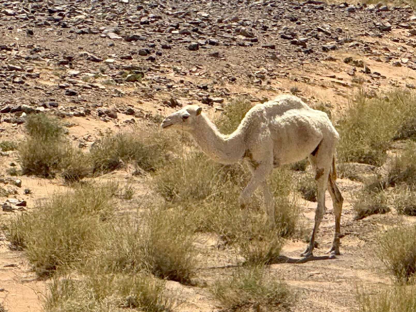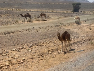 Au fil de la route, nous apprenons à reconnaître les oasis grâce aux palmiers dattiers qui les annoncent. Nous en apercevons quelques-unes, ainsi que des dromadaires, silhouettes tranquilles dans ce paysage désertique.