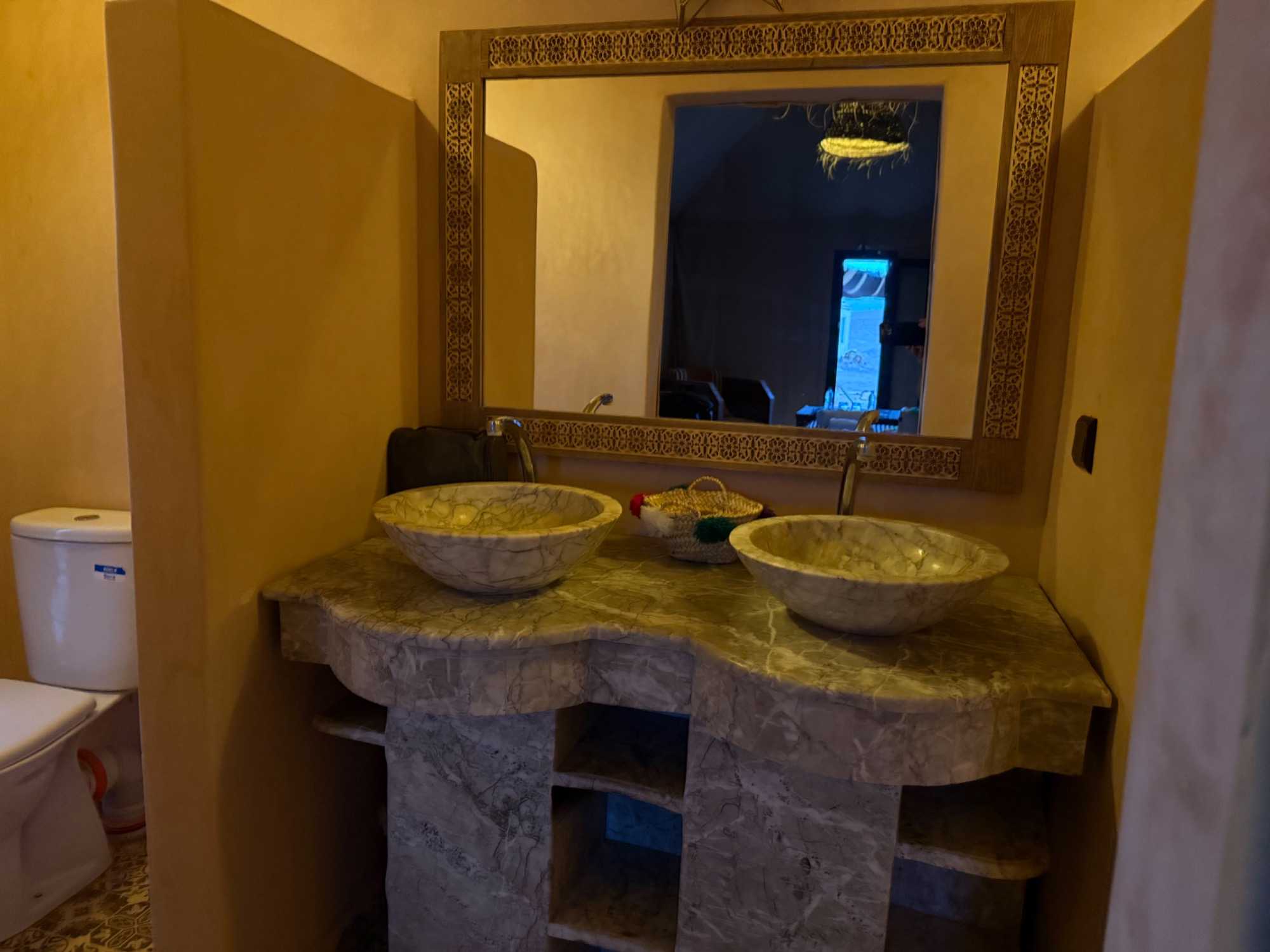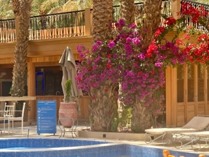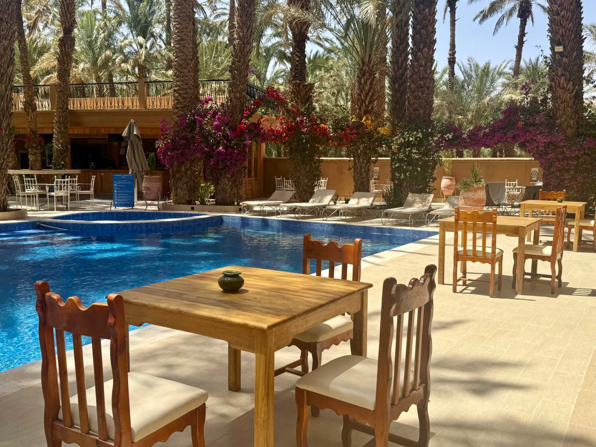 Nous nous arrêtons ensuite pour le dîner dans un endroit charmant, bordé de bougainvilliers, où une table nous attend près d’une piscine. Encore une fois, la générosité de la cuisine marocaine est au rendez-vous. Des plats savoureux, partagés dans un décor apaisant.