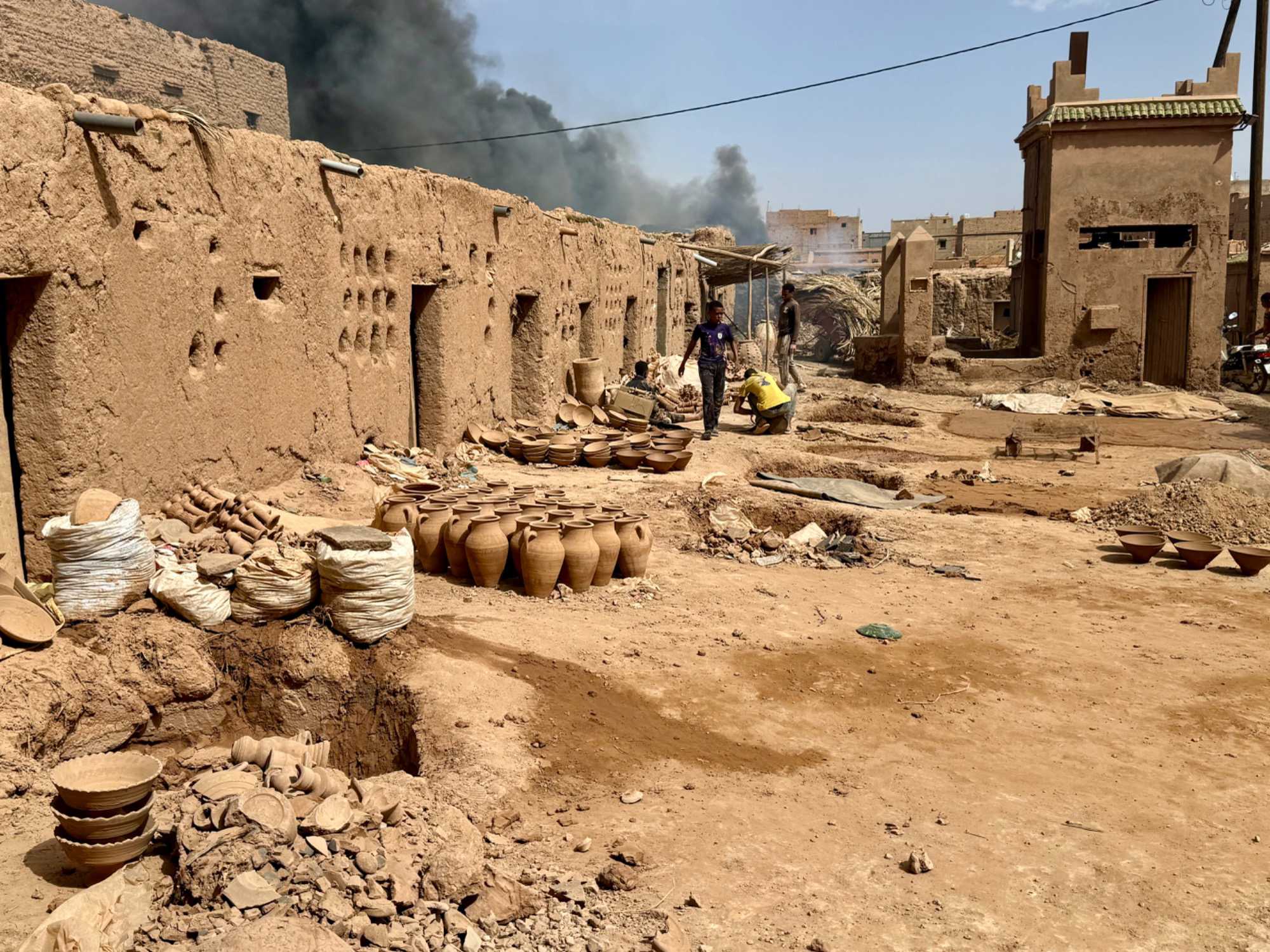 Autour de nous, le désert n’est pas seul. Il est bordé par des chaînes de montagnes anciennes, dont l’Anti-Atlas, plus discret mais profondément majestueux, avec des sommets atteignant près de 2 500 mètres d’altitude. Plus loin, le Haut Atlas, avec ses cimes dépassant les 4 000 mètres, rappelle la puissance géologique qui façonne ce pays depuis des millénaires.