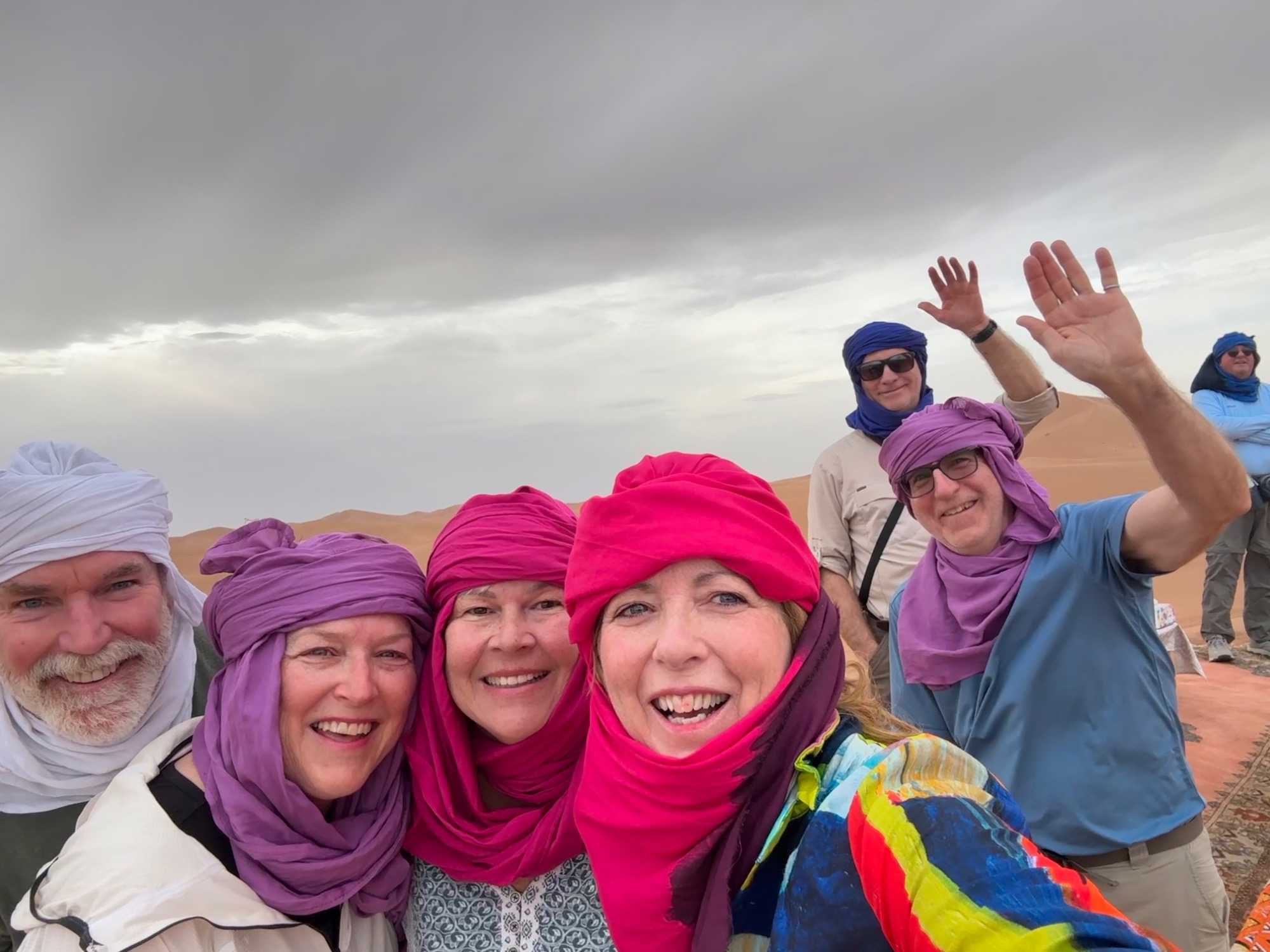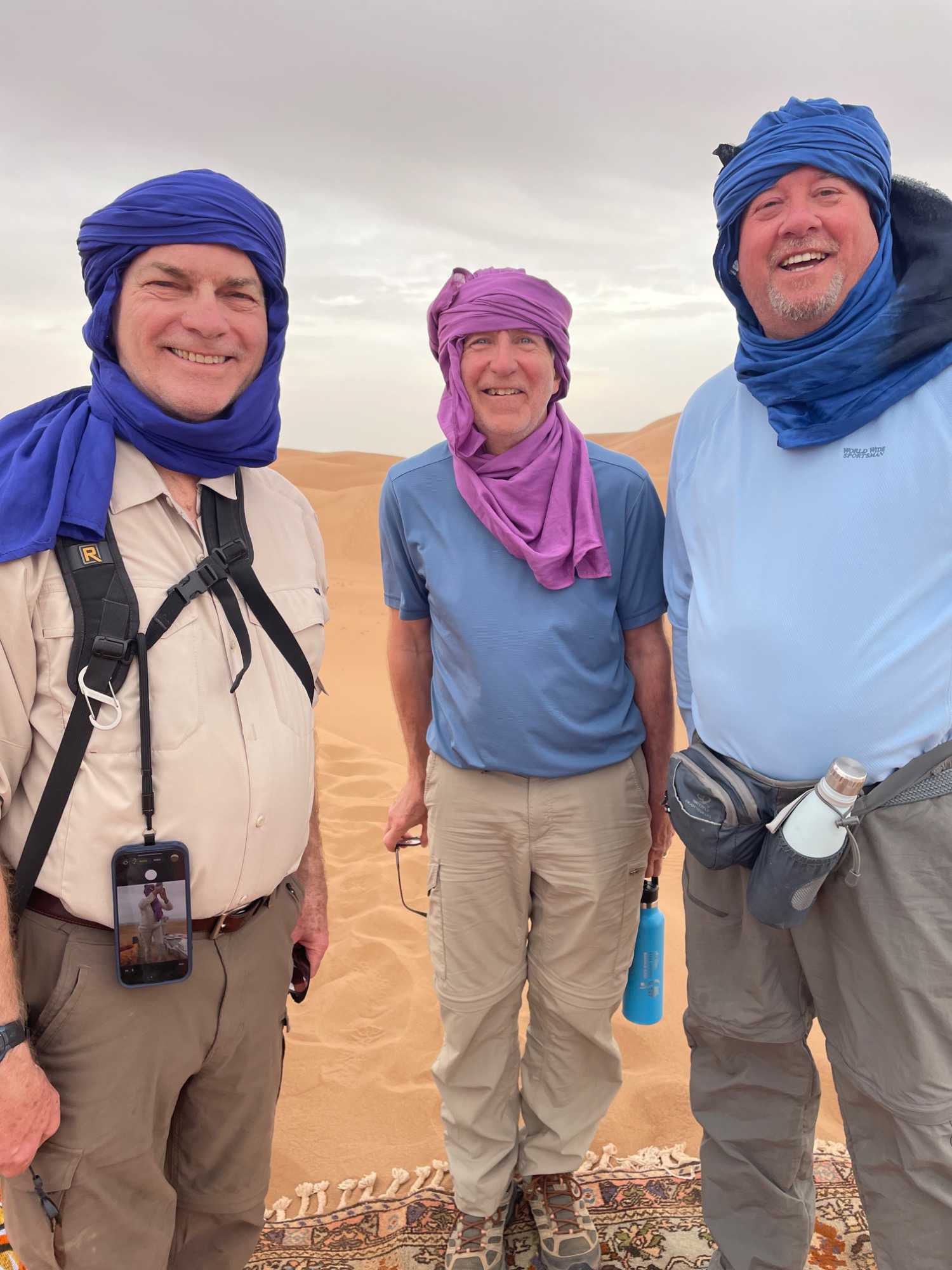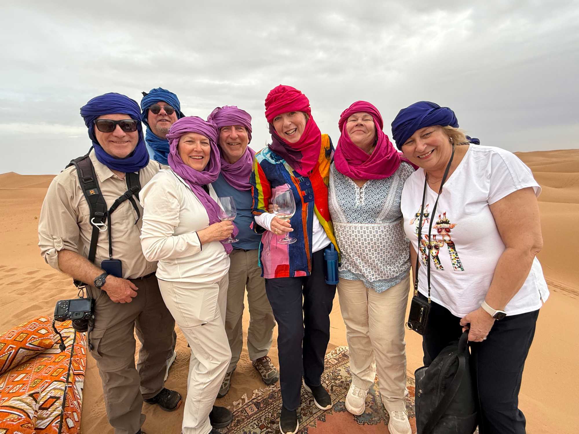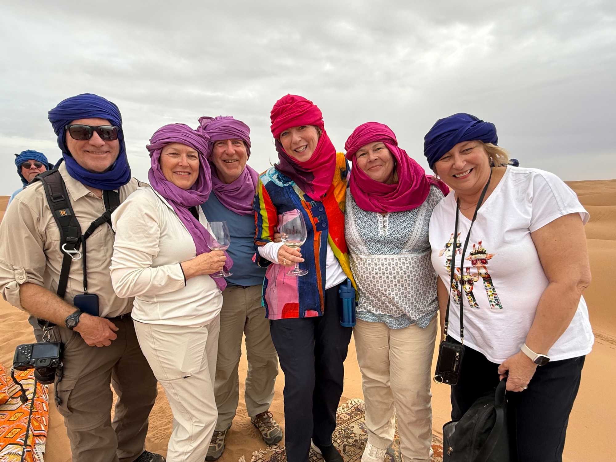 Les foulards font leur apparition, et avec eux, une belle dose de complicité. Marcel devient rapidement l’expert du groupe, aidant chacun à nouer son foulard avec soin. Les rires fusent, les photos aussi.