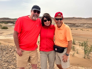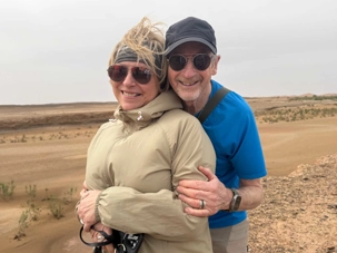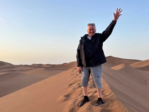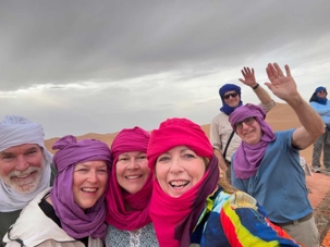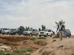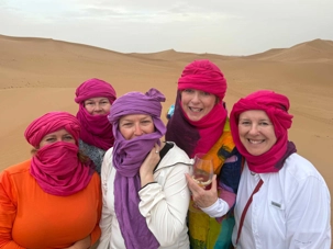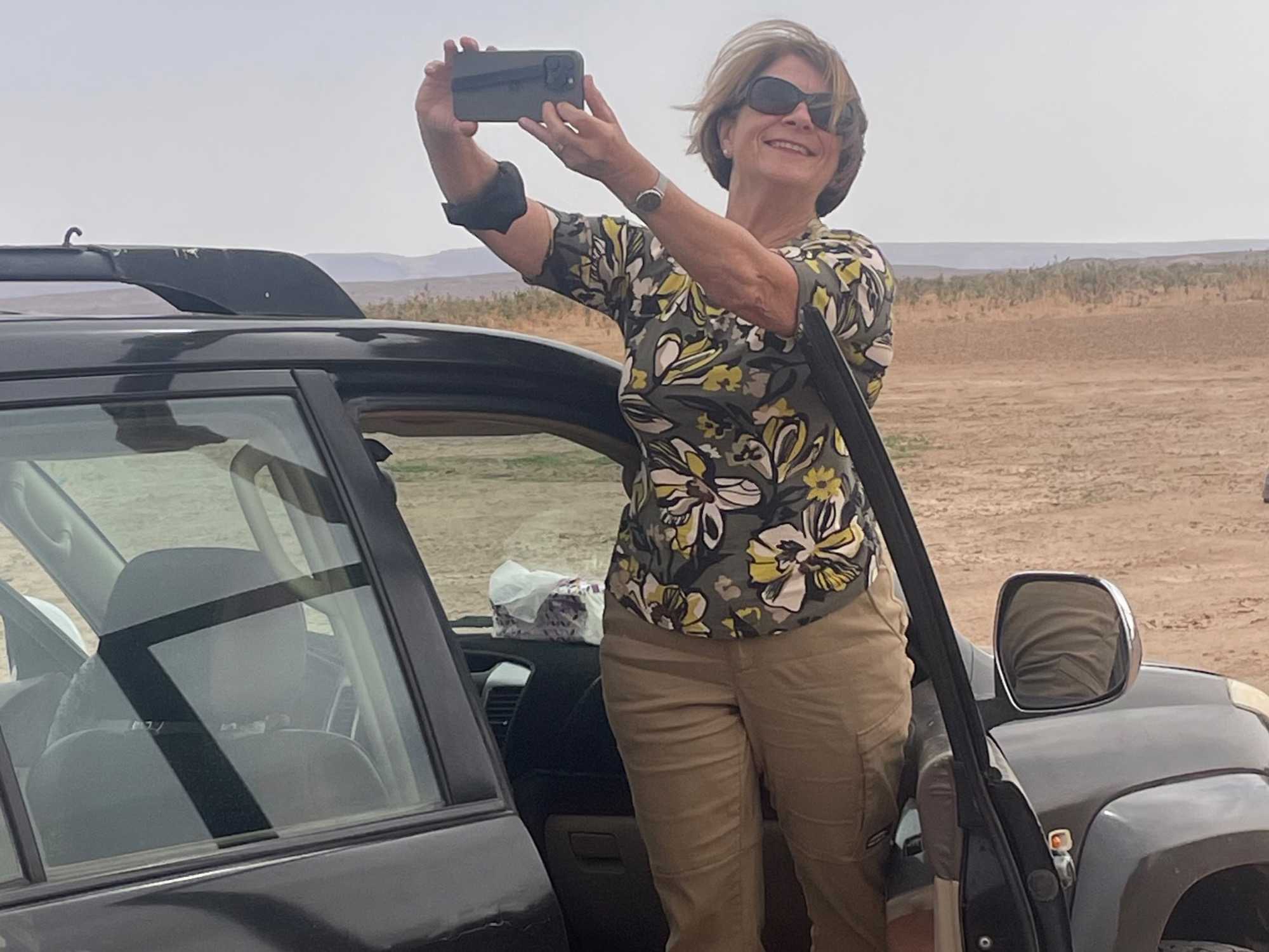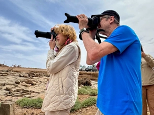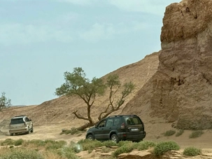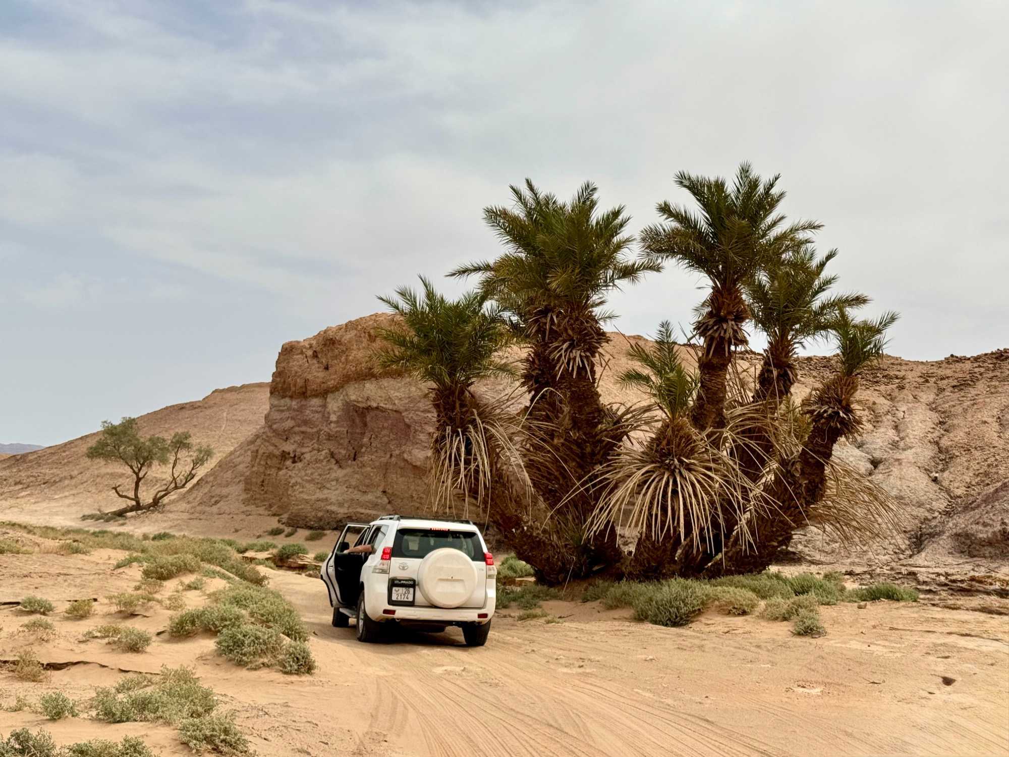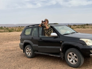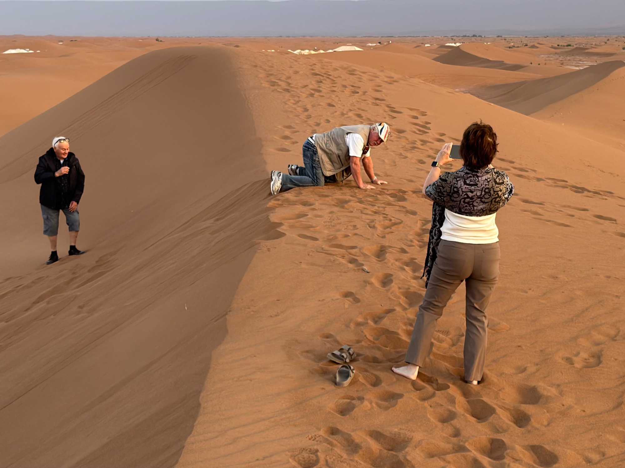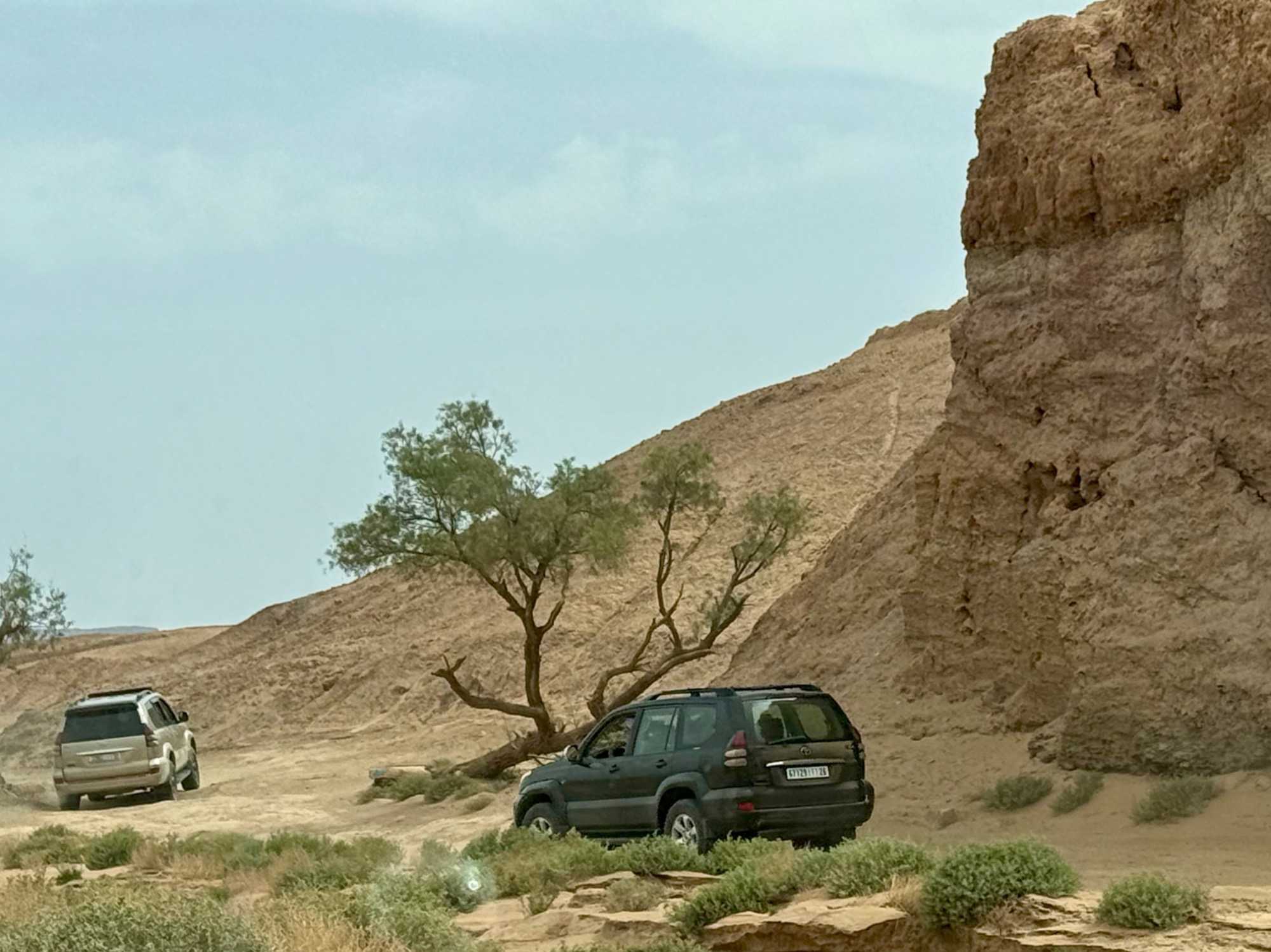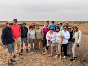 Nous repartons en Jeep pour explorer les environs, à la découverte du désert et de ses secrets. Très vite, les arrêts se transforment en moments de pur plaisir. Les photos s’enchaînent, les rires aussi. Ce que j’appelle le « moment couleurs » : chacun s’exprime, s’amuse, ose. Le désert devient un terrain de jeu où la spontanéité du groupe s’exprime pleinement.