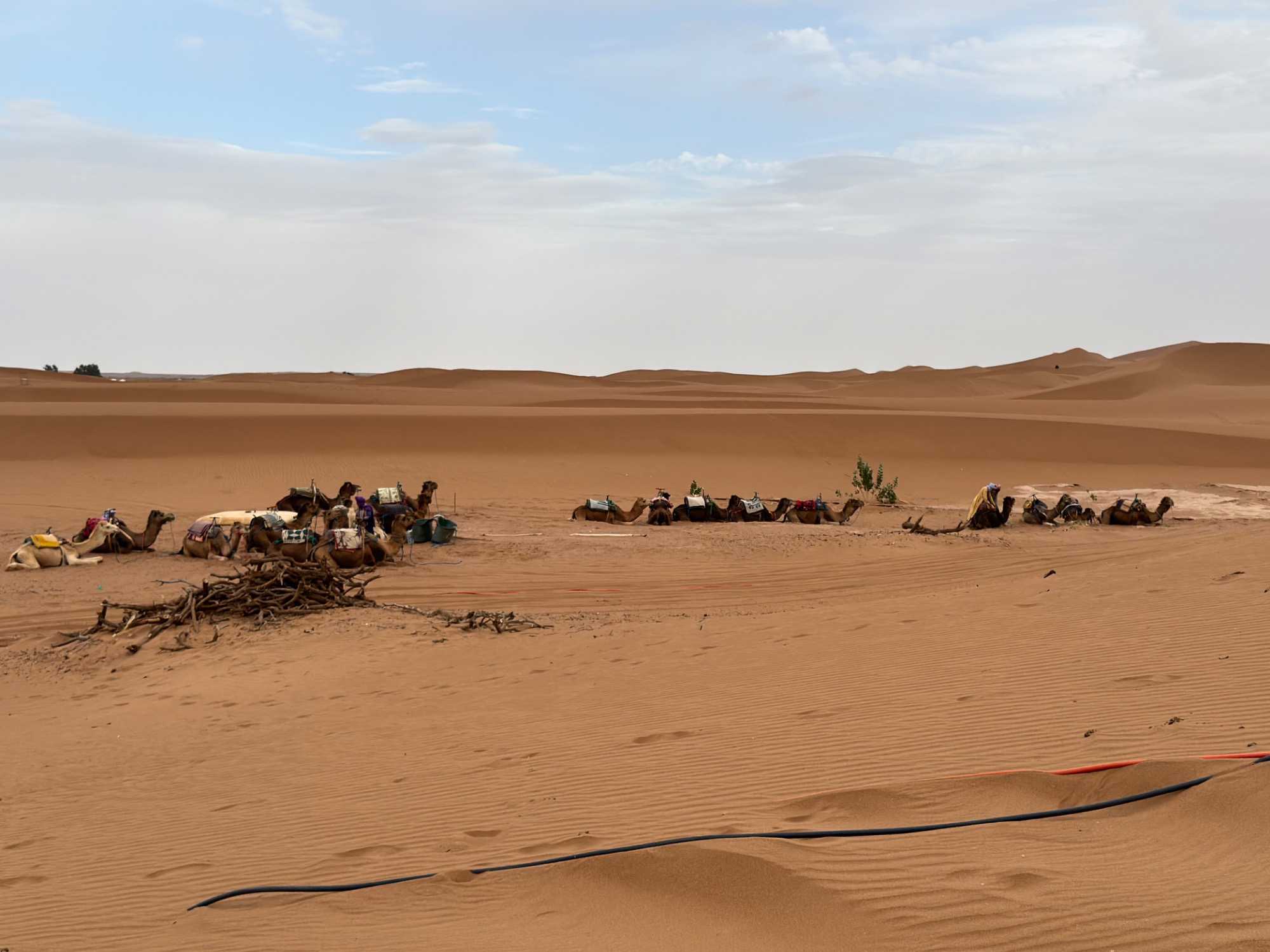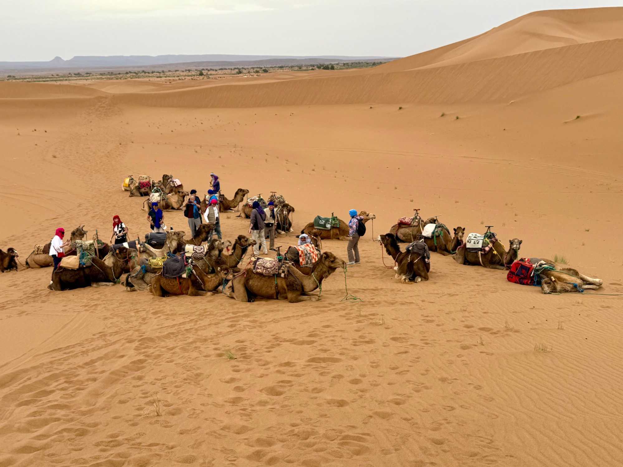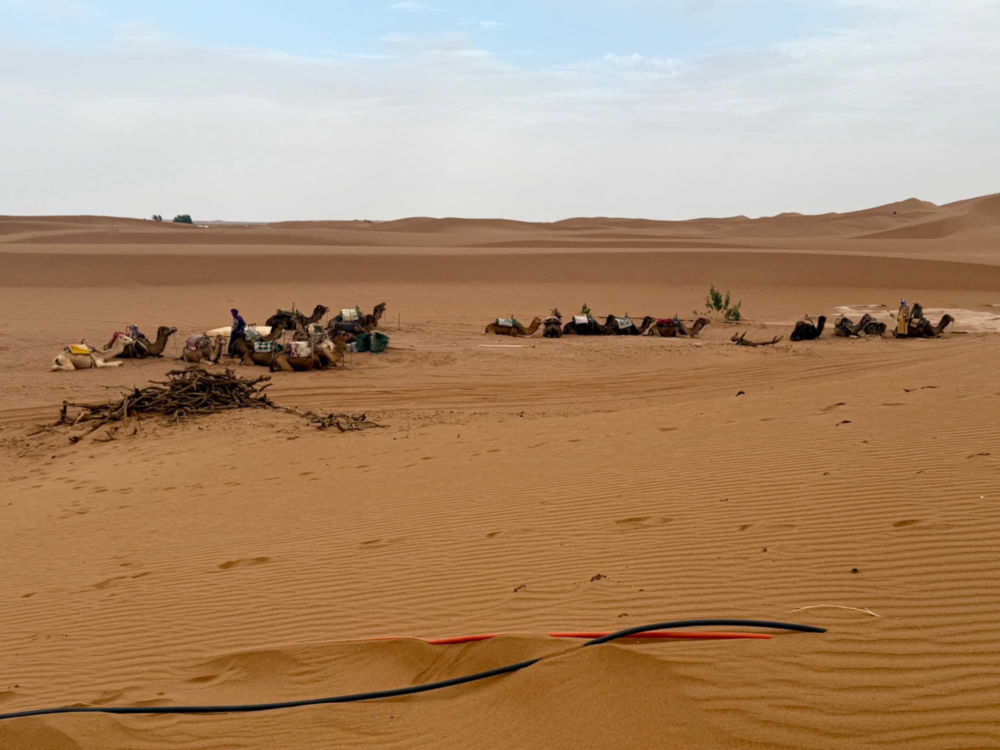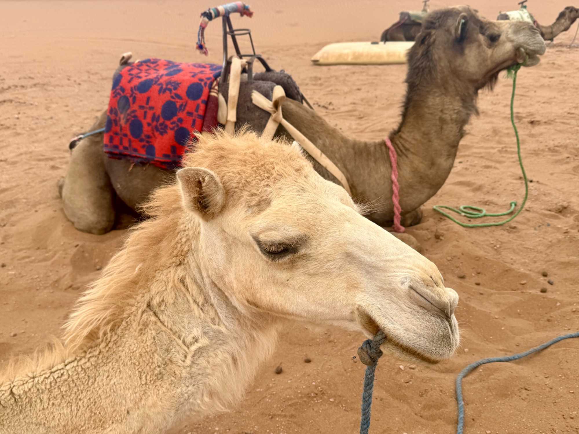 Il est intéressant de rappeler ici que nous sommes bien sur des dromadaires, et non des chameaux. Le dromadaire possède une seule bosse et est parfaitement adapté aux climats chauds et désertiques, comme ceux du Sahara. Le chameau, quant à lui, possède deux bosses et vit plutôt dans les régions d’Asie centrale, où les conditions sont beaucoup plus froides. Deux animaux cousins, mais adaptés à des environnements bien différents.