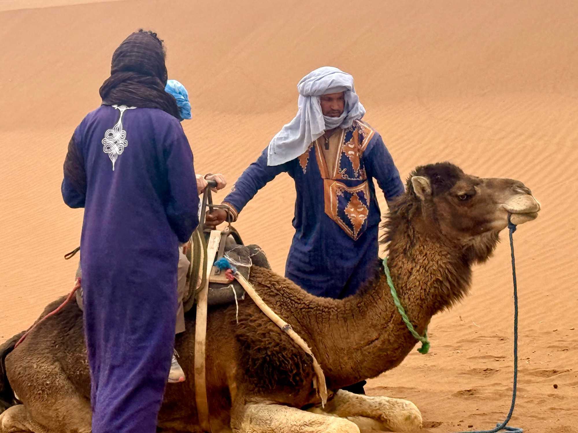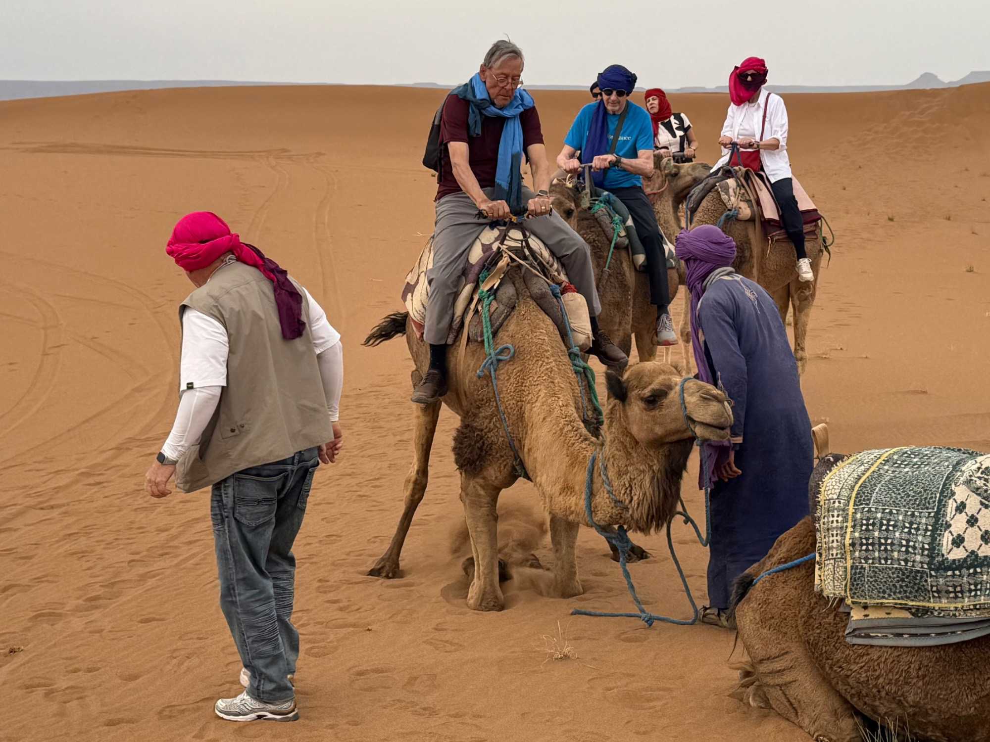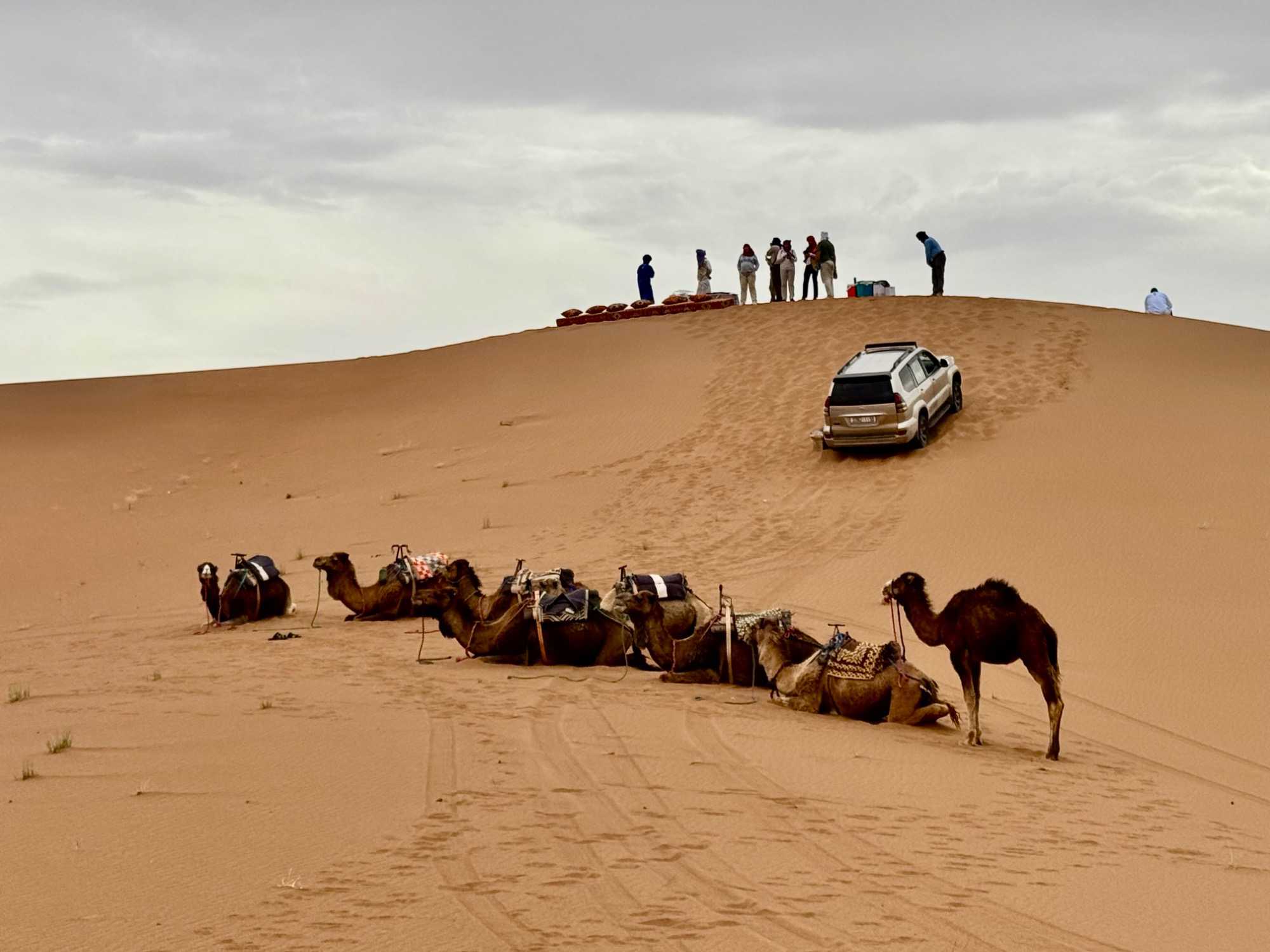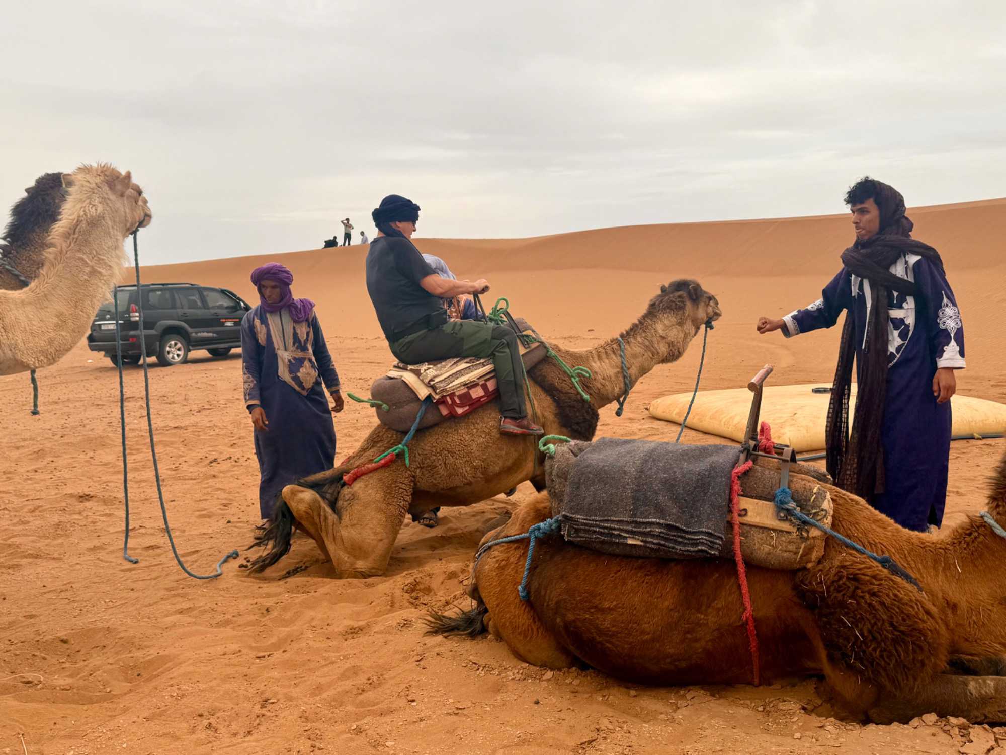 Il est intéressant de rappeler ici que nous sommes bien sur des dromadaires, et non des chameaux. Le dromadaire possède une seule bosse et est parfaitement adapté aux climats chauds et désertiques, comme ceux du Sahara. Le chameau, quant à lui, possède deux bosses et vit plutôt dans les régions d’Asie centrale, où les conditions sont beaucoup plus froides. Deux animaux cousins, mais adaptés à des environnements bien différents.