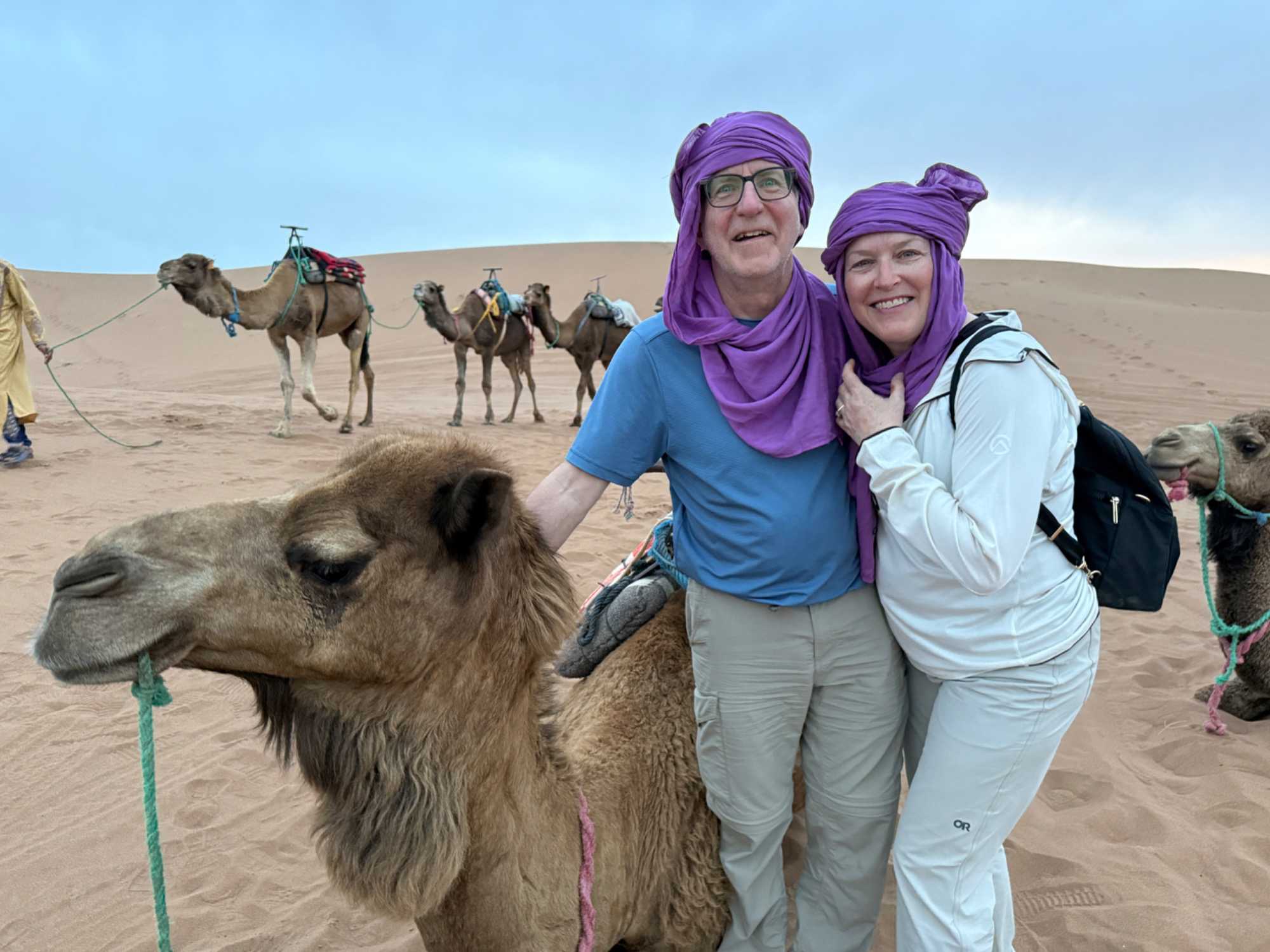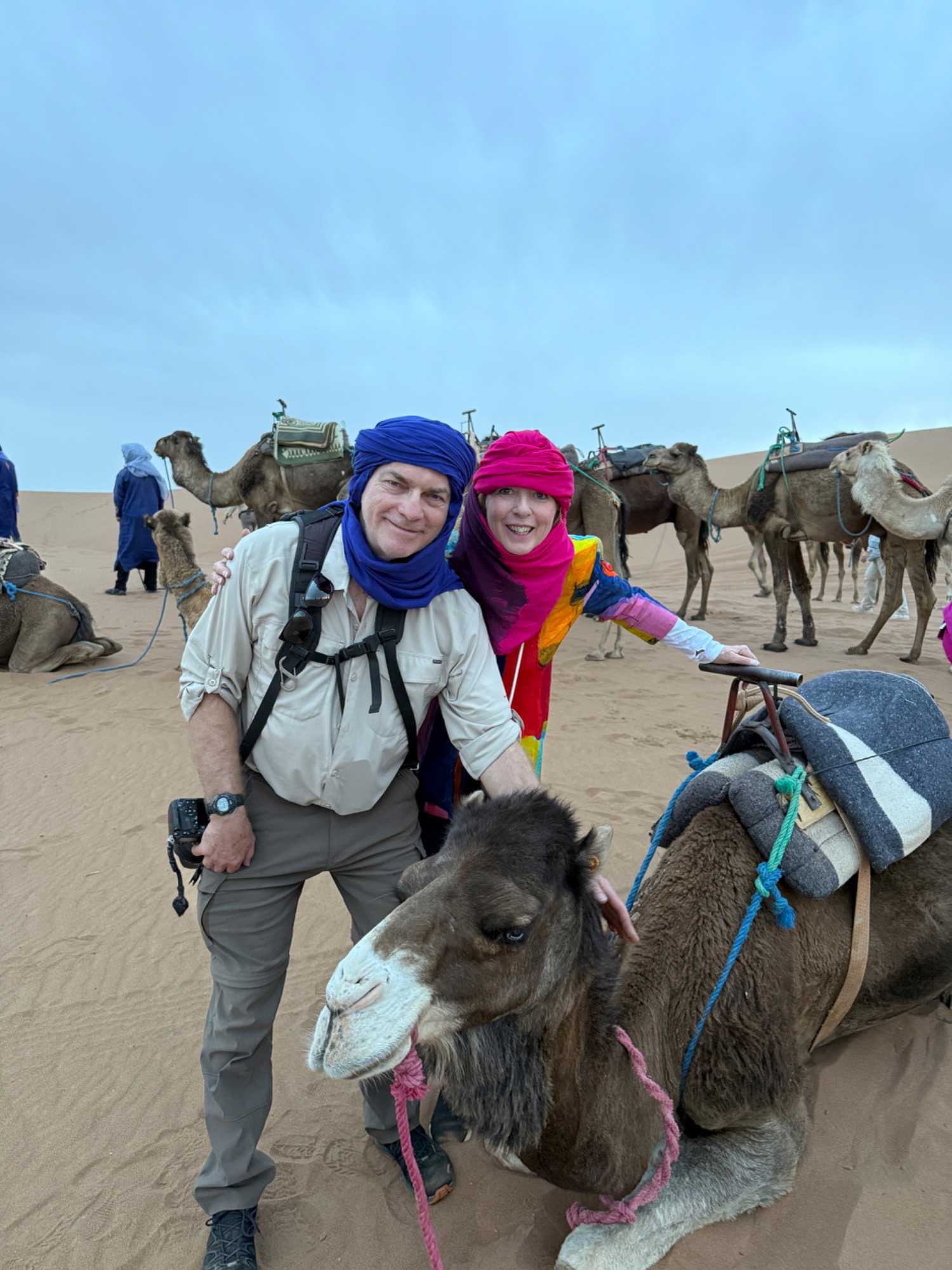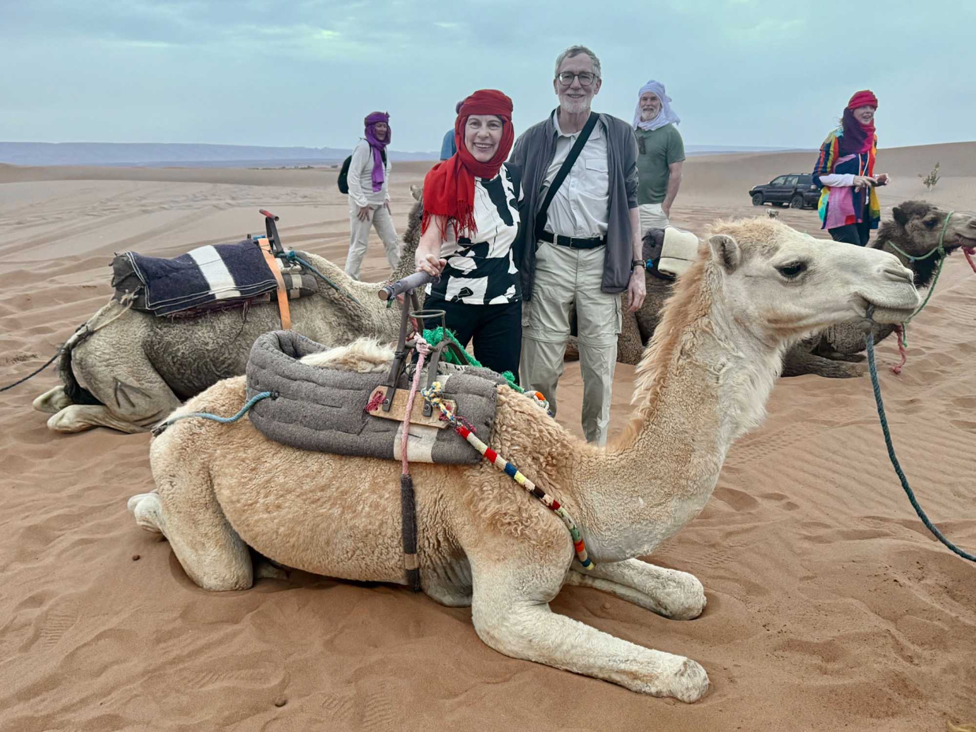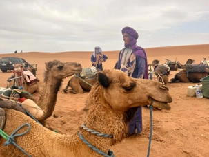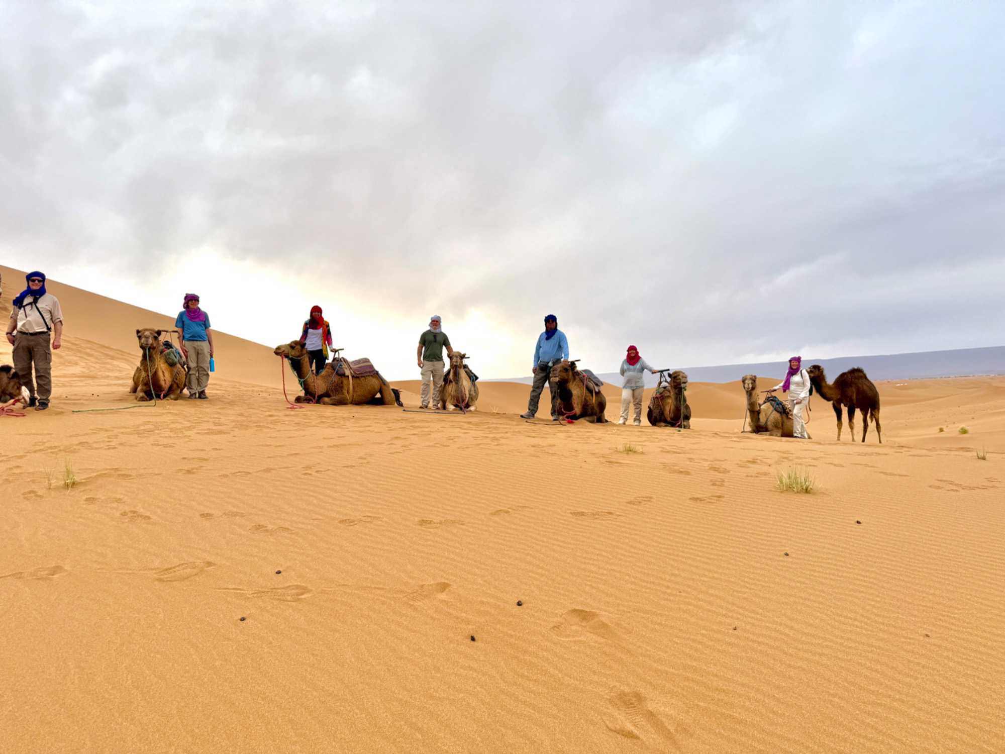 Il est intéressant de rappeler ici que nous sommes bien sur des dromadaires, et non des chameaux. Le dromadaire possède une seule bosse et est parfaitement adapté aux climats chauds et désertiques, comme ceux du Sahara. Le chameau, quant à lui, possède deux bosses et vit plutôt dans les régions d’Asie centrale, où les conditions sont beaucoup plus froides. Deux animaux cousins, mais adaptés à des environnements bien différents.