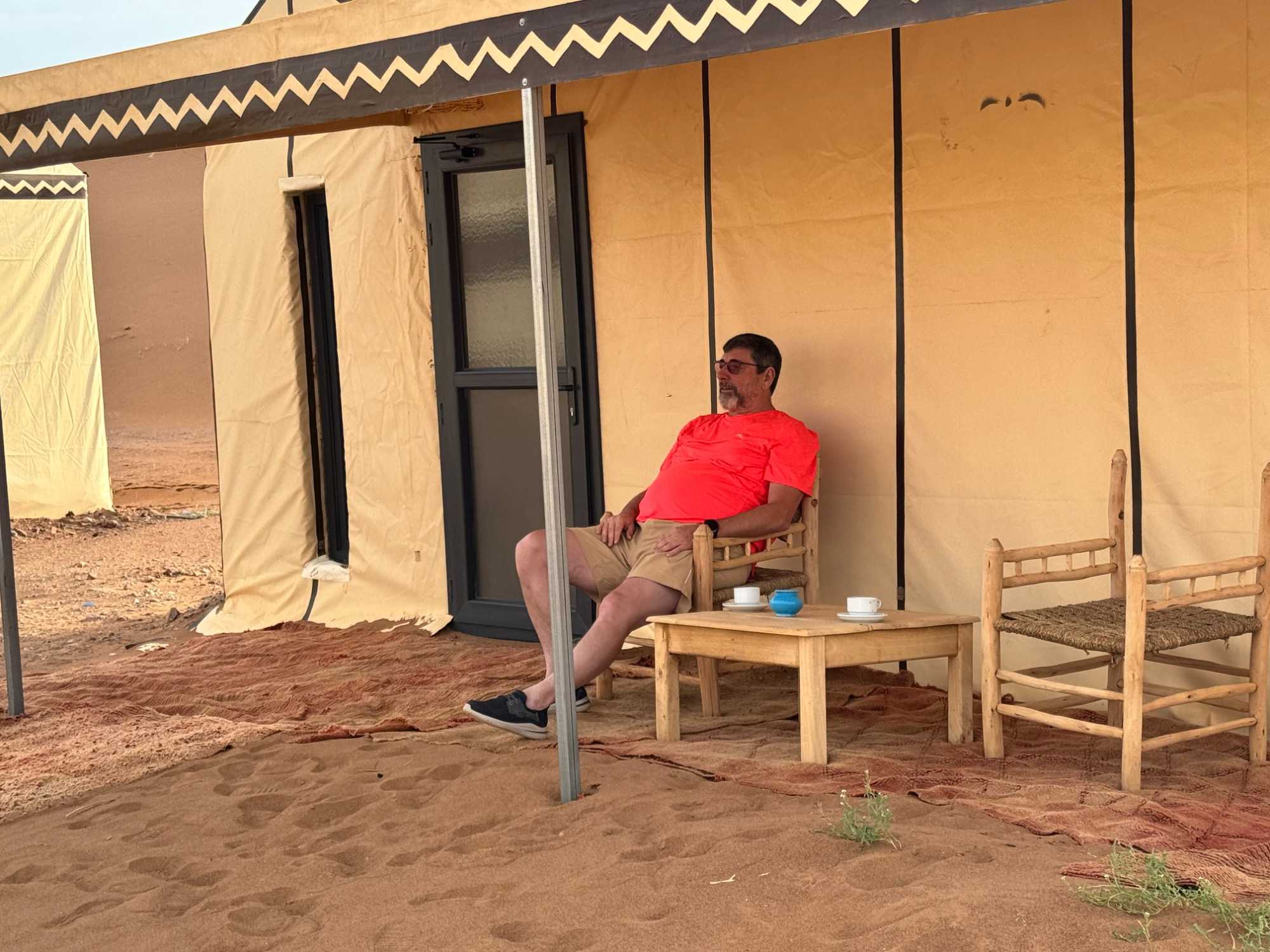 Ici, au cœur du désert, nous nous offrons le luxe rare de ralentir. Pas d’empressement, pas d’horaire pressant. Simplement le plaisir d’habiter pleinement cette journée qui nous appartient, dans cet environnement grandiose où tout invite au calme et à la contemplation.