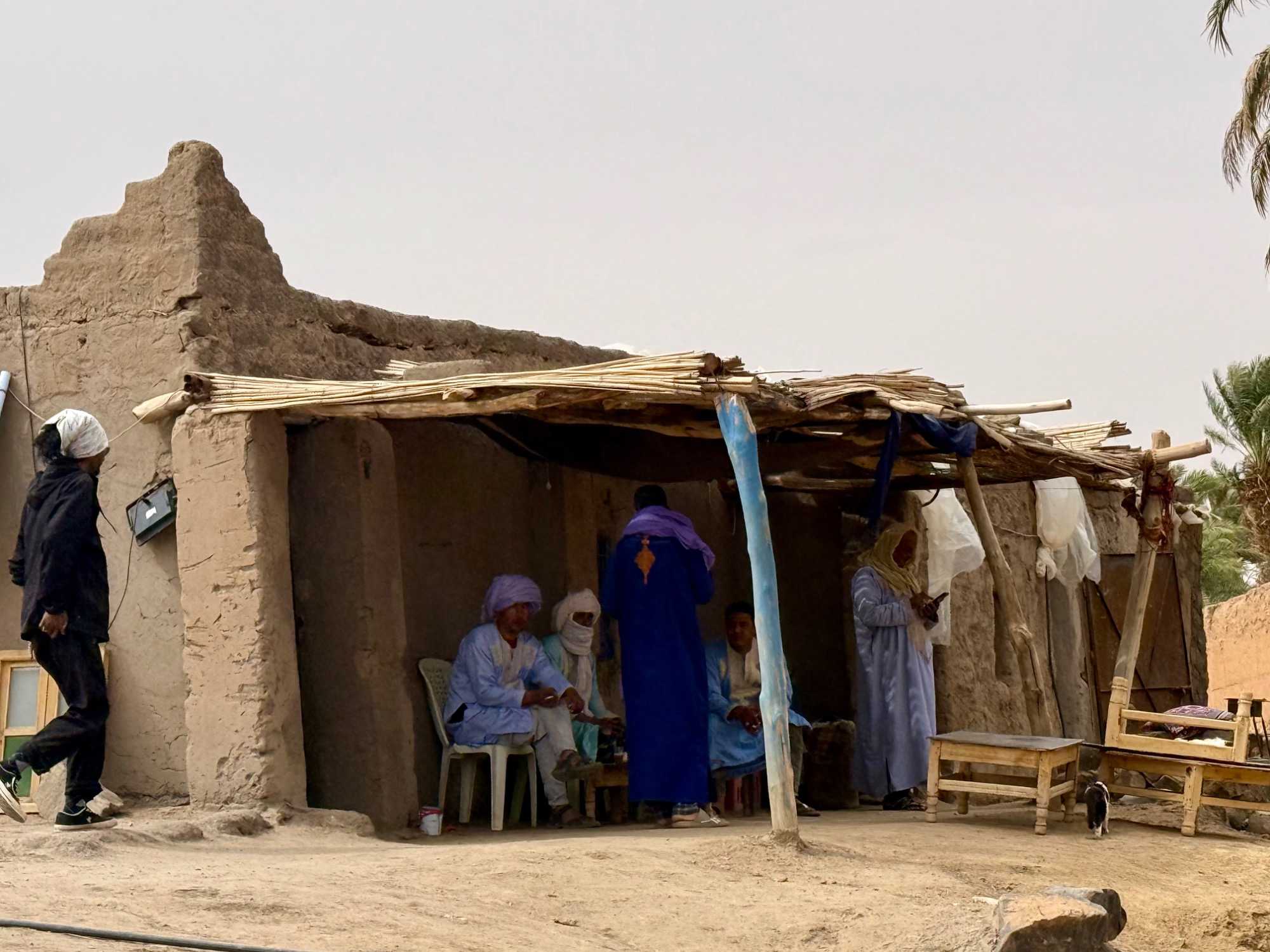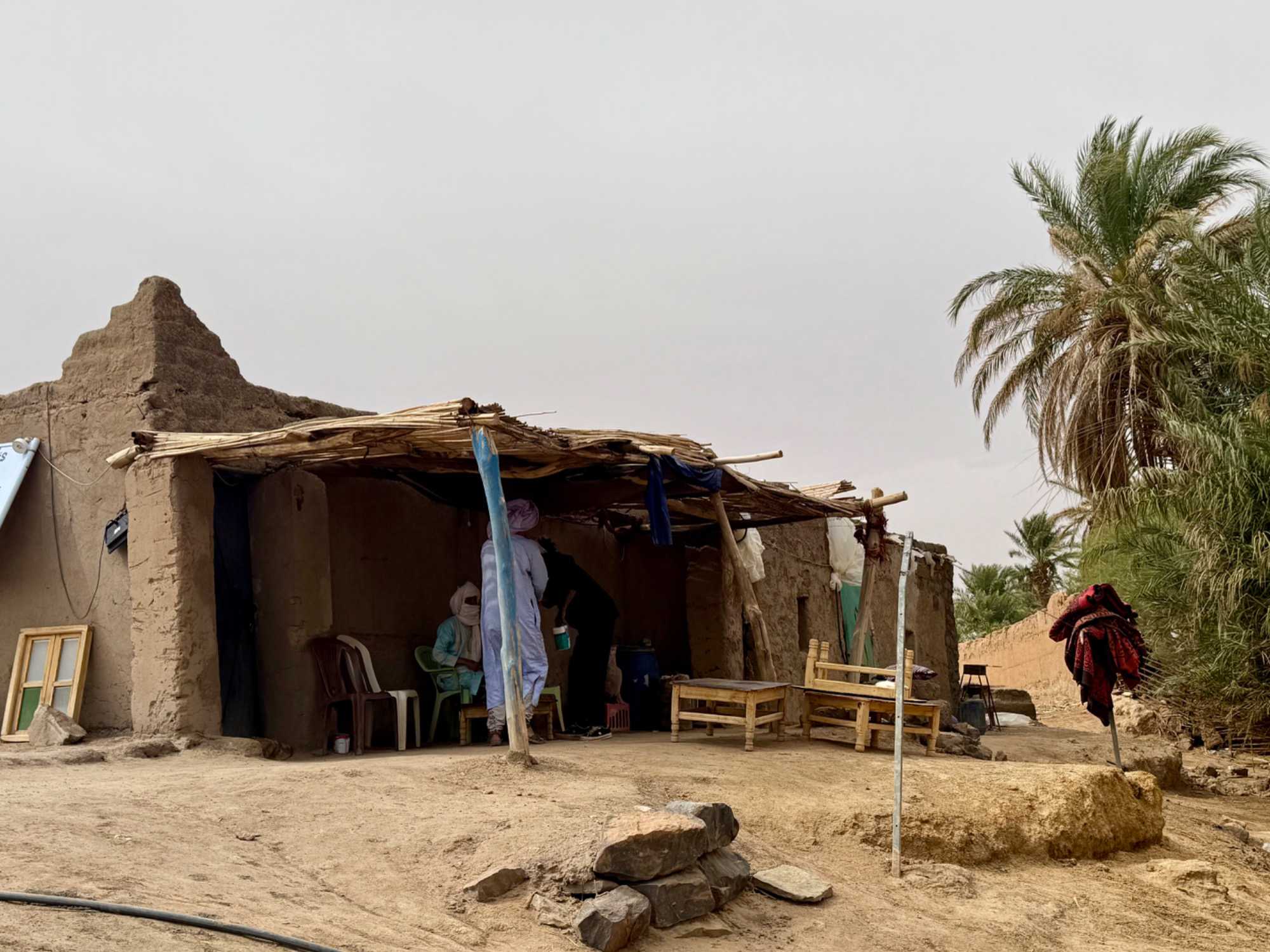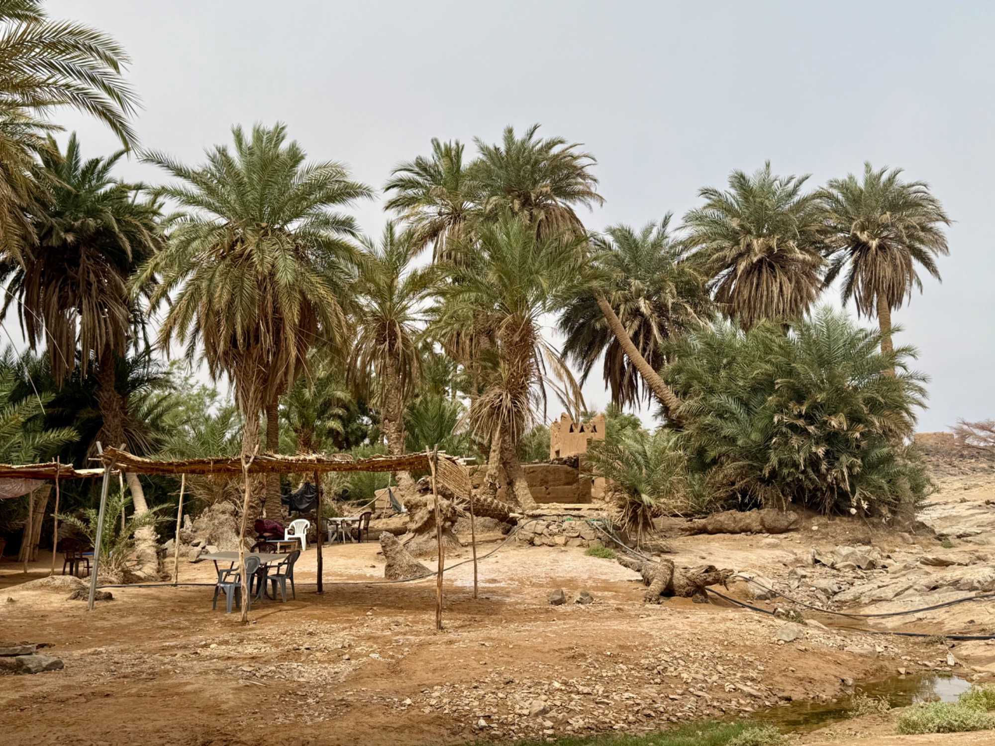 Un lieu surprenant, presque improbable. Des palmiers, quelques installations berbères, des chèvres, des poules… et cette vie qui s’organise, simplement, dans cet environnement que l’on pourrait croire inhospitalier.