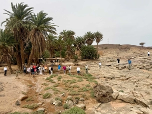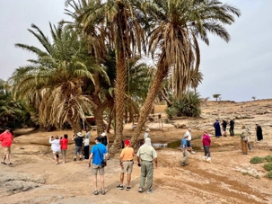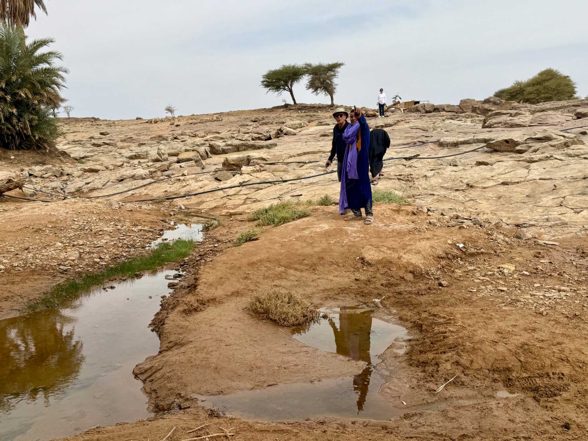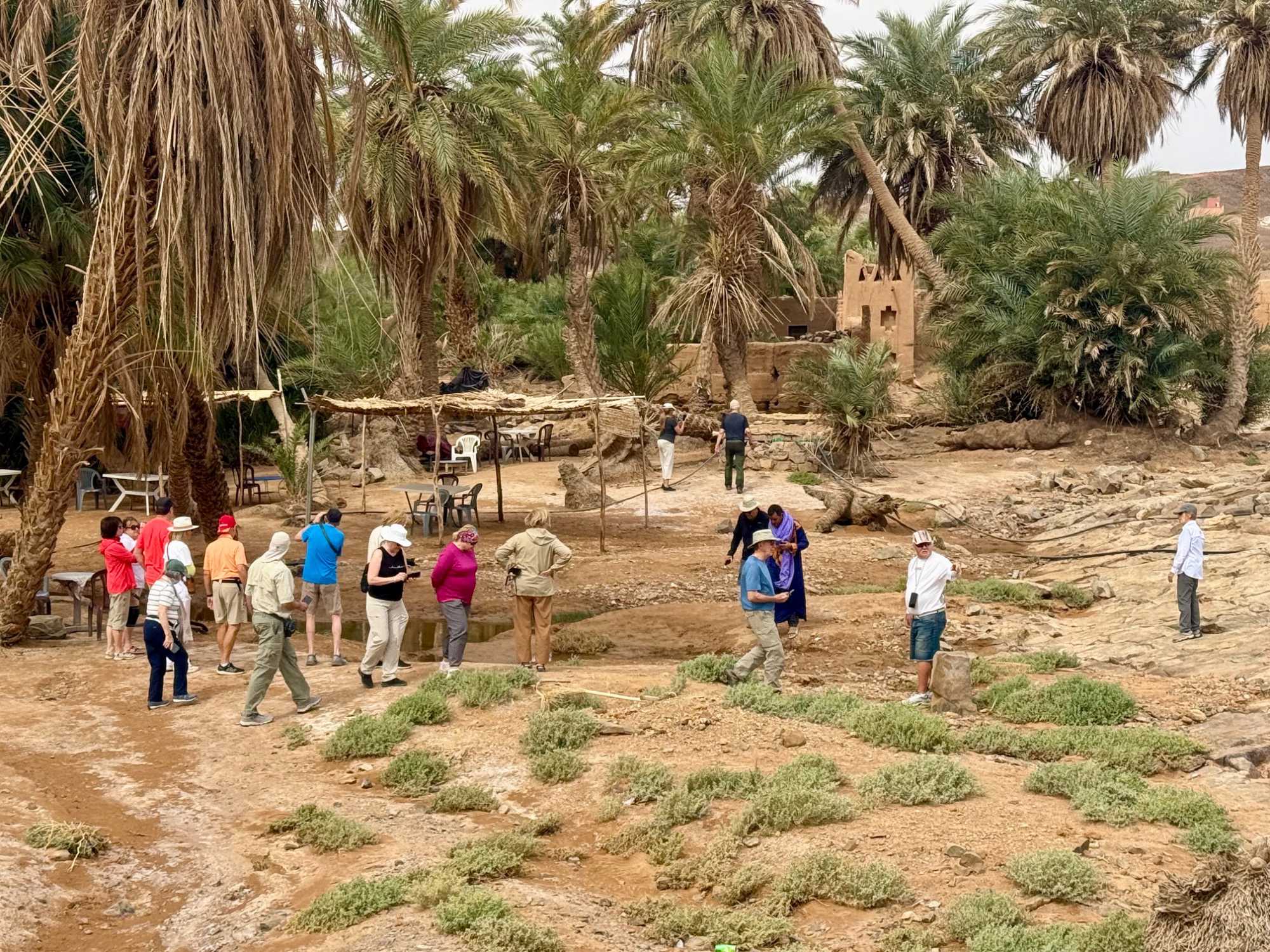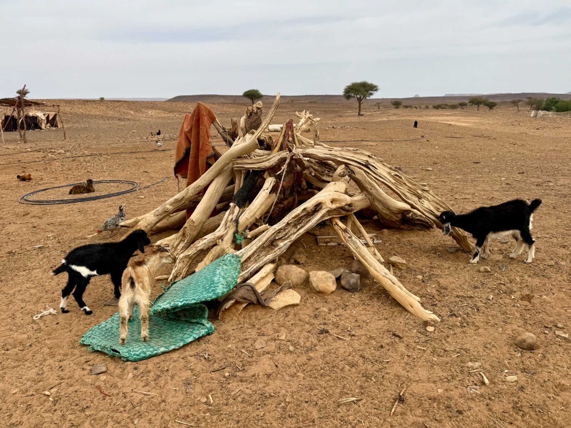Un lieu surprenant, presque improbable. Des palmiers, quelques installations berbères, des chèvres, des poules… et cette vie qui s’organise, simplement, dans cet environnement que l’on pourrait croire inhospitalier.