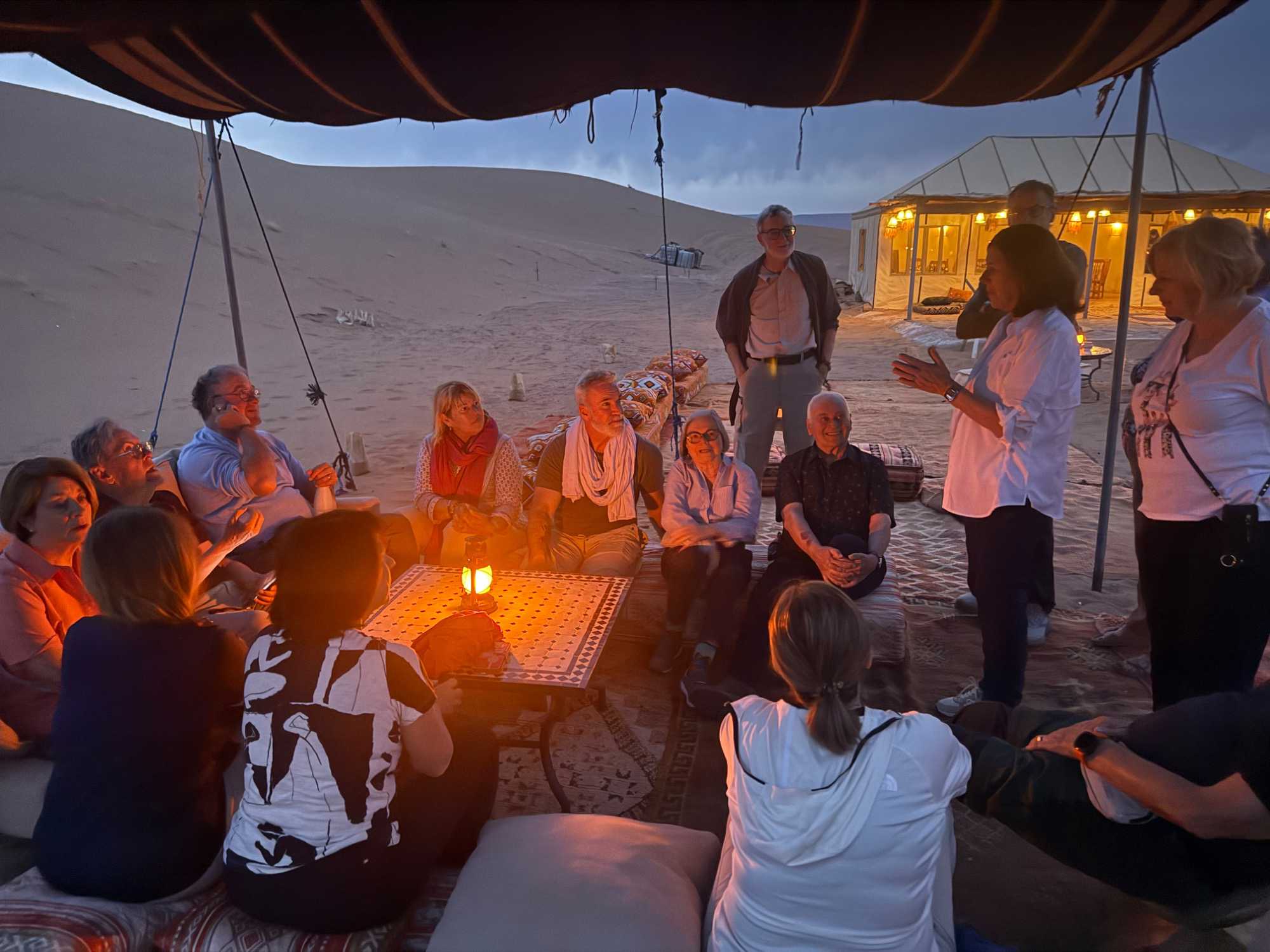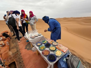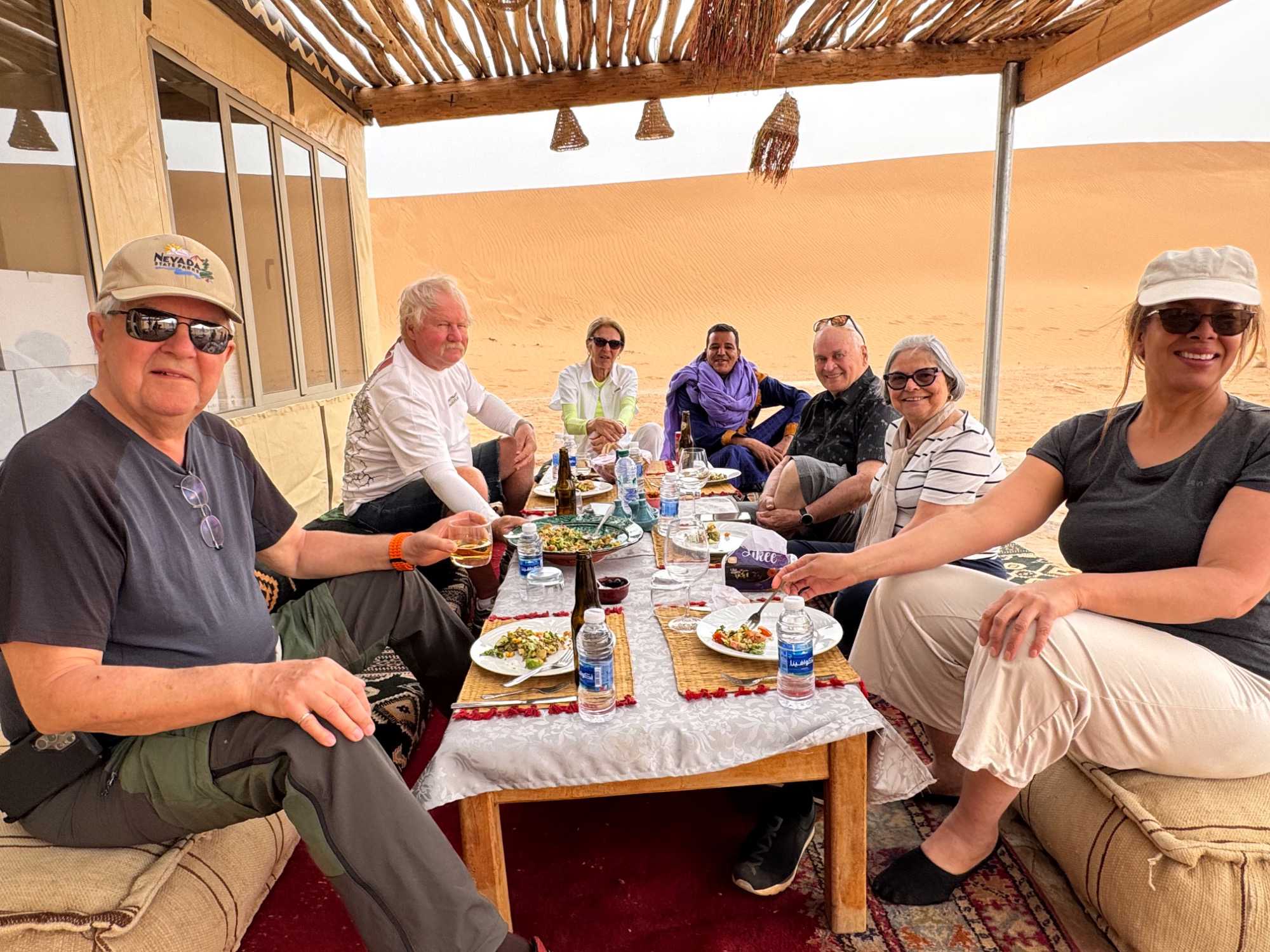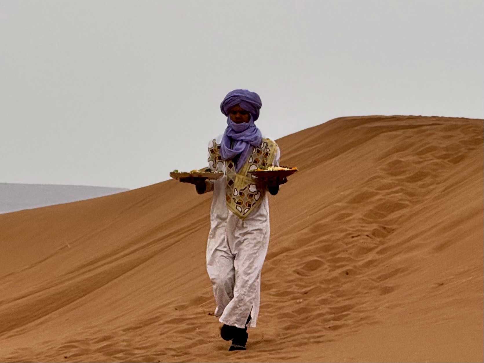 Nous reprenons ensuite la route vers le campement pour le dîner. Encore une fois, la générosité marocaine se manifeste dans chaque plat, dans chaque attention. Et surtout, dans cette façon d’être, toujours tournée vers l’autre.