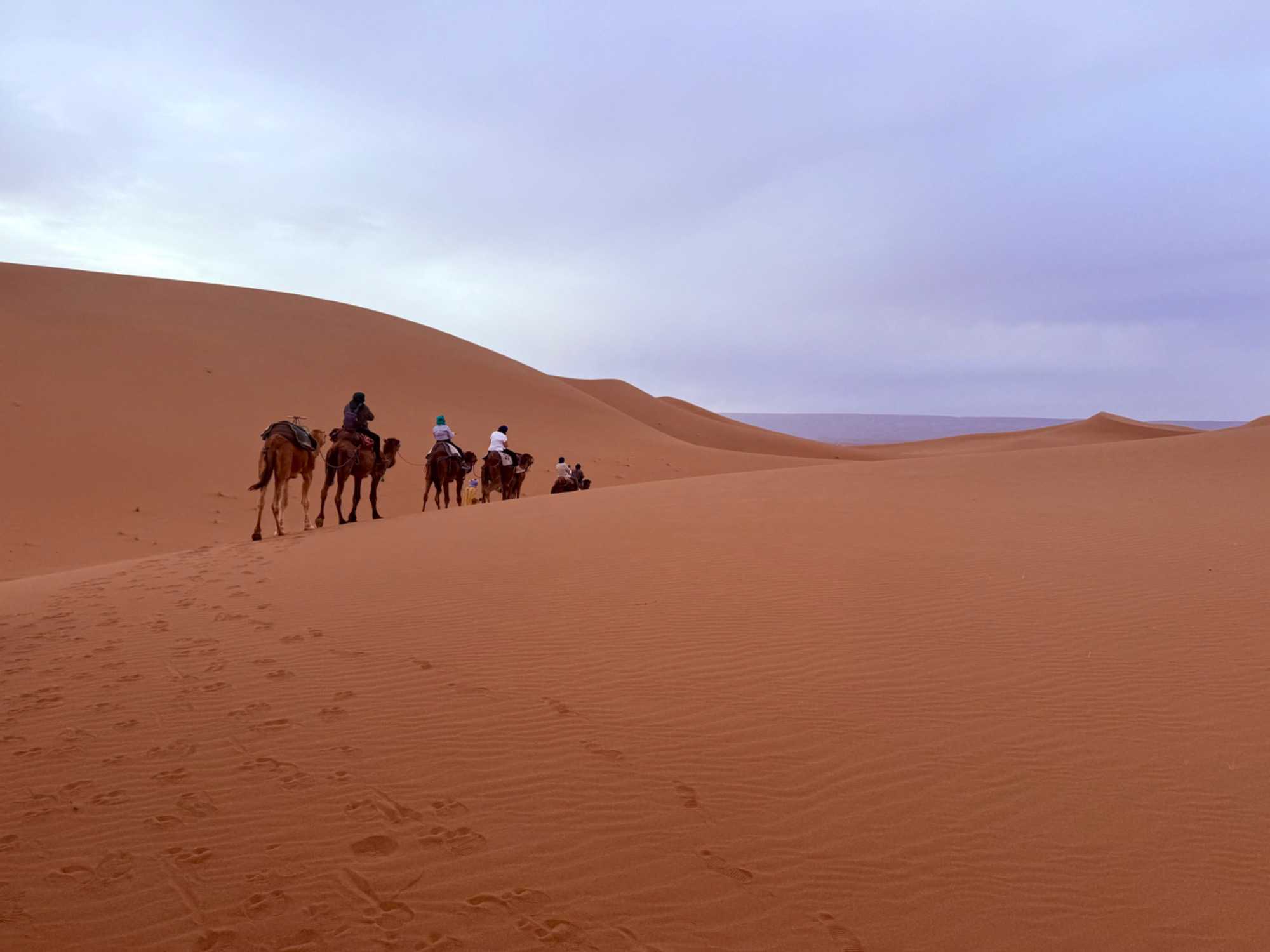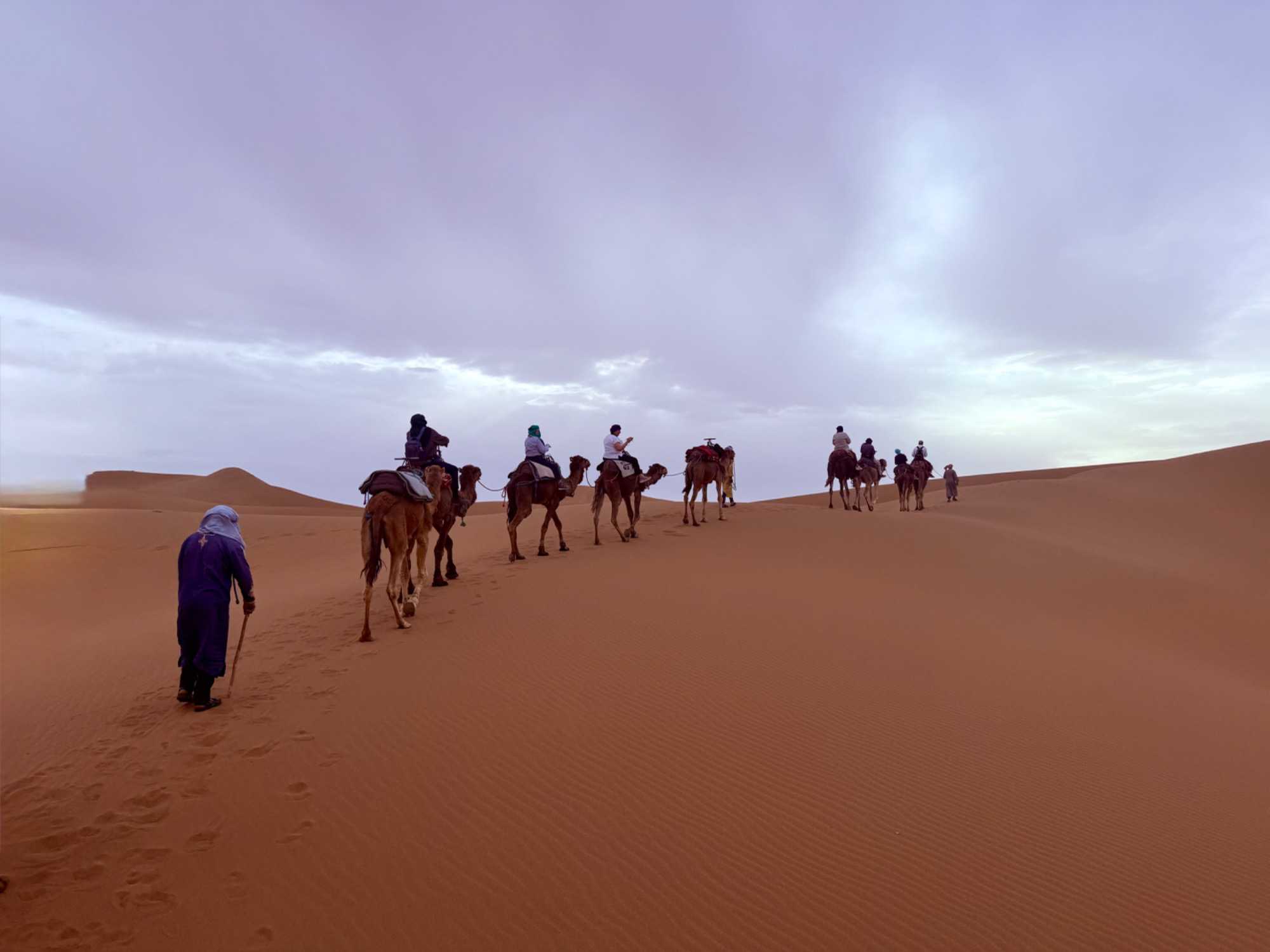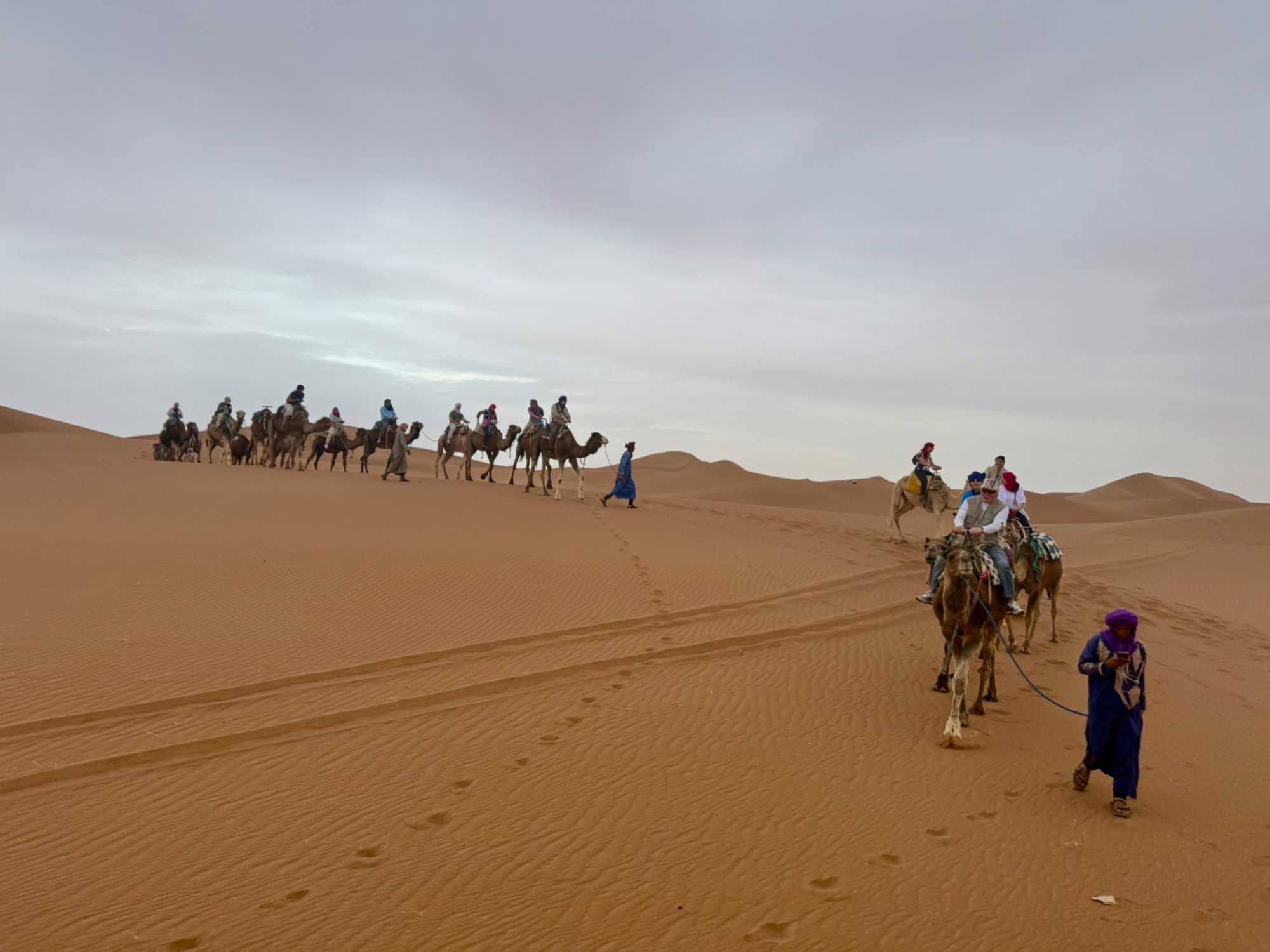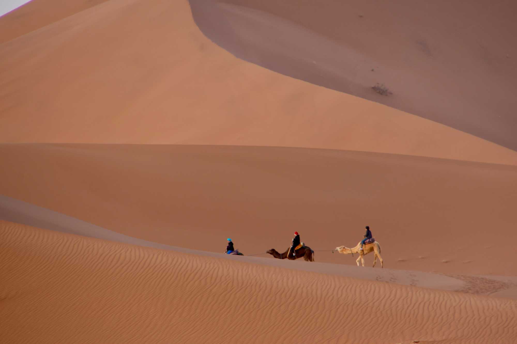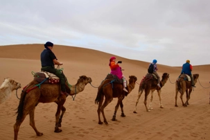 Le retour se fait tranquillement, à dos de dromadaire ou à pied pour ceux qui souhaitent prolonger le contact avec le sable.